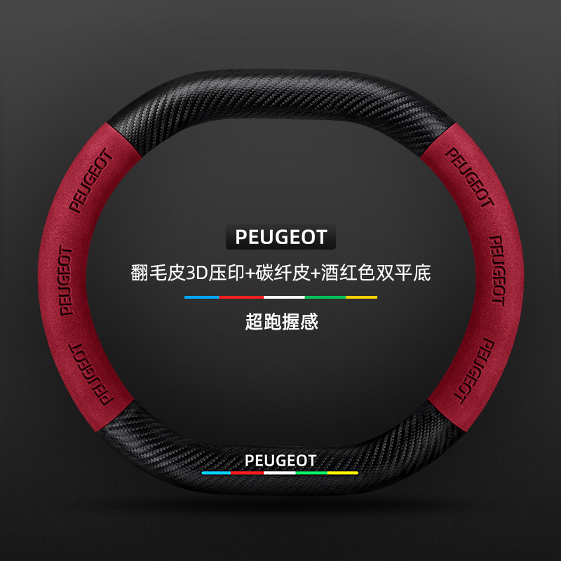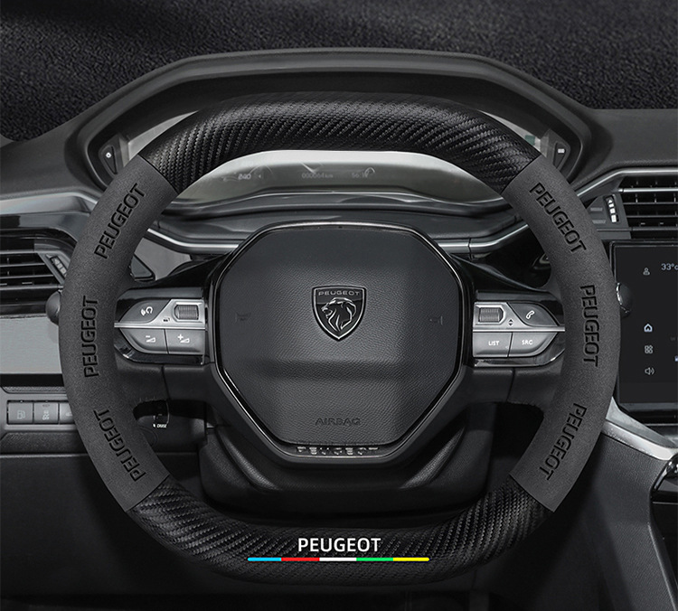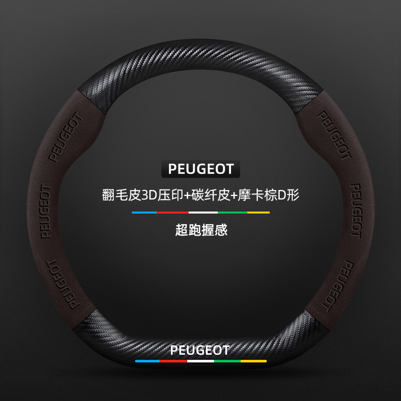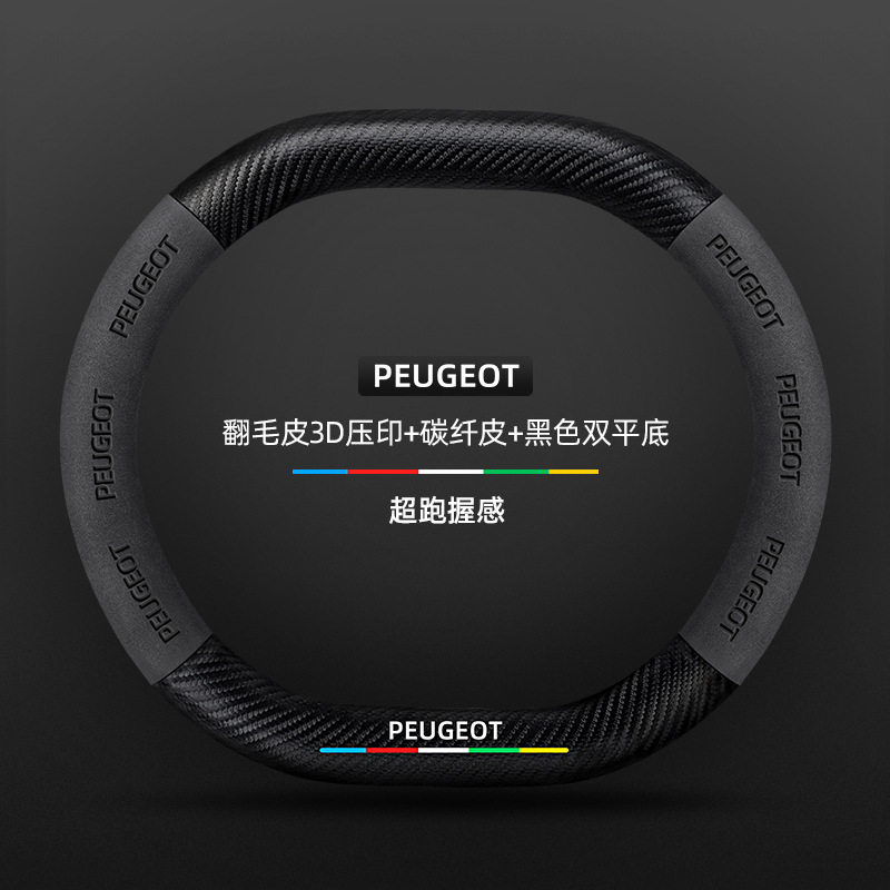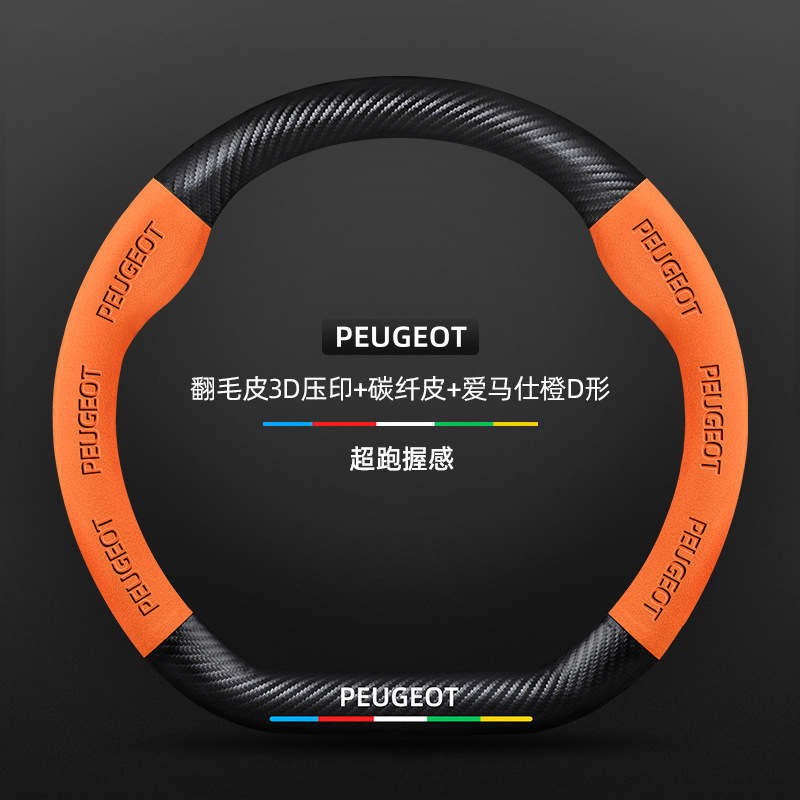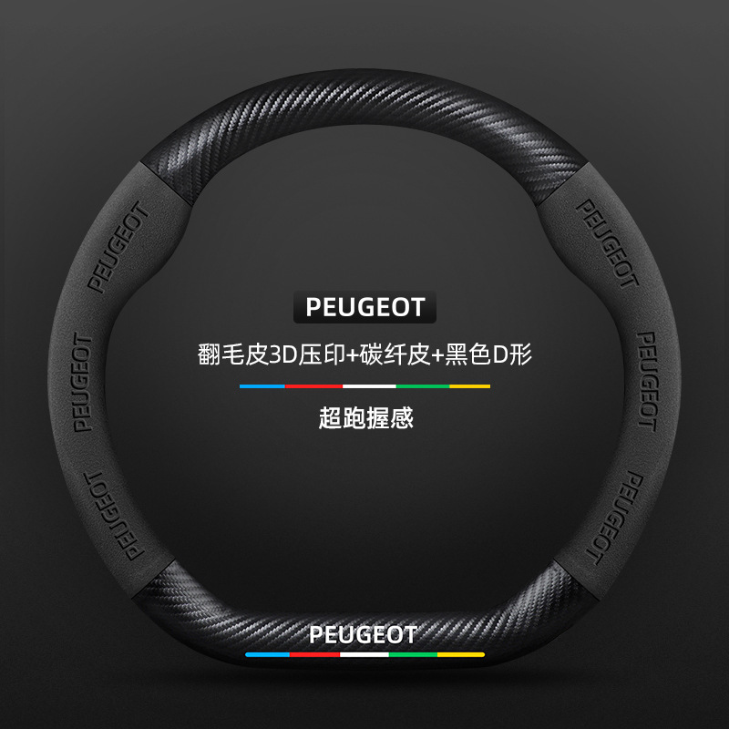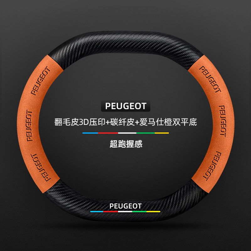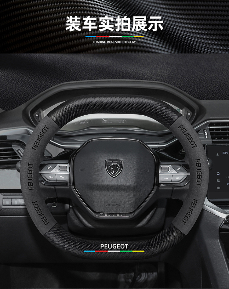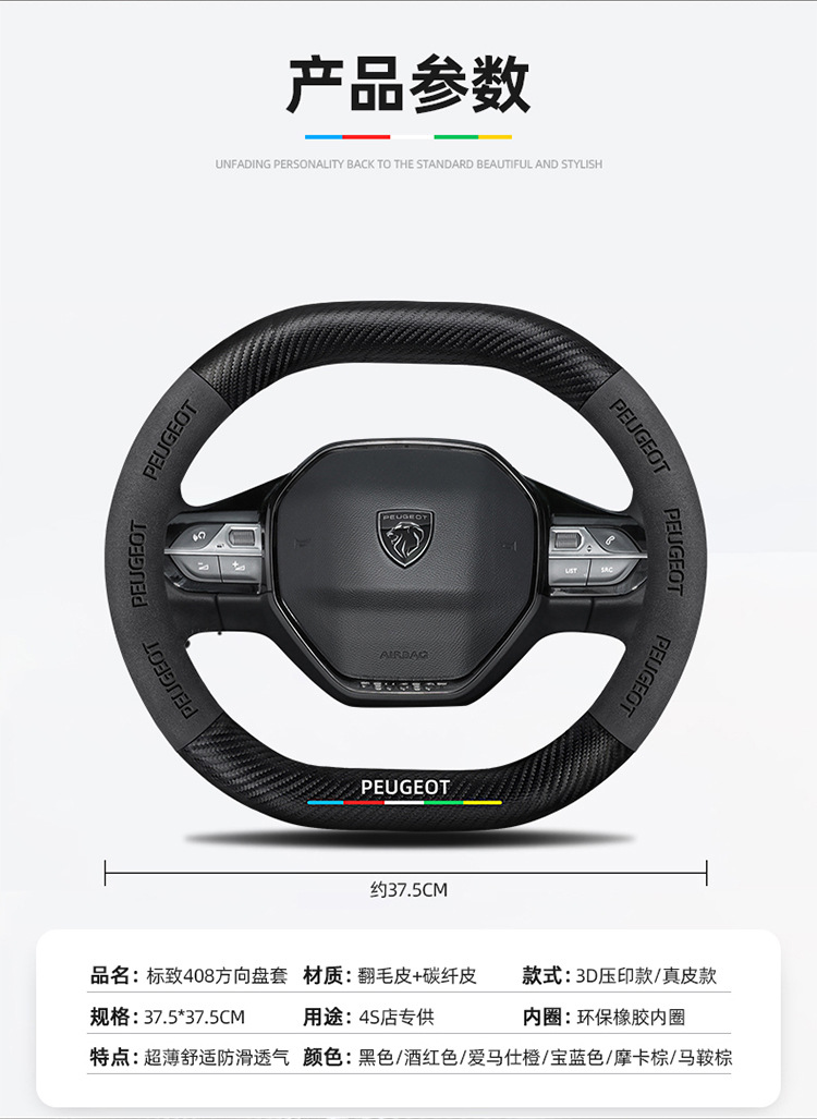 적용 가능한 408 스티어링 휠 커버 13-23 탄소 섬유 스웨이드 사계절 보편적 인 초박형 가죽 자동차 핸들 커버스토어 가기