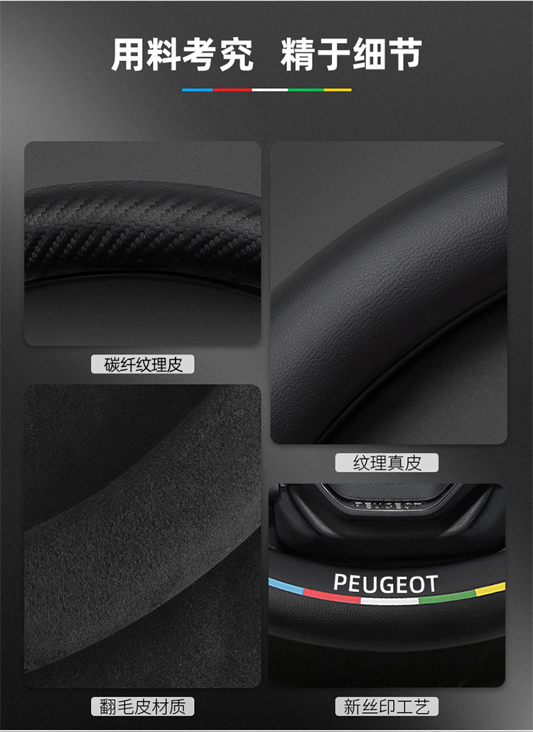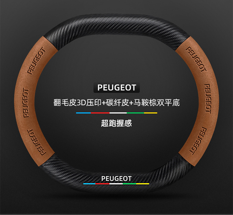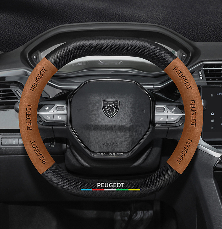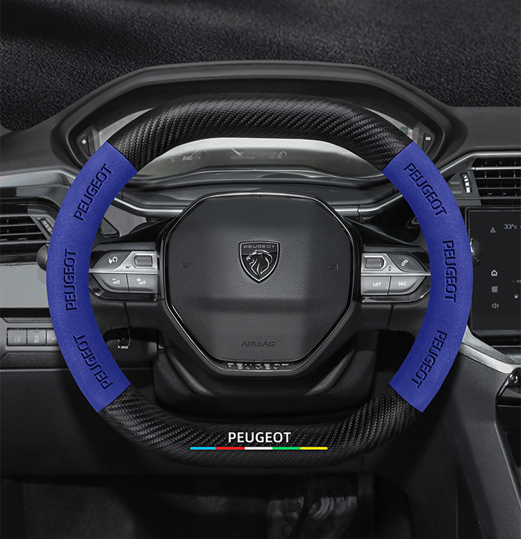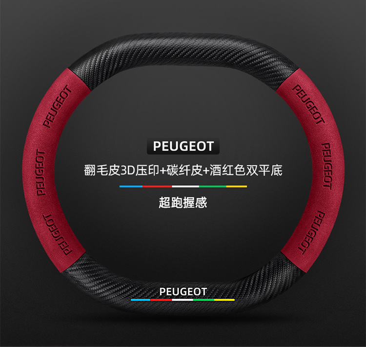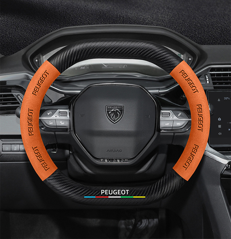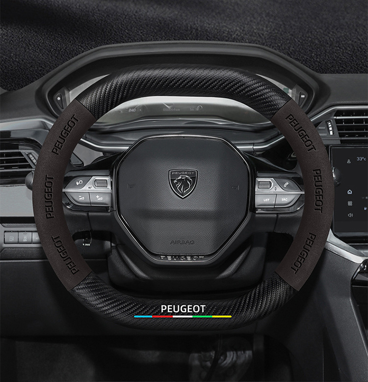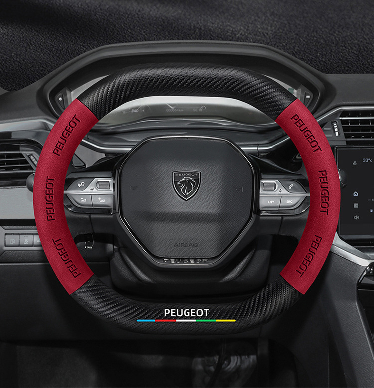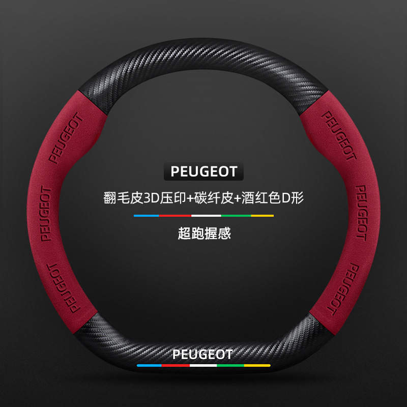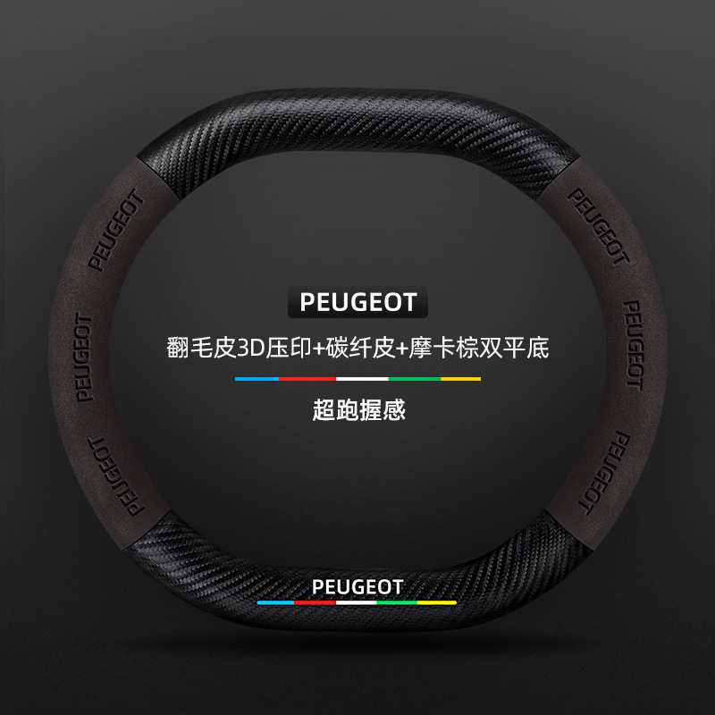 적용 가능한 408 스티어링 휠 커버 13-23 탄소 섬유 스웨이드 사계절 보편적 인 초박형 가죽 자동차 핸들 커버스토어 가기