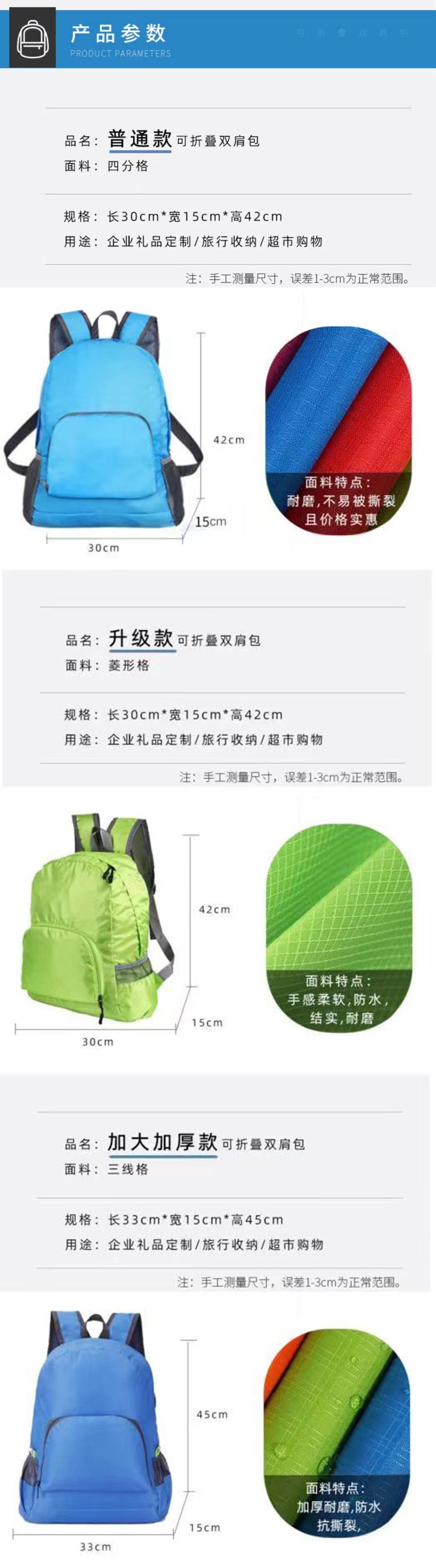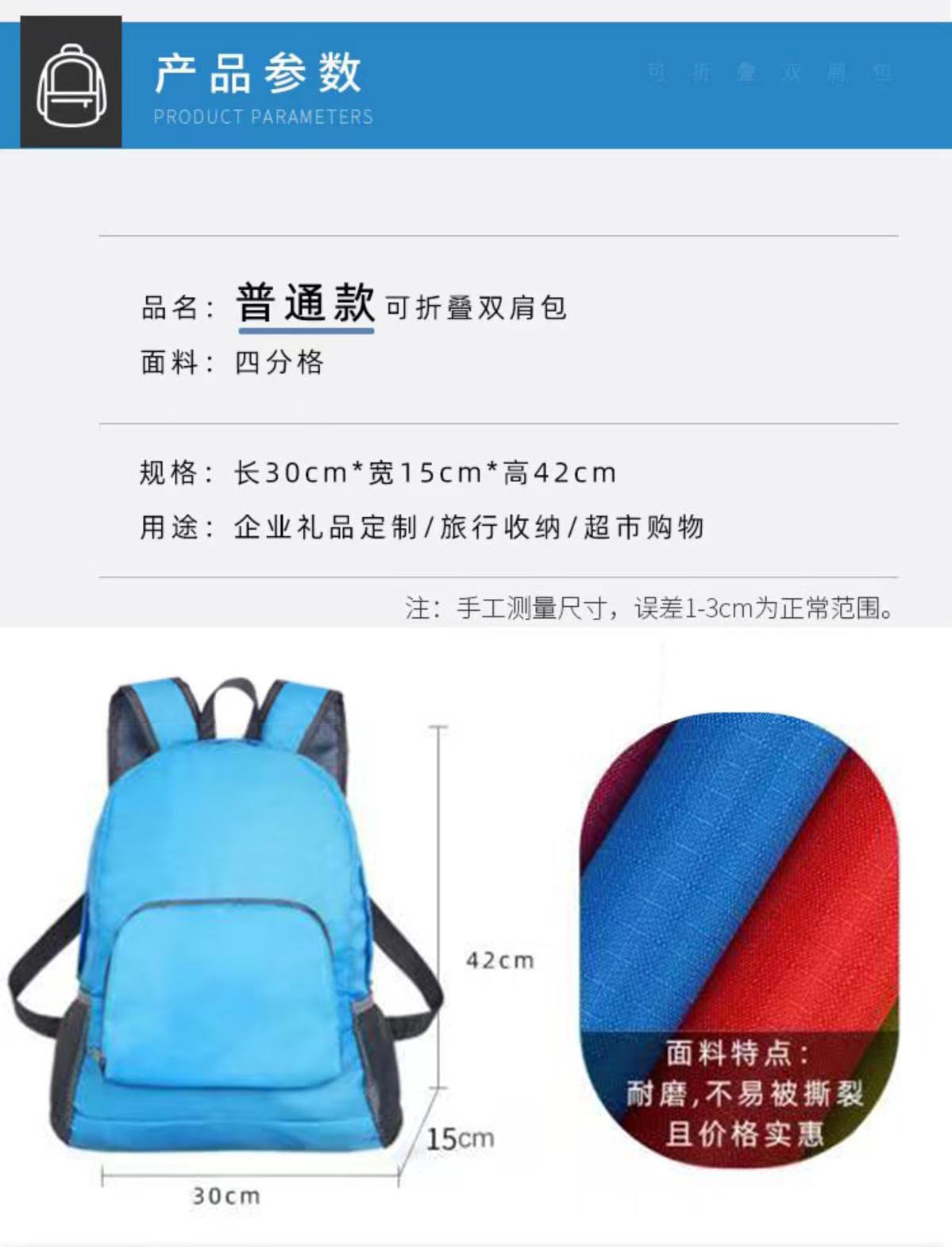 공장 직접 공급 배낭 접이식 인쇄 로고 광고 야외 여행 그룹 배낭 훈련 클래스 대용량스토어 가기