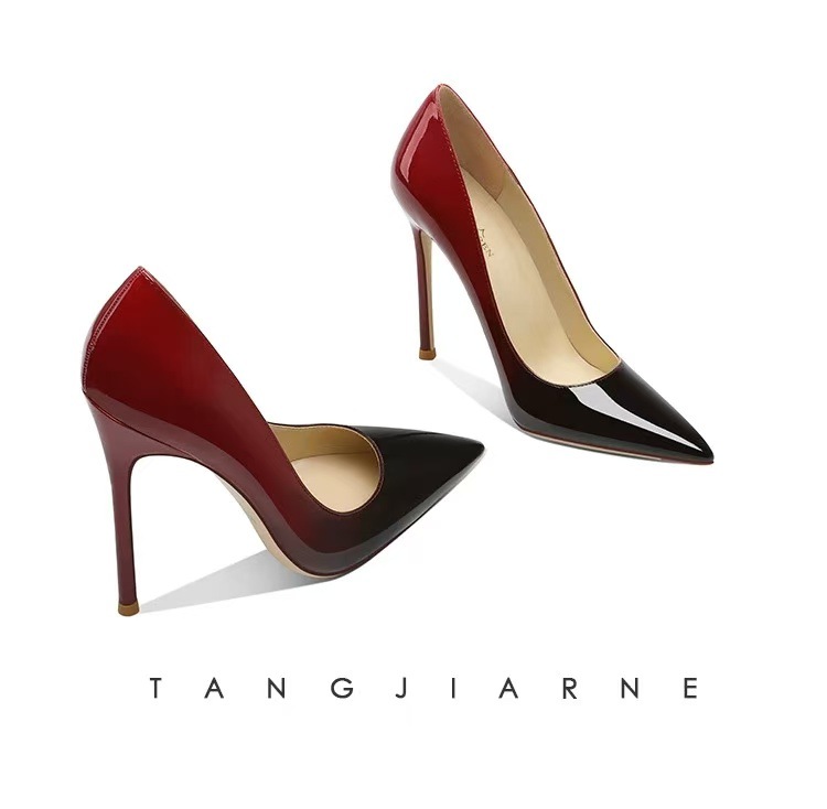 레드 바닥 하이힐 여성용 스틸레토 힐 섹시한 블랙 특허 가죽 사이버 인기 포인팅 우아한 사교계 대형 스몰 사이즈 전문 싱글 레이어 신발