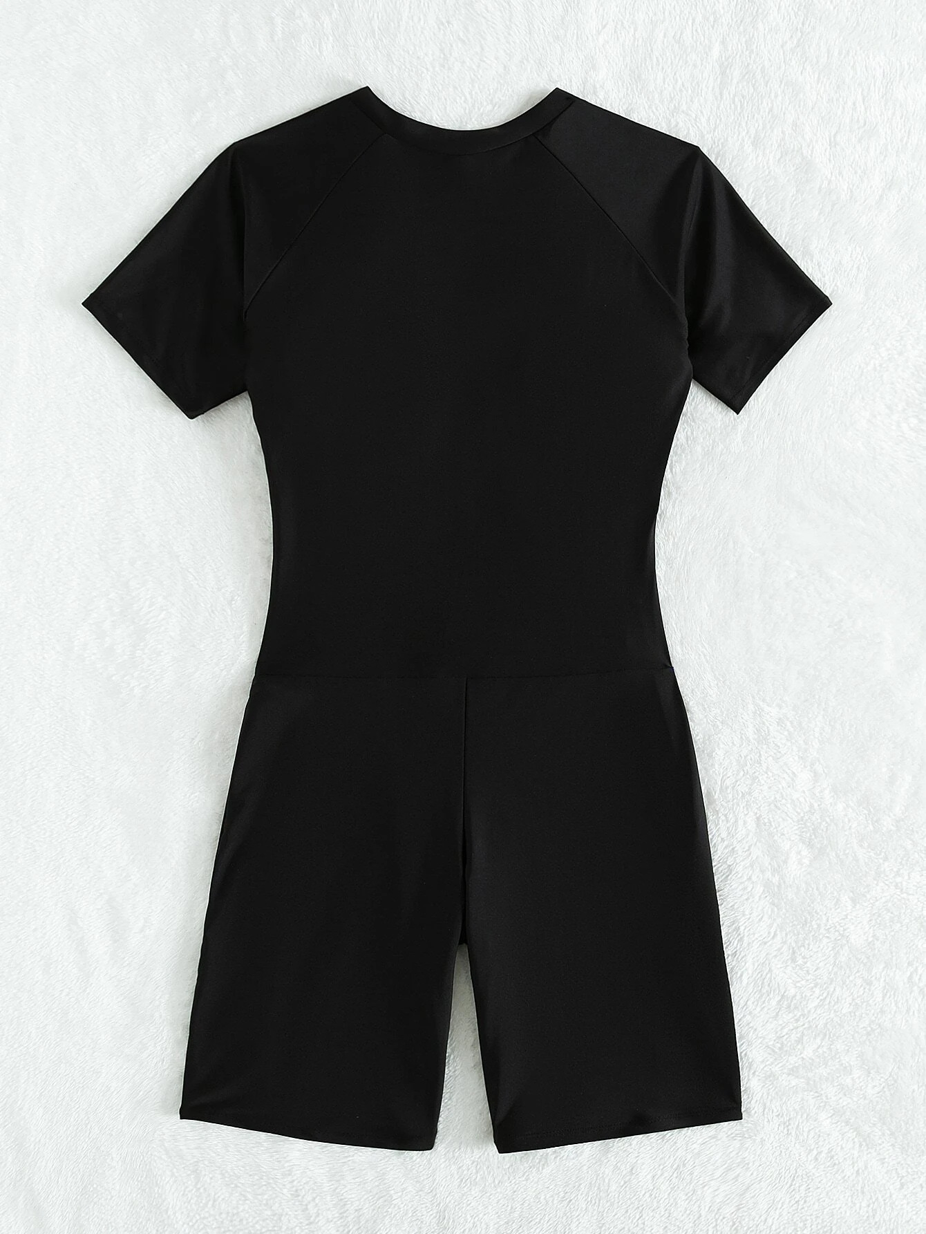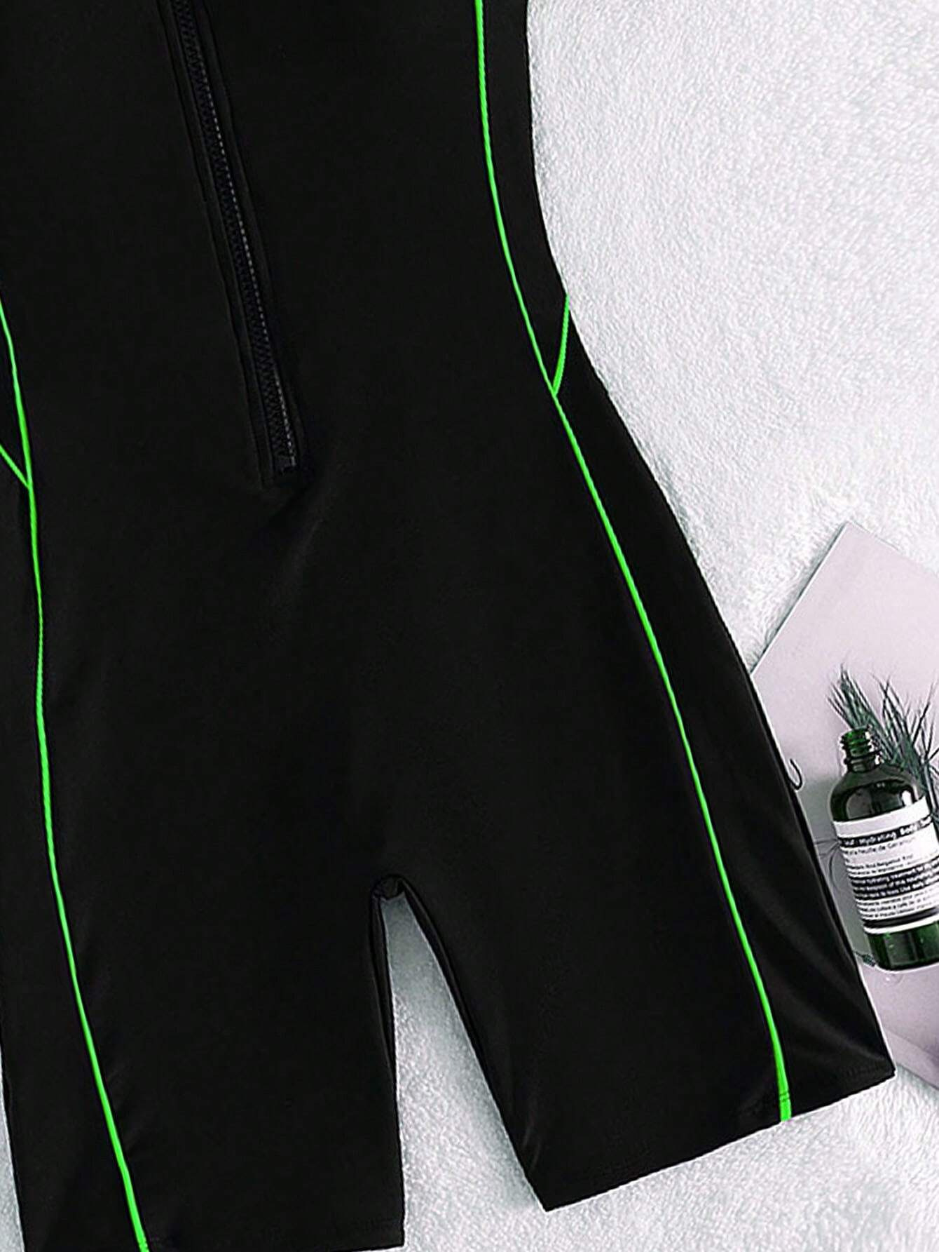 2024 크로스 보더 원피스 수영복 단색 스티칭 다이빙 세트 플랫 앵글 반팔 지퍼 아마존 유럽 및 미국 대외 무역 수영복스토어 가기