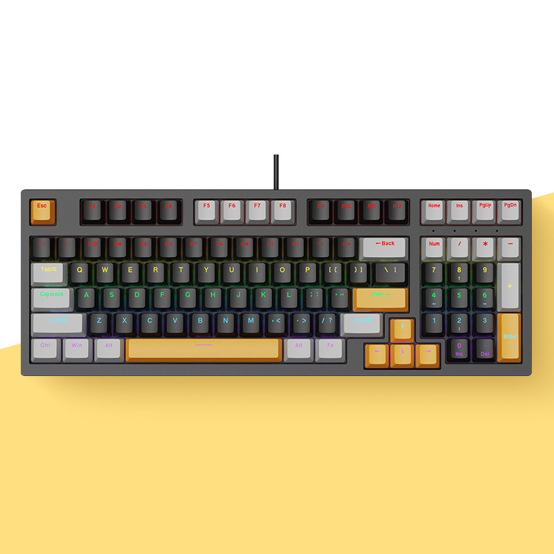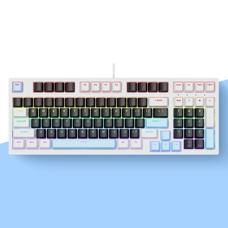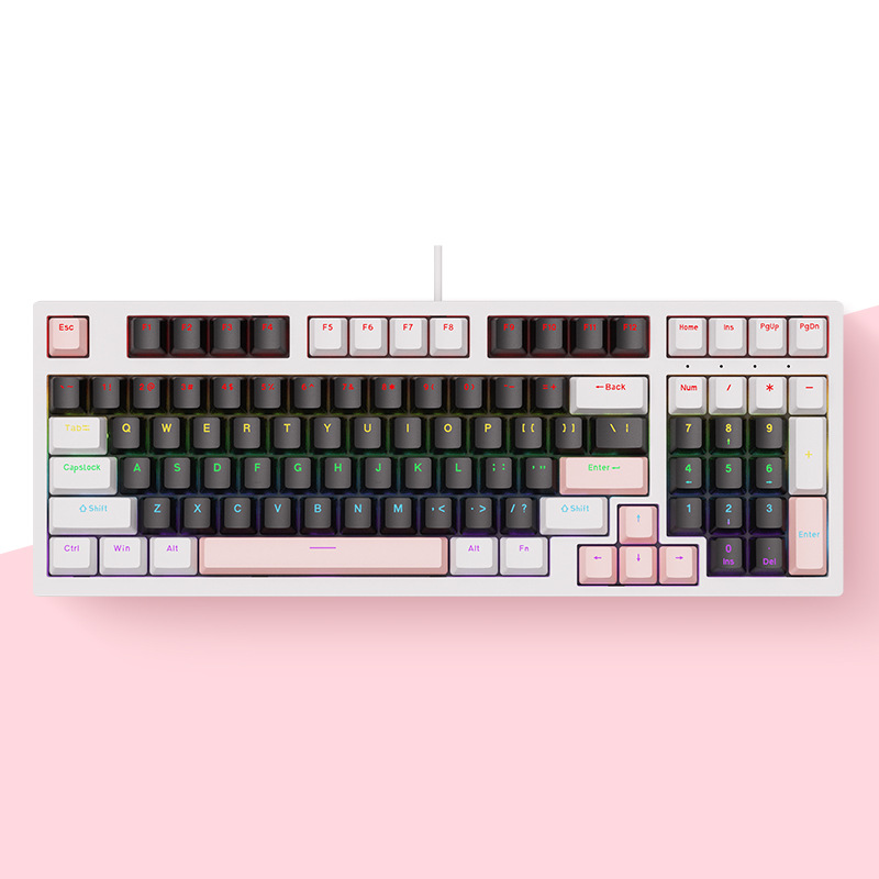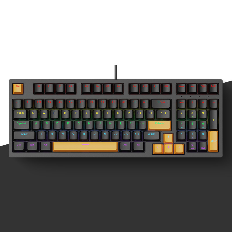 크로스보더 현물상품 K98 유선 기계식 키보드 98키 컬러 매칭 맞춤형 e스포츠 비즈니스 게이밍 키보드 소량 주문 가능