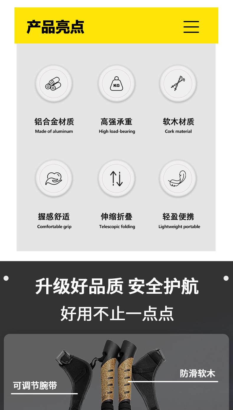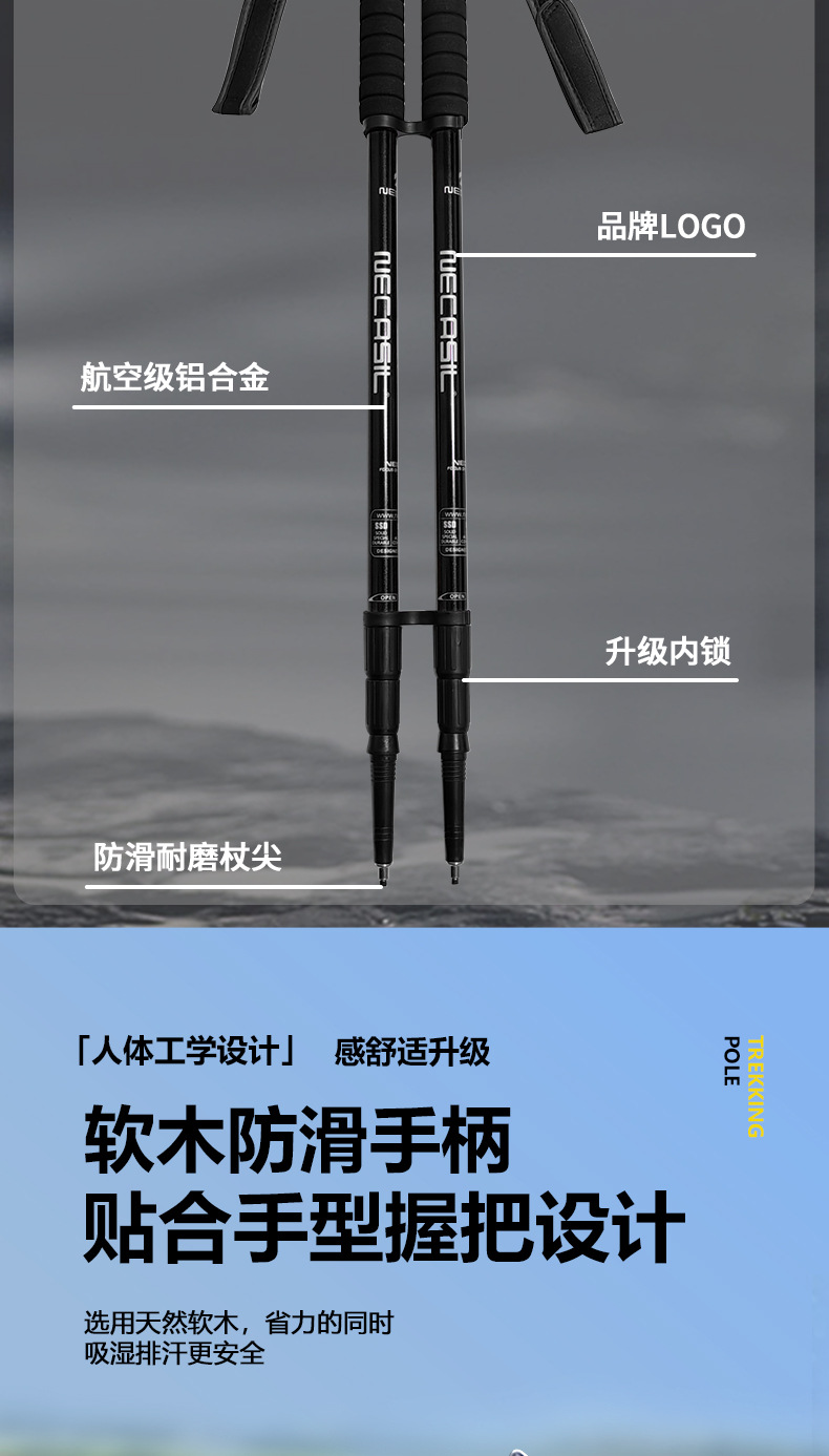 뉴캐슬 직선형 등산 스틱 6061 알루미늄 합금 등산 스틱 초경량 N301 크로스컨트리 워킹 스틱 세트스토어 가기