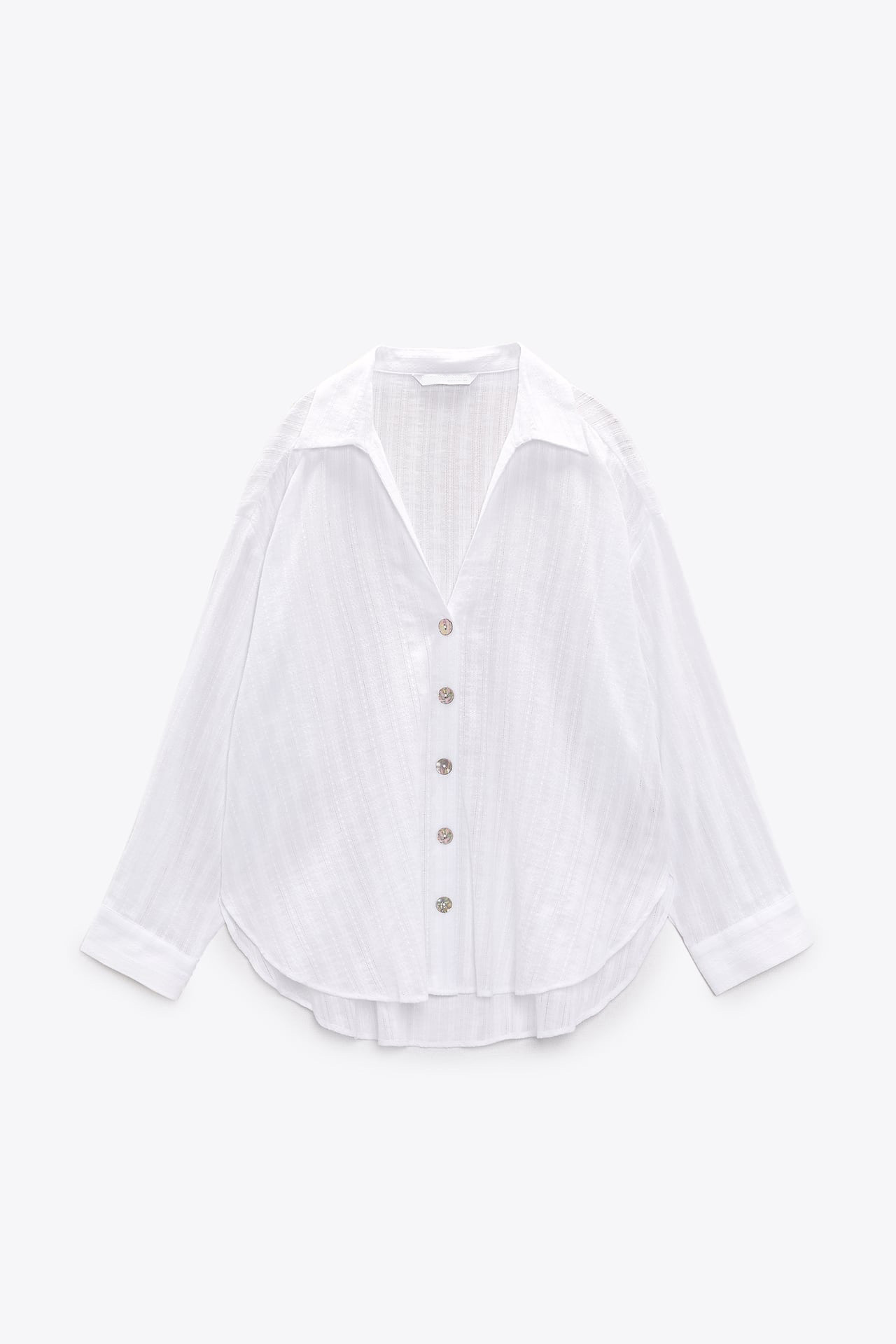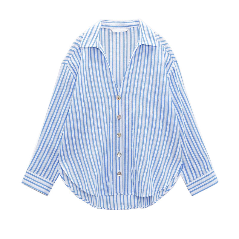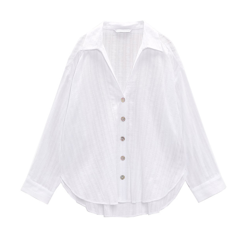 TAOP&ZA 봄 신작 여성 싱글 브레스트 화이트 라펠 긴팔 수직 레이스 루즈 셔츠 8351023스토어 가기