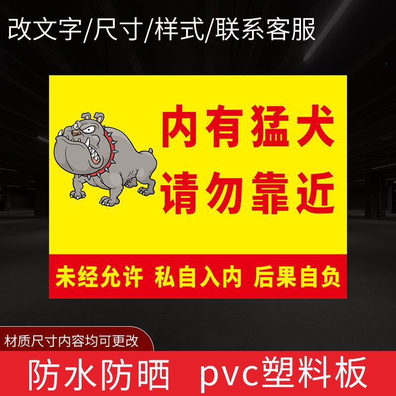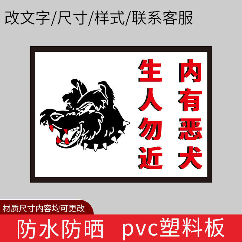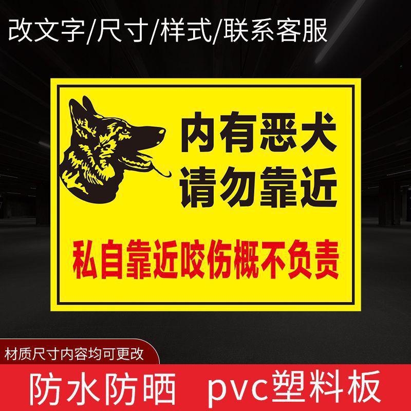 사악한 개 경고 표지판, 문 표지판, 치열한 개 식별 표지판이 있습니다. 따뜻한 경고 표지판에 가까이 가지 마십시오.스토어 가기