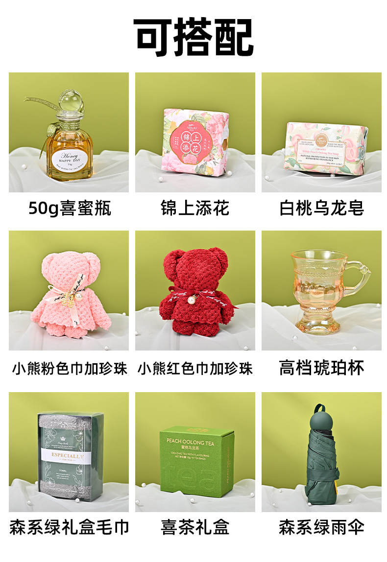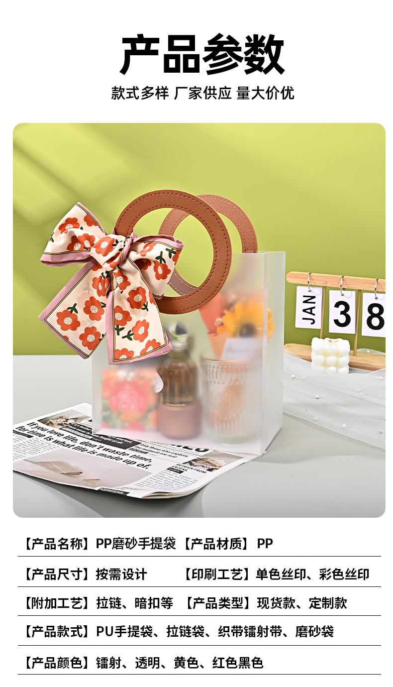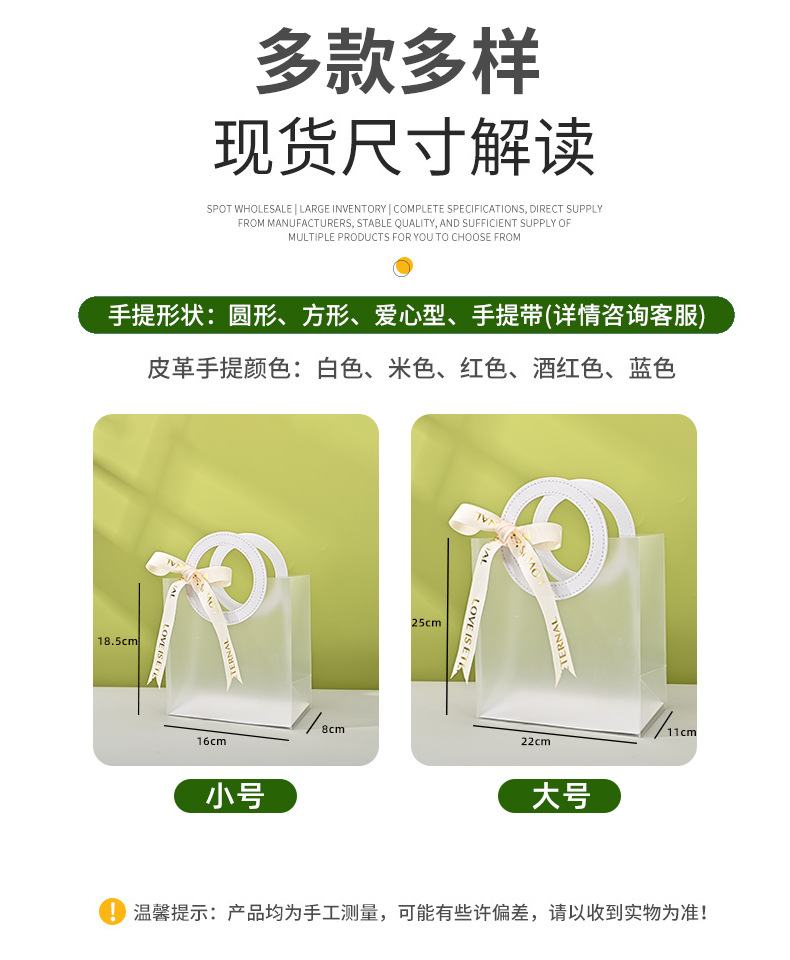 • 색상: 핑크 가죽 가방 + 러브 리본 + 라피아 + 유칼립투스 카드 + 도금 태그; 크기: 스몰 사이즈: 18.5*16*8