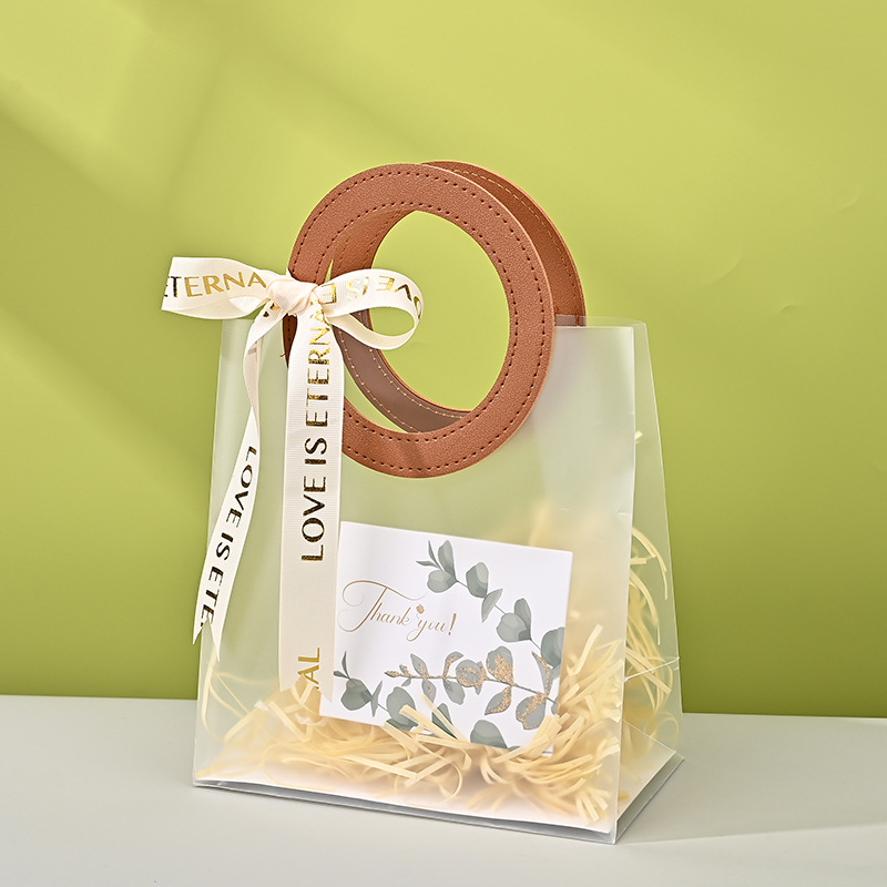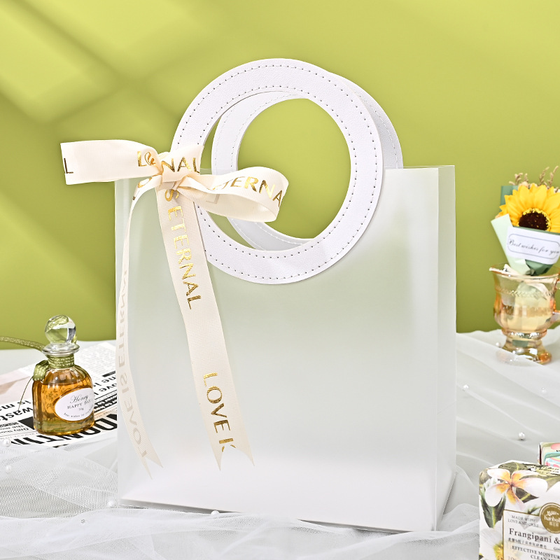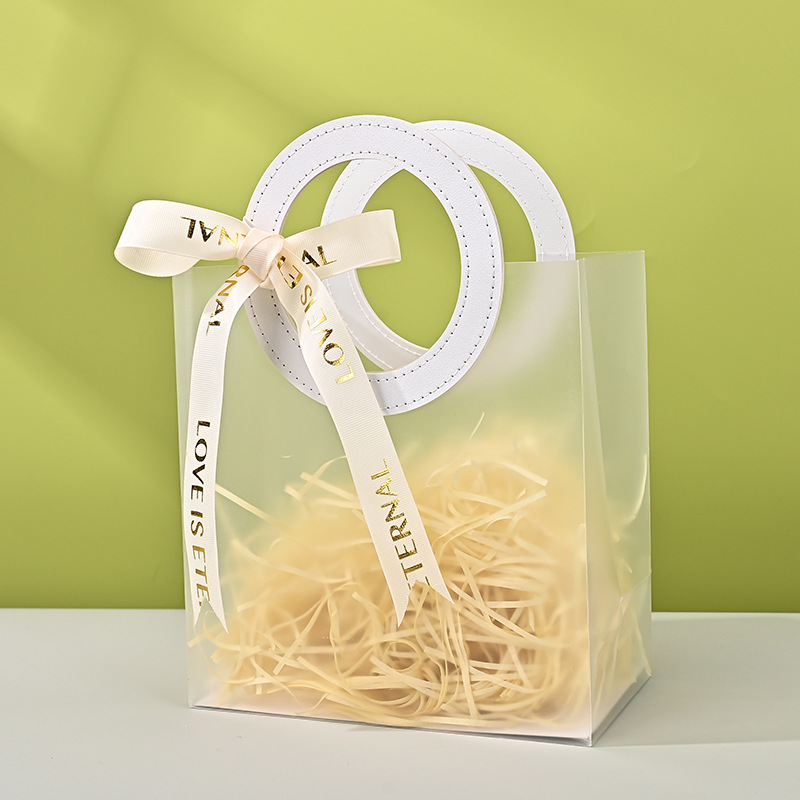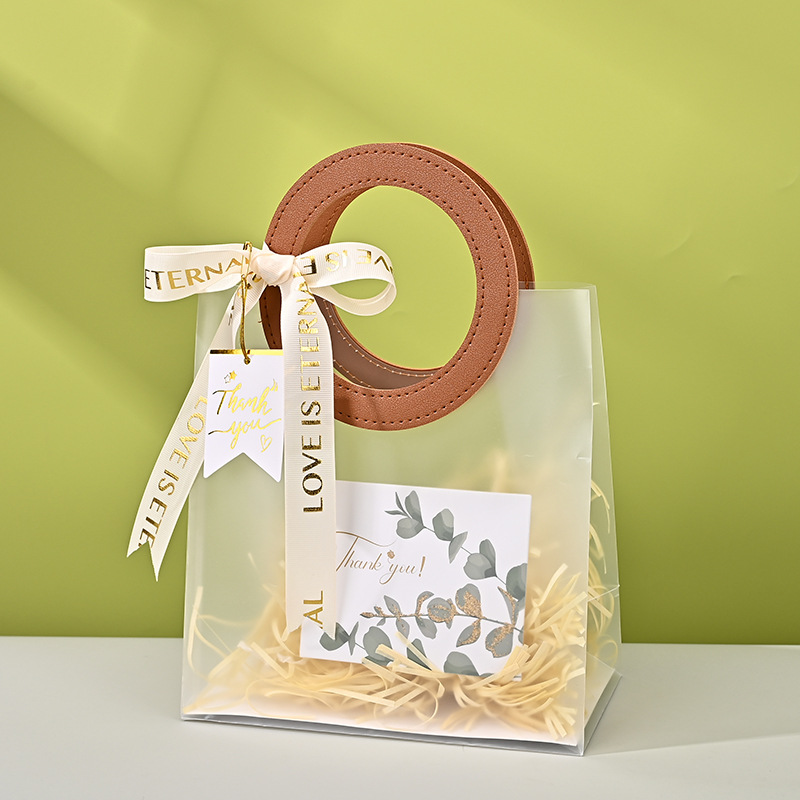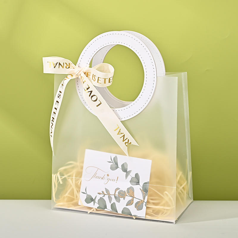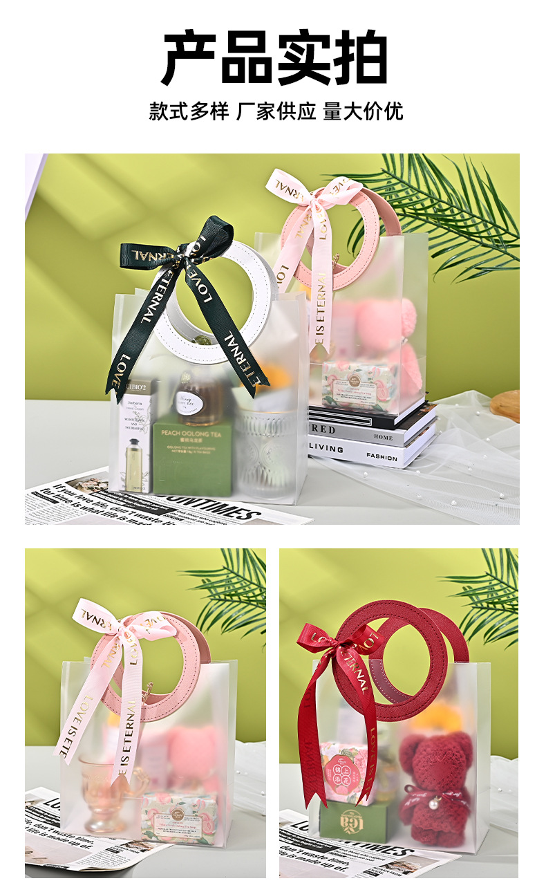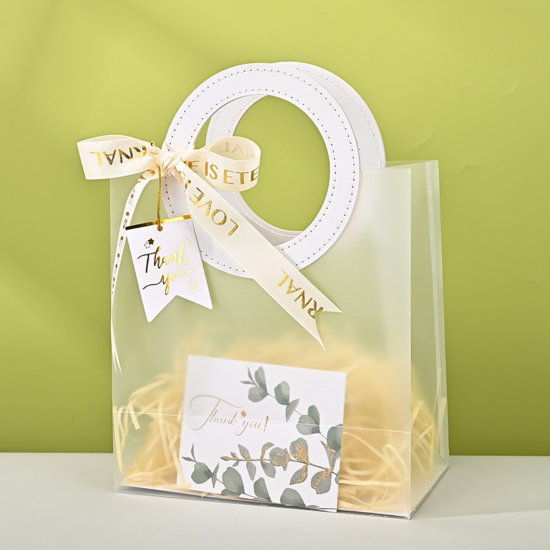 Pp 젖빛 핸드백 선물 가방 조합 우유 차 레드 와인 선물 핸드백 투명 손 선물 가방 재고