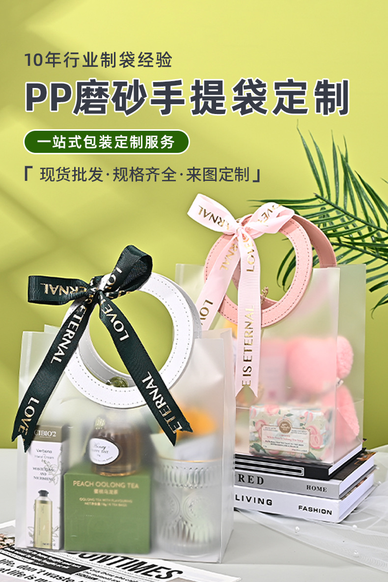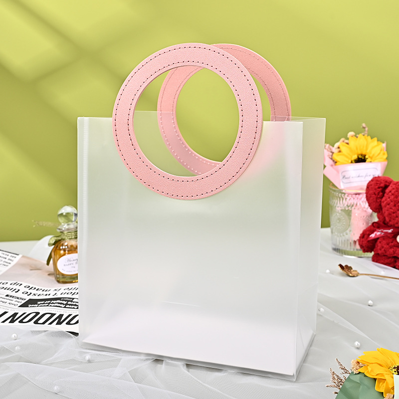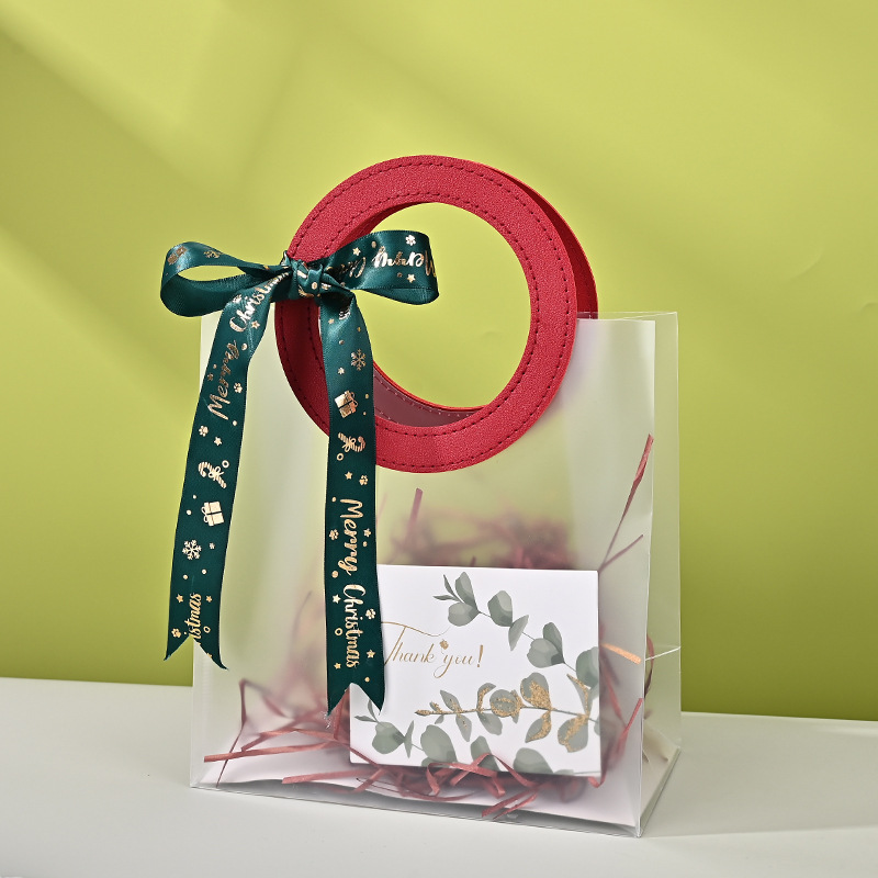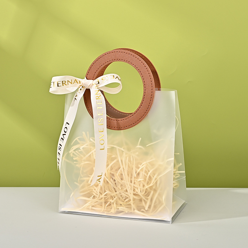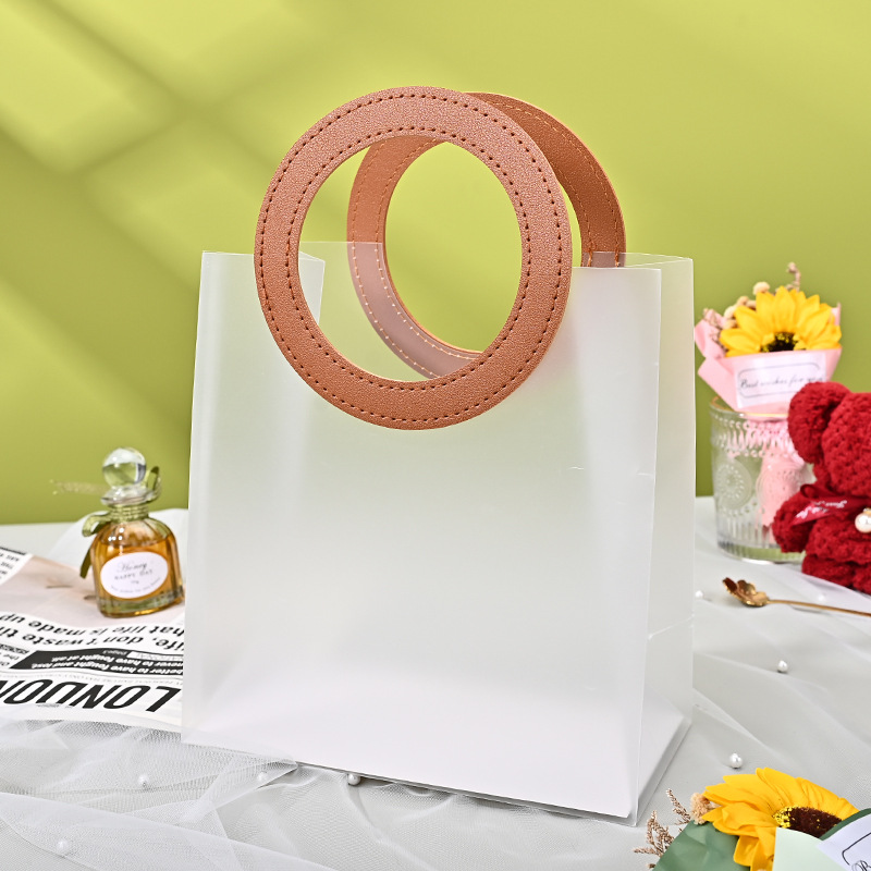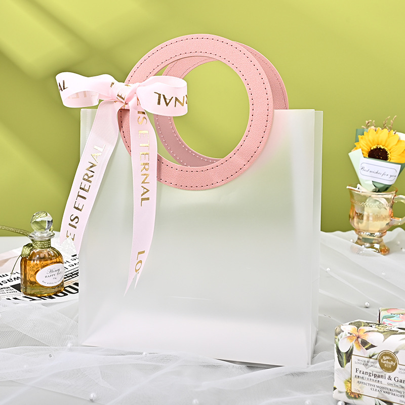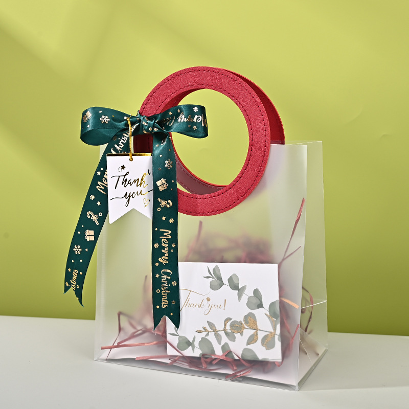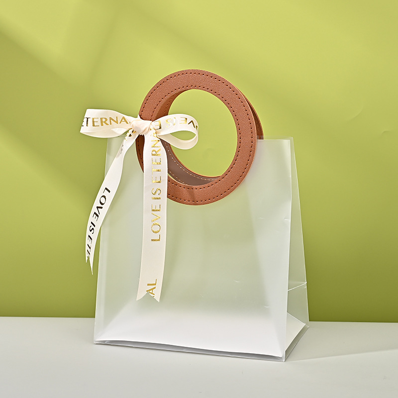 Pp 젖빛 핸드백 선물 가방 조합 우유 차 레드 와인 선물 핸드백 투명 손 선물 가방 재고