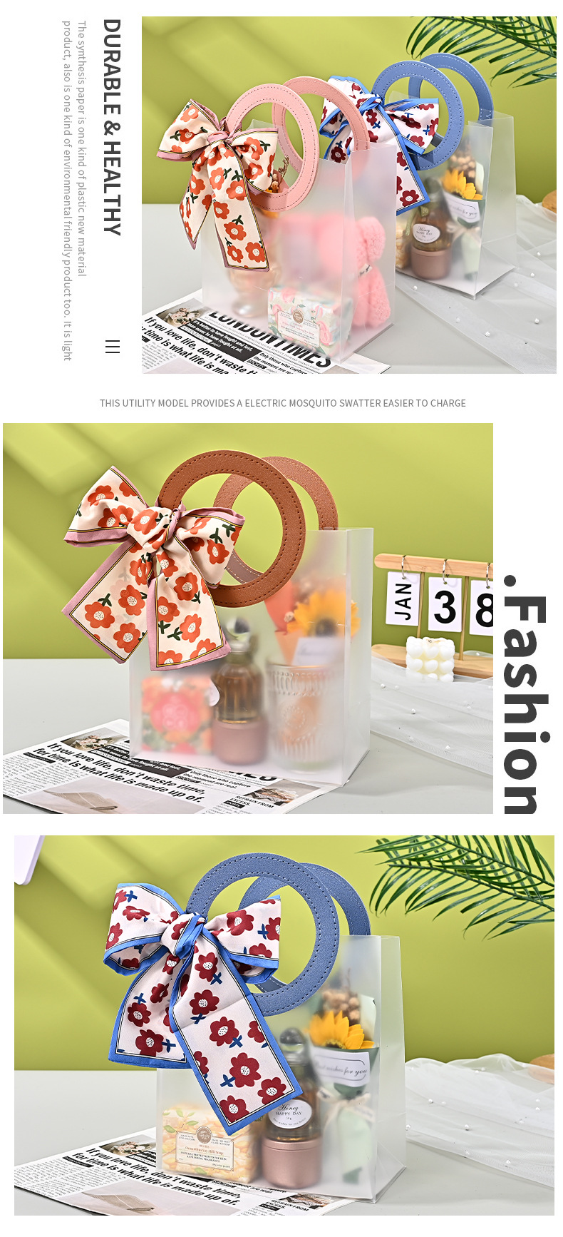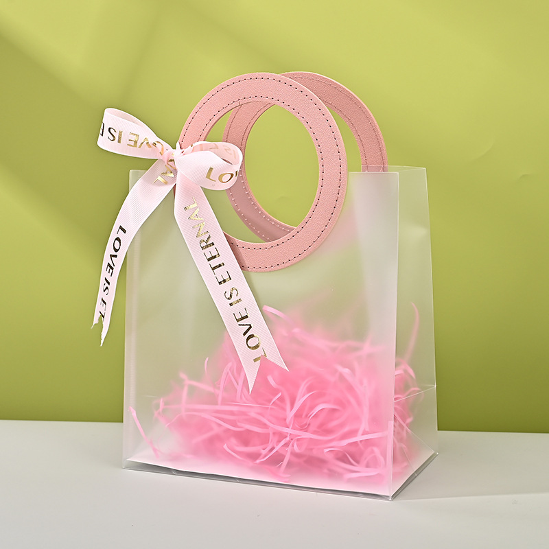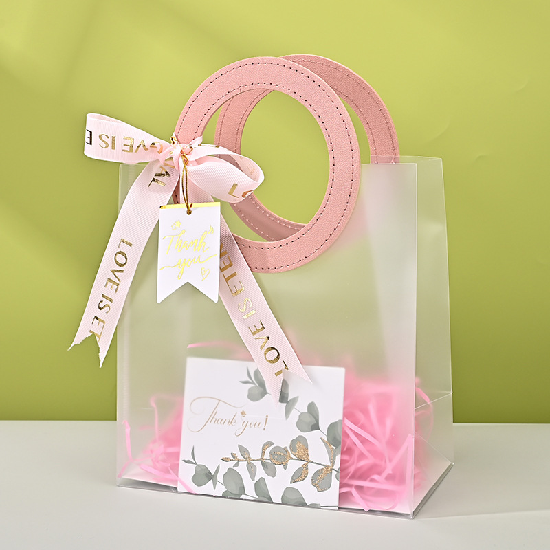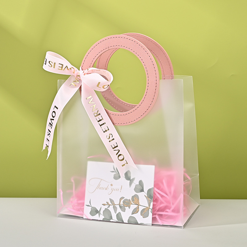 • 색상: 핑크 가죽 가방 + 러브 리본 + 라피아 + 유칼립투스 카드 + 도금 태그; 크기: 큰 크기: 25*22*11