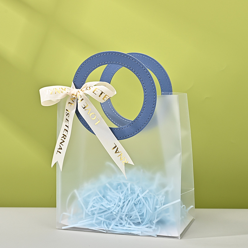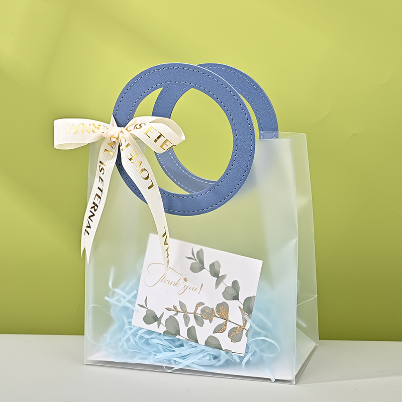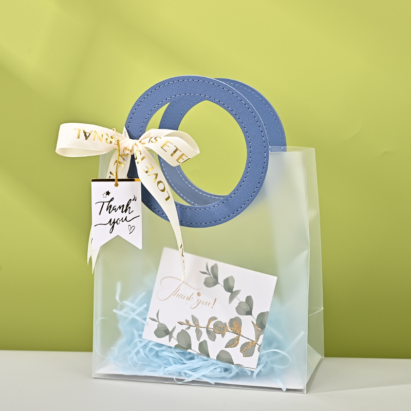 • 색상: 블루 가죽 가방 + 러브 리본 + 라피아 + 유칼립투스 카드 + 도금 태그; 크기: 큰 크기: 25*22*11