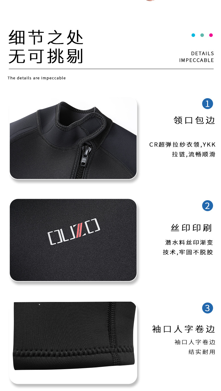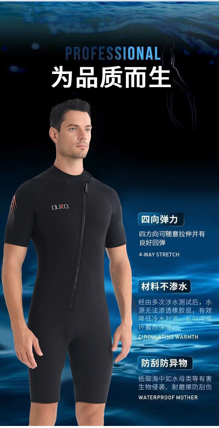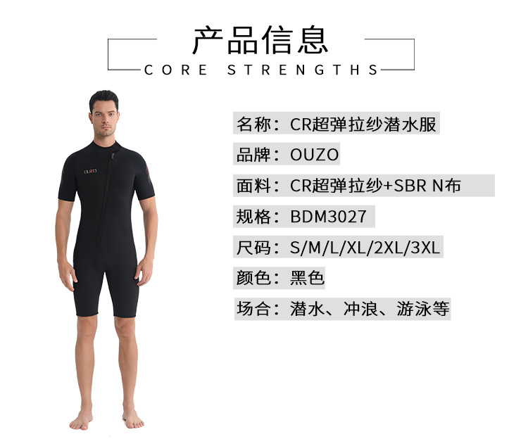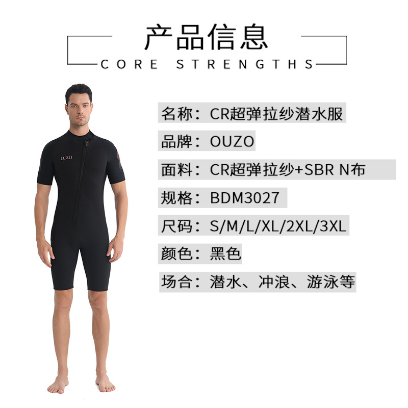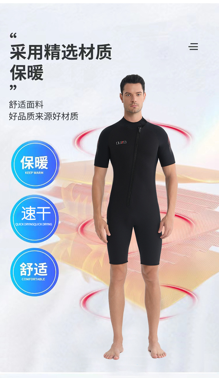 短袖短裤防晒冲浪服 ouzo加厚保暖防寒连体潜水衣 3mm男士潜水服