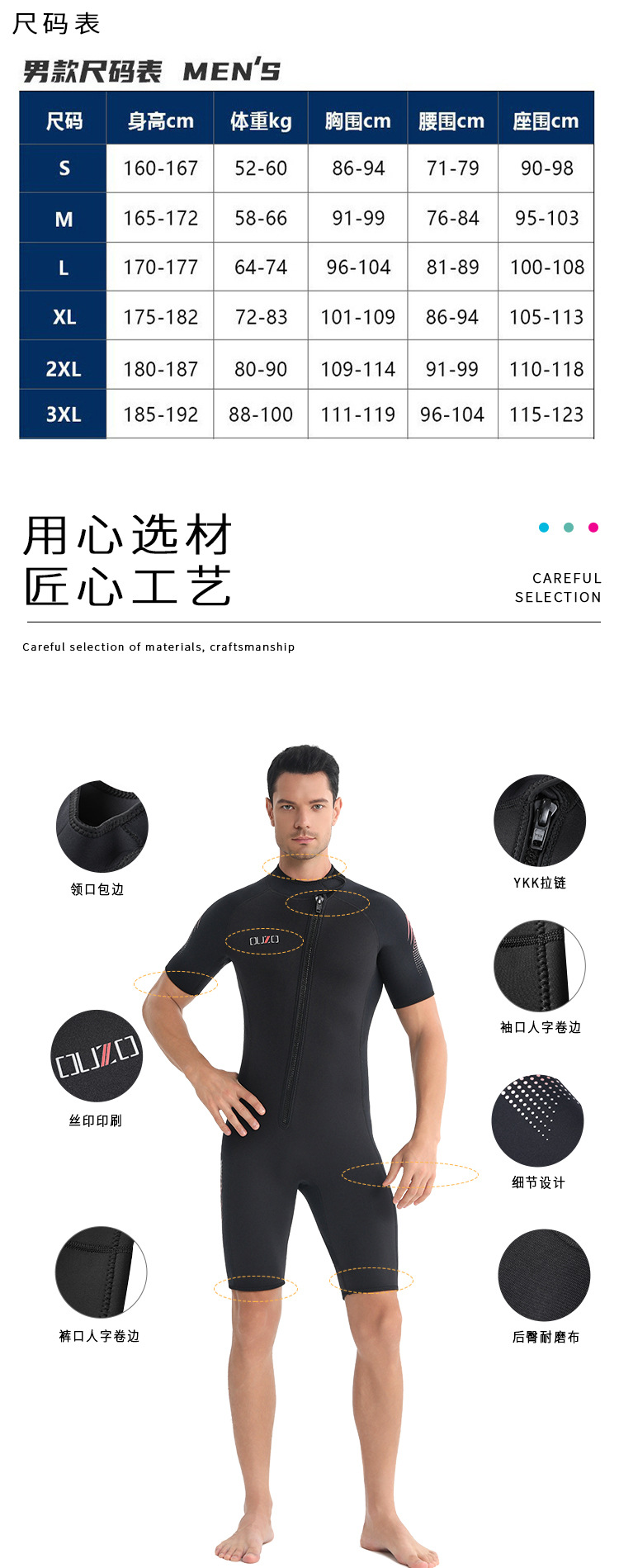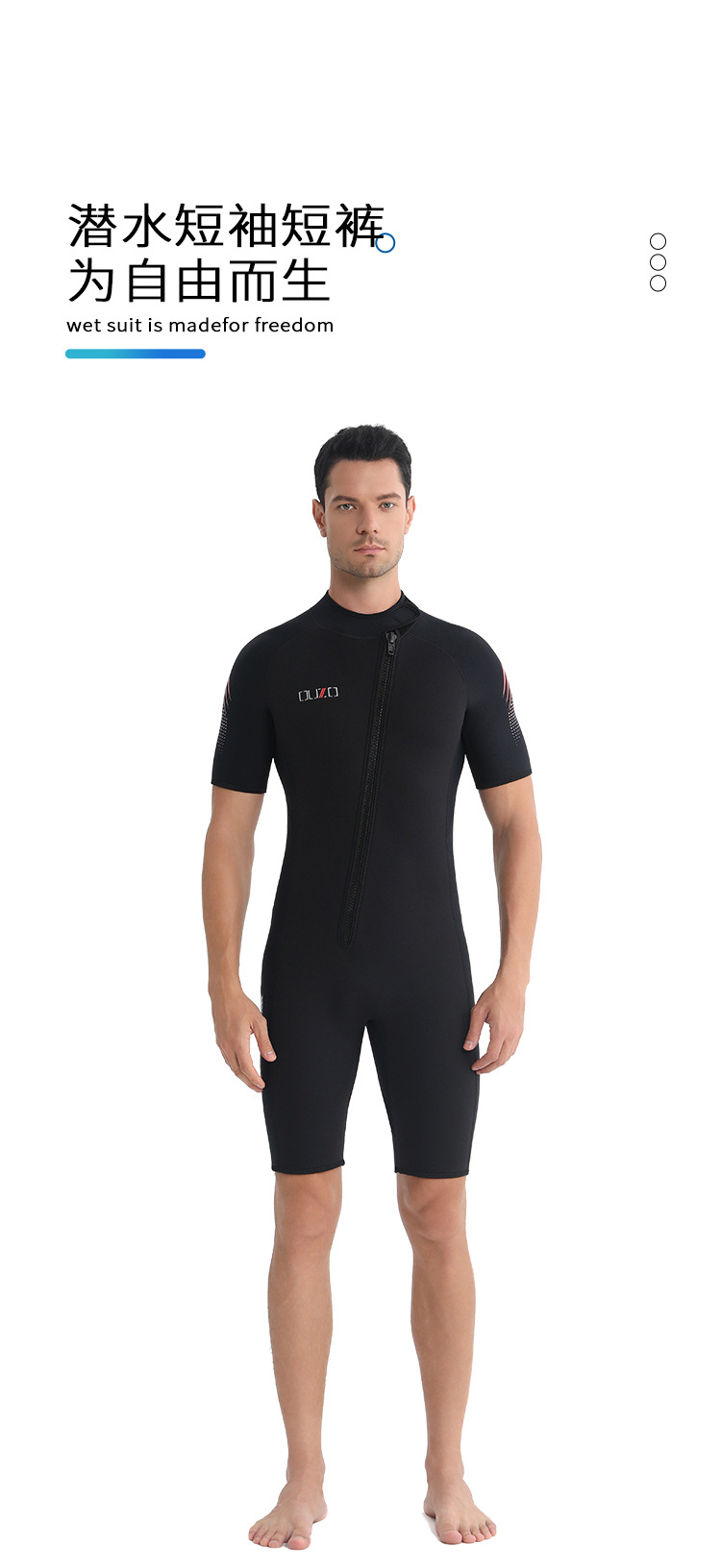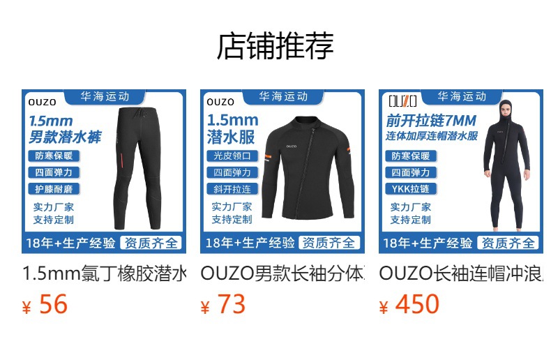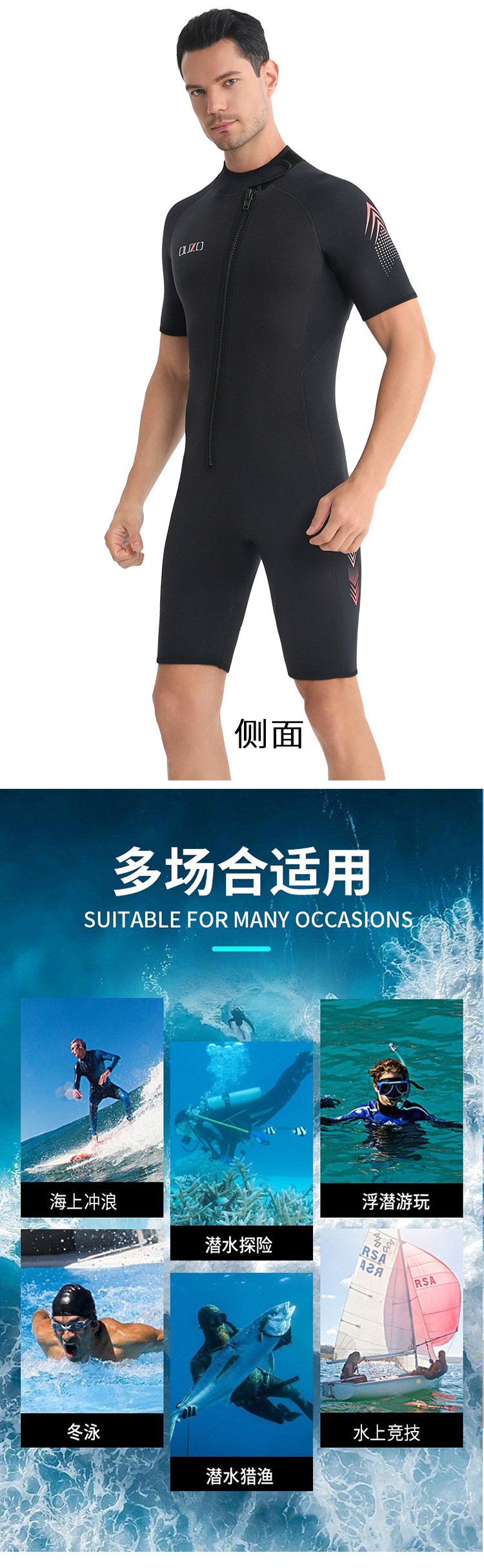 短袖短裤防晒冲浪服 ouzo加厚保暖防寒连体潜水衣 3mm男士潜水服