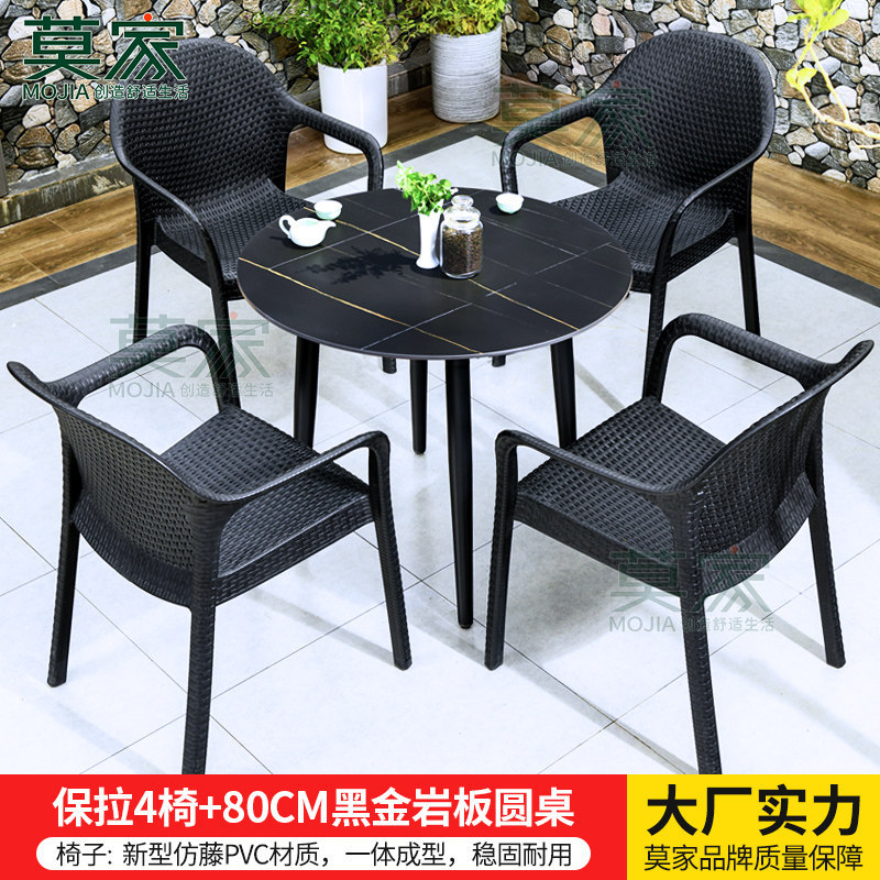 • 4+1 [80cm 블랙골드 슬레이트 원형테이블 포함] 블랙