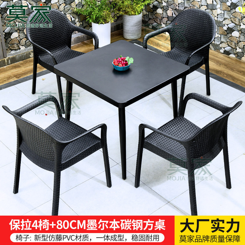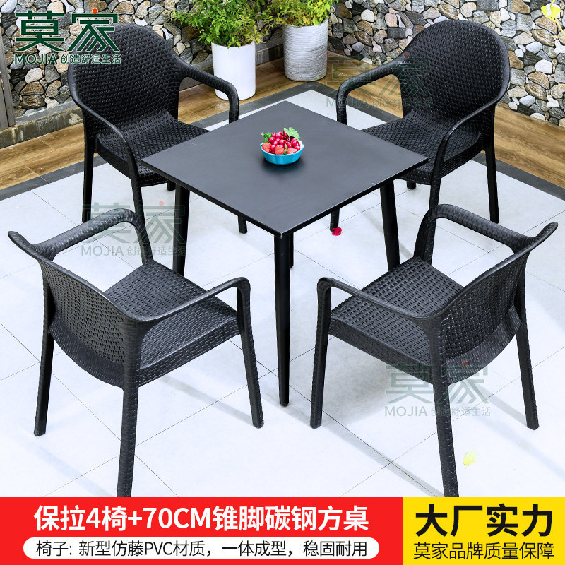 • 4+1 [70cm 원뿔형 다리 탄소강 사각 테이블 포함] 블랙
