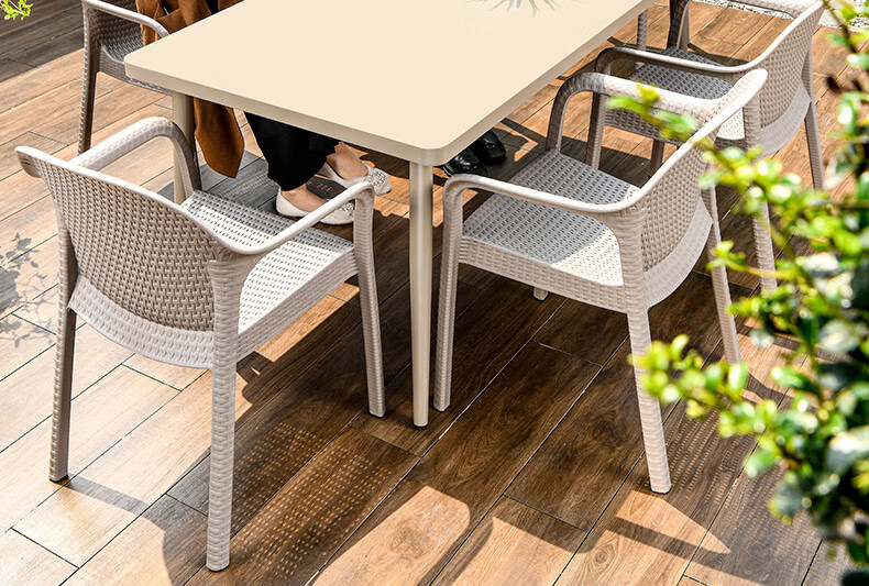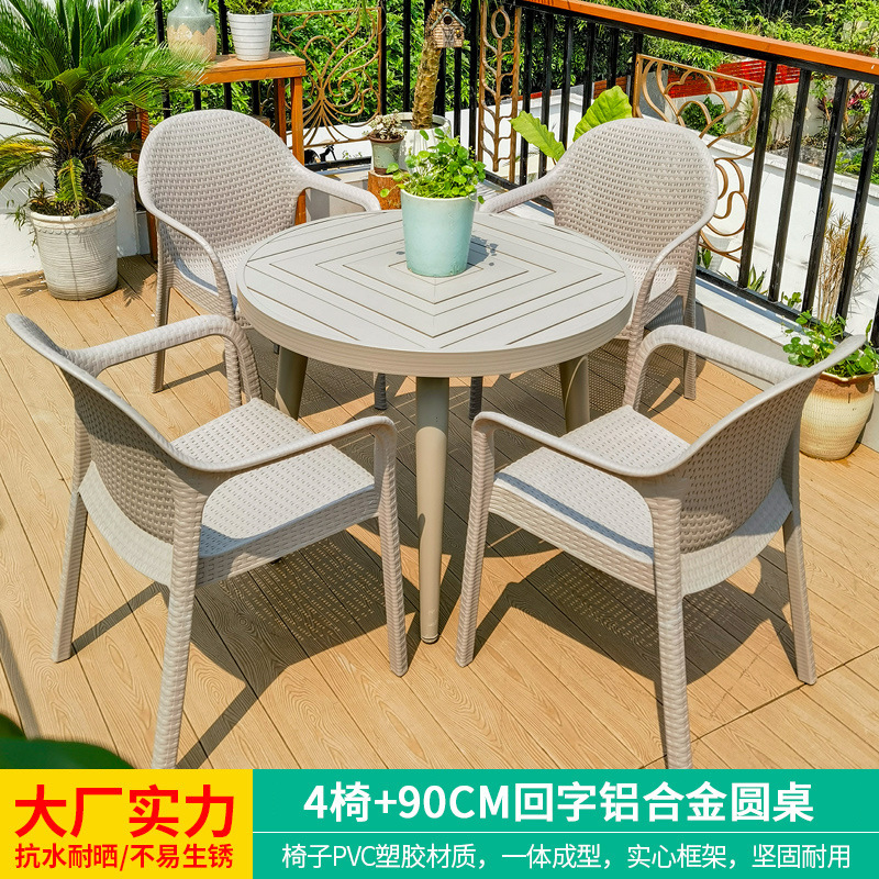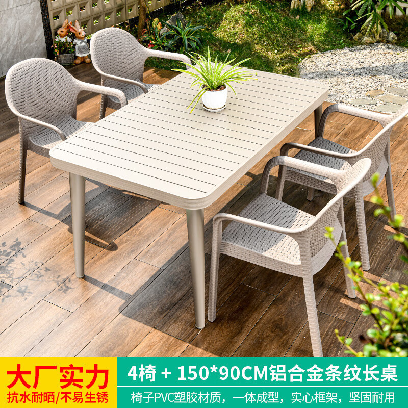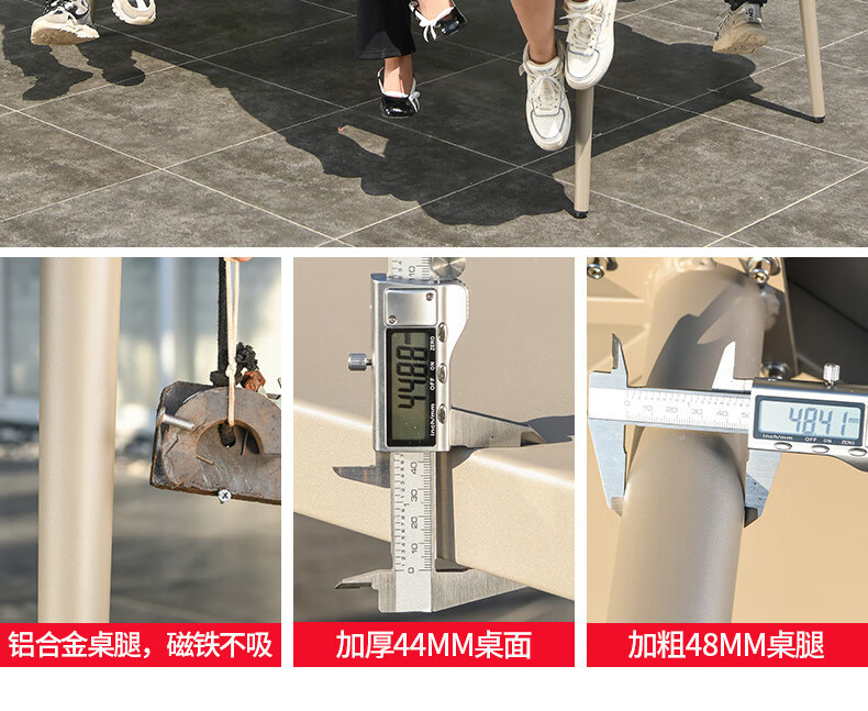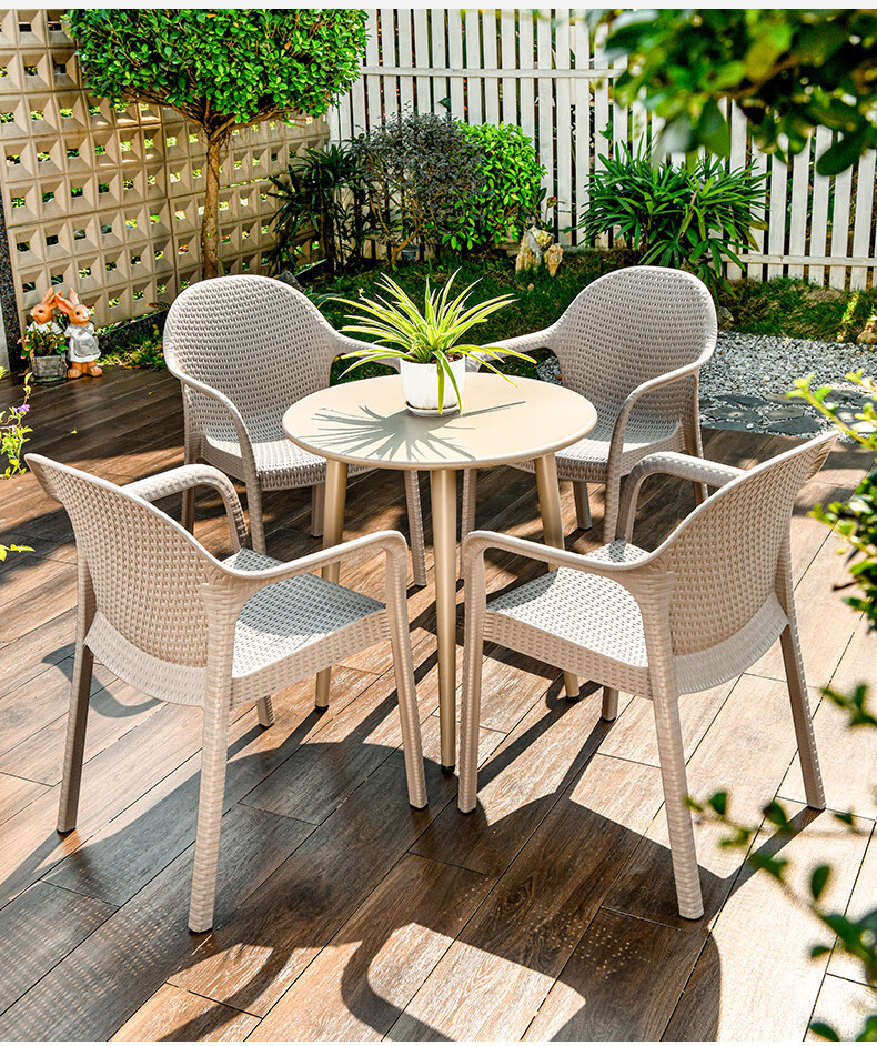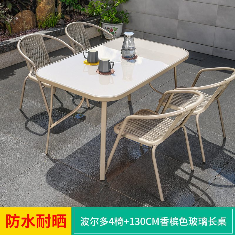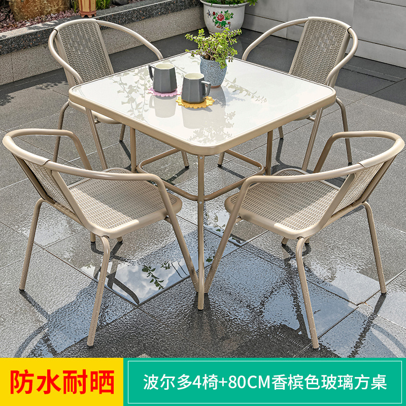 모가족 야외 테이블 및 의자, 발코니 레저 테이블 및 의자 세트, 안뜰 정원 알루미늄 테이블, 테라스 샴페인 색상