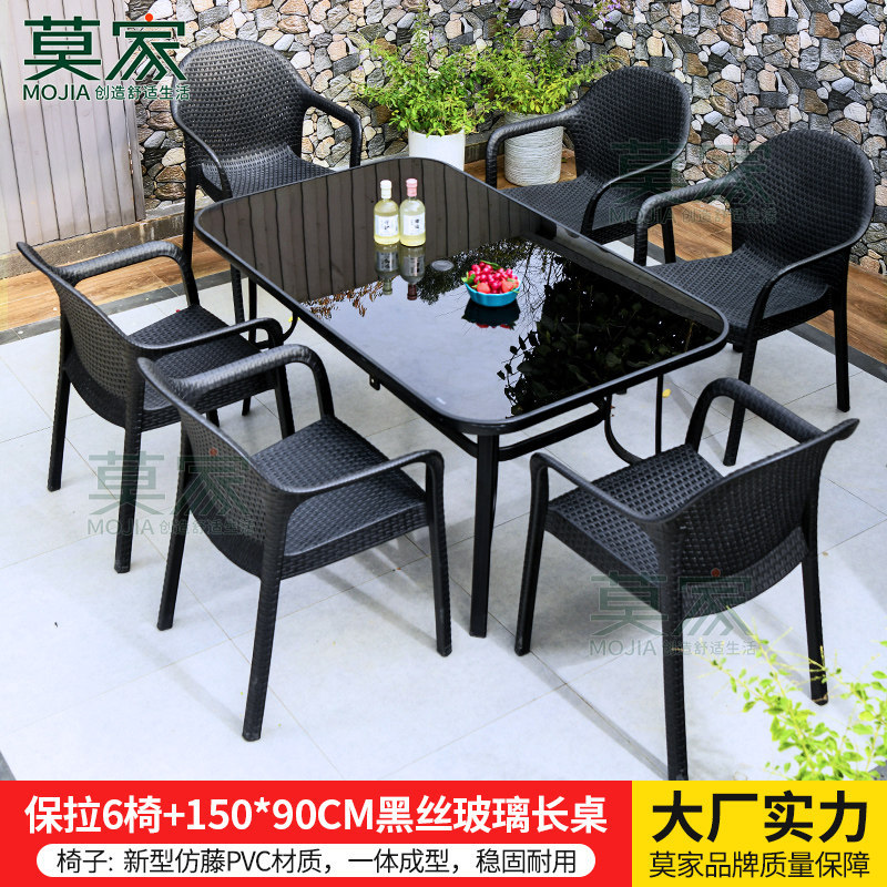• 6+1 [150*90cm 블랙 실크 유리 테이블 포함] 블랙