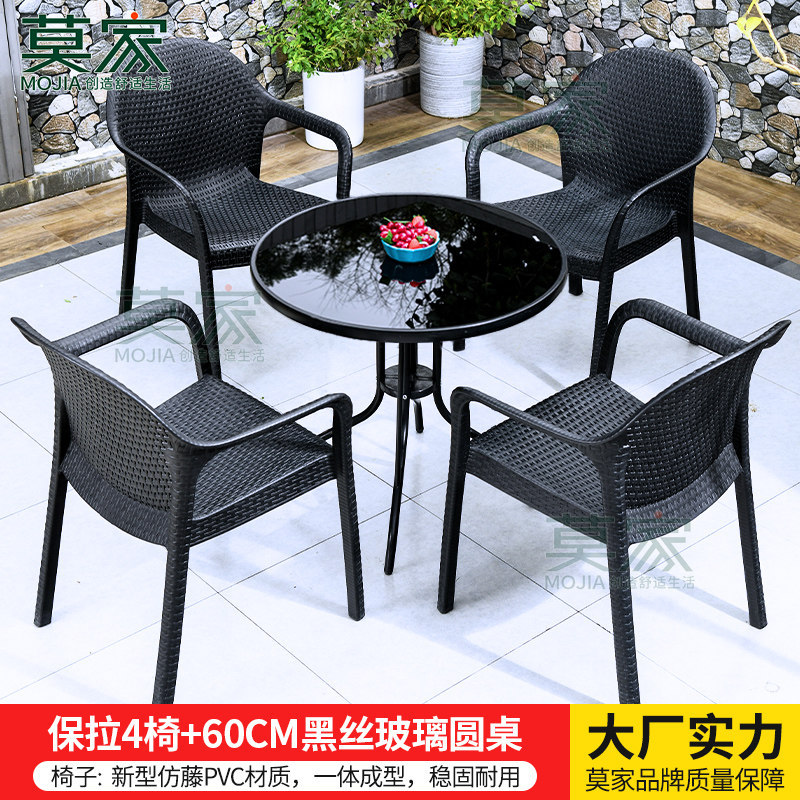 • 특가: 4+1 [70cm 블랙 실크 유리 원형 테이블 포함] 블랙