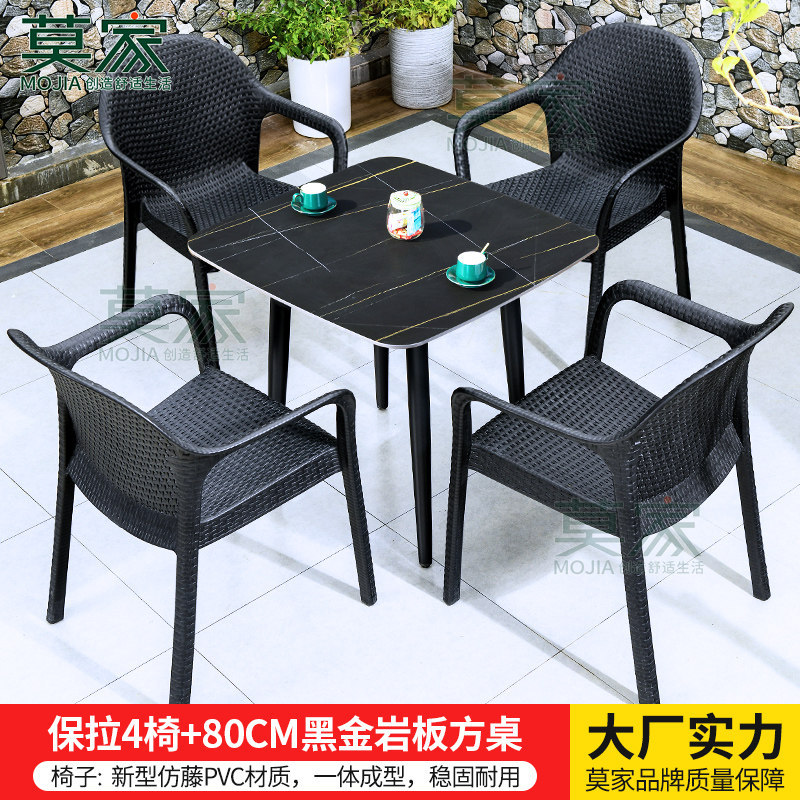 • 4+1 [80cm 두께의 탄소강 사각 테이블 포함] 블랙