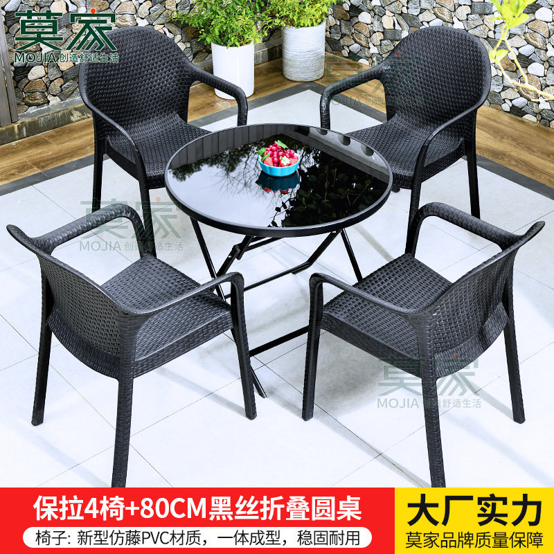 • 4+1 [80CM 블랙 실크 접이식 유리 원형 테이블] 블랙