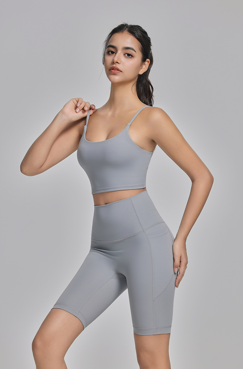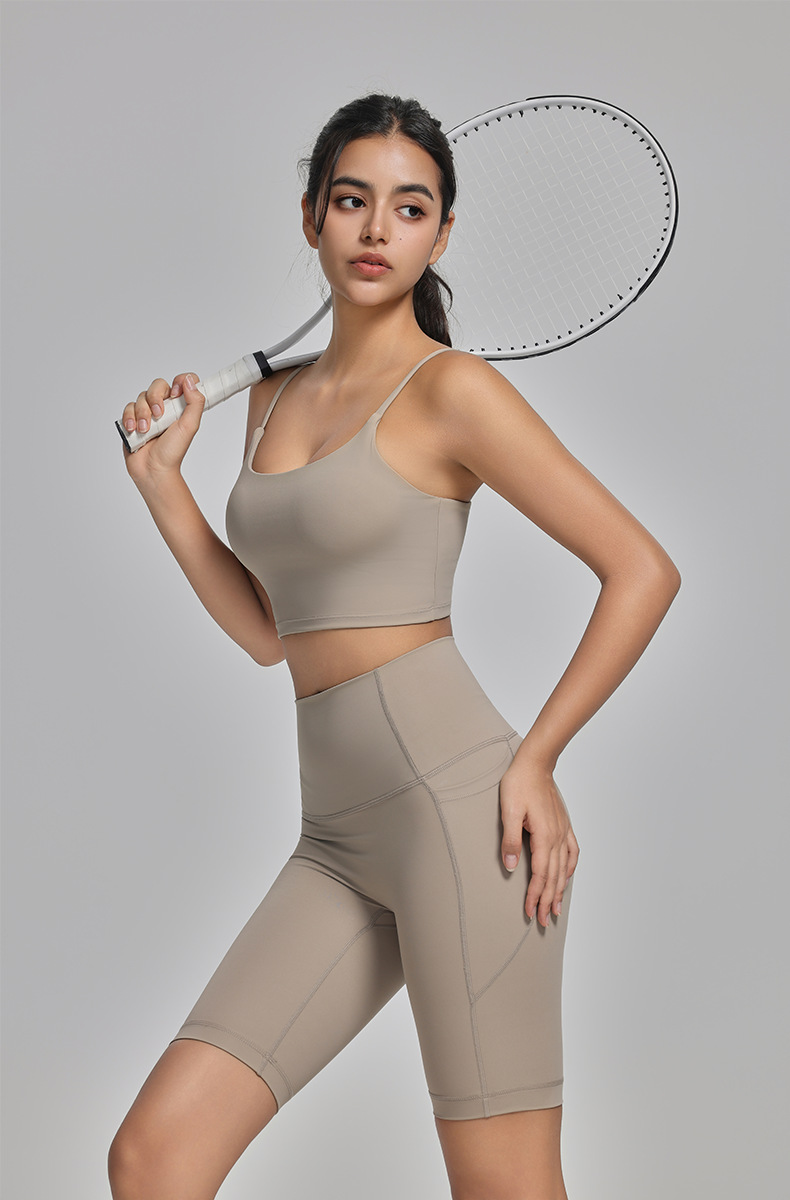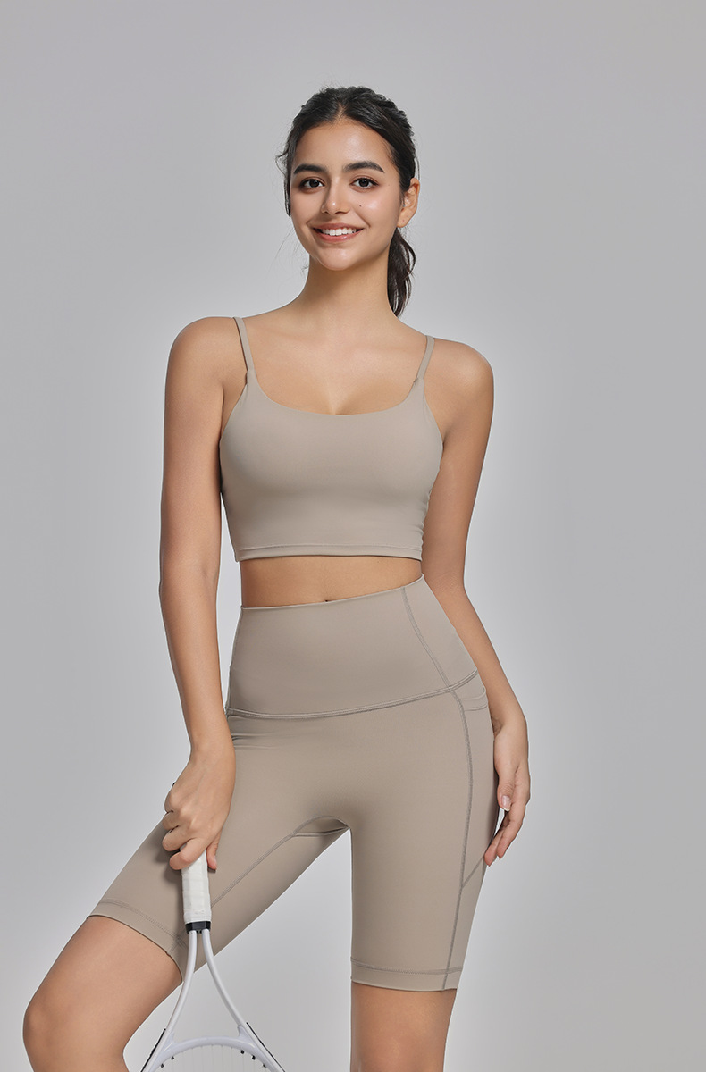라이크라 요가탑, 고강도 피트니스탑, 누드느낌의 아름다운 등 디자인의 스트랩 브라, 충격방지 스포츠 브라스토어 가기