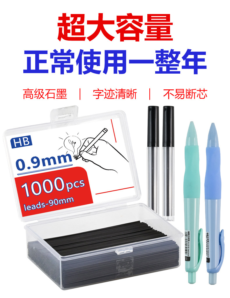 국경 간 0.9mm 대용량 자동 연필 리드 이동식 리드 초등학생 쓰기 리필 HB 대담하게 깨기 쉽지 않음