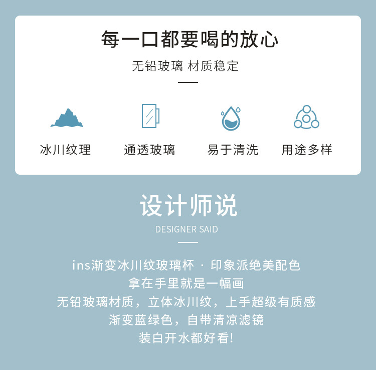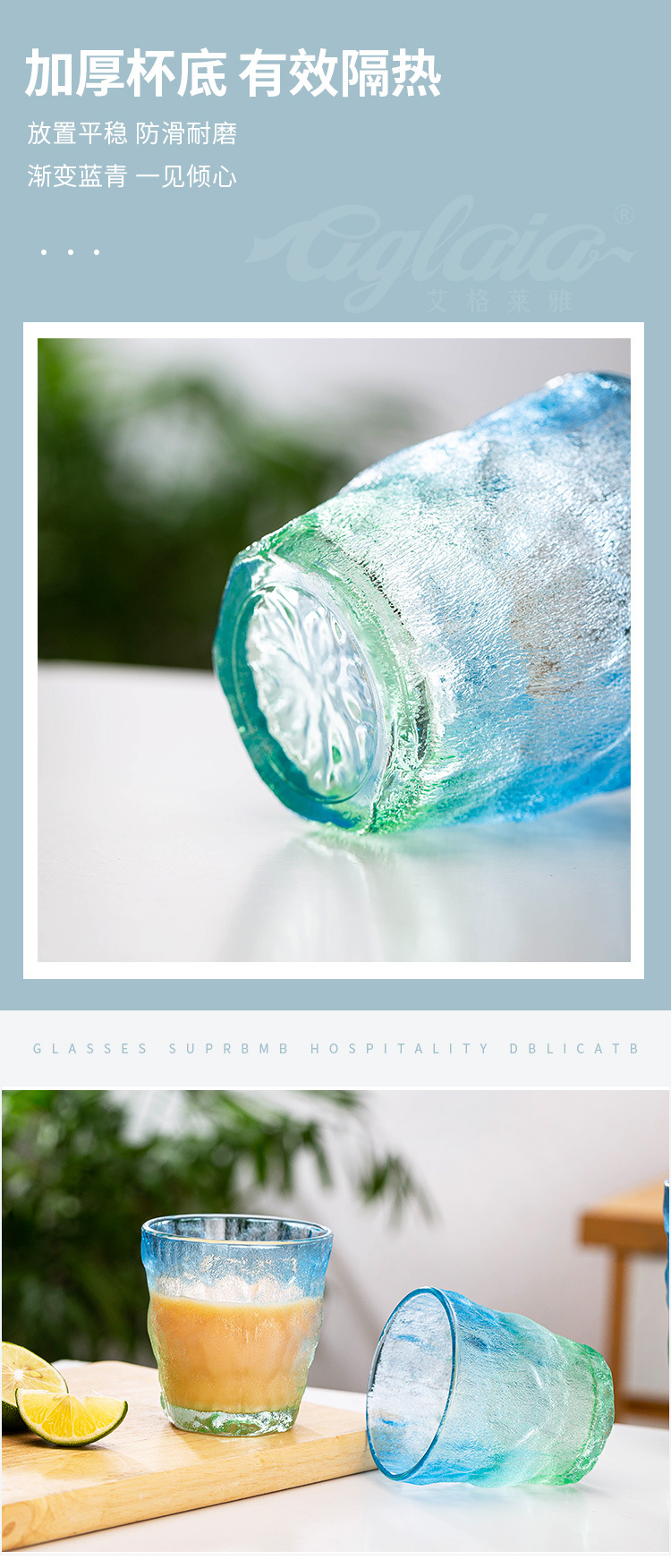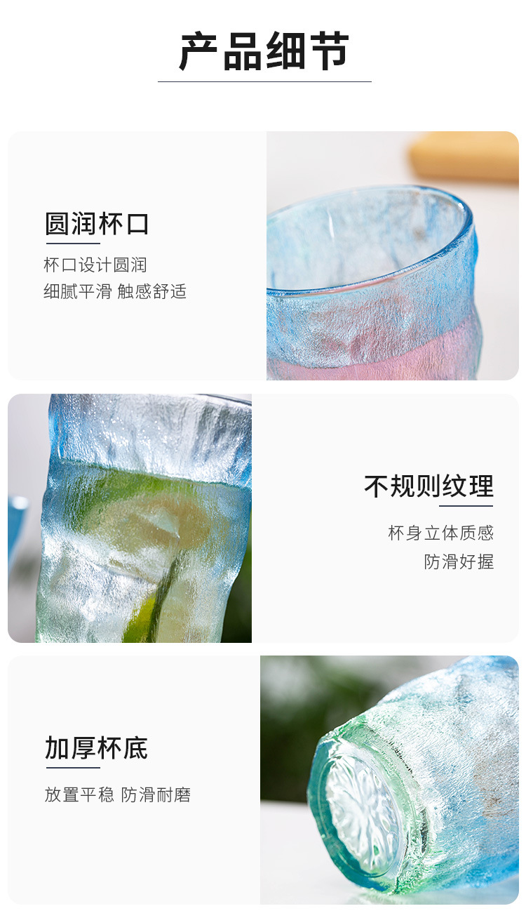 빙하 질감 유리 컵 스타일 새로운 간단한 아침 식사 컵 우유 컵 높은 모양의 물 컵 선물스토어 가기