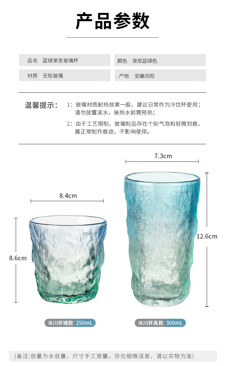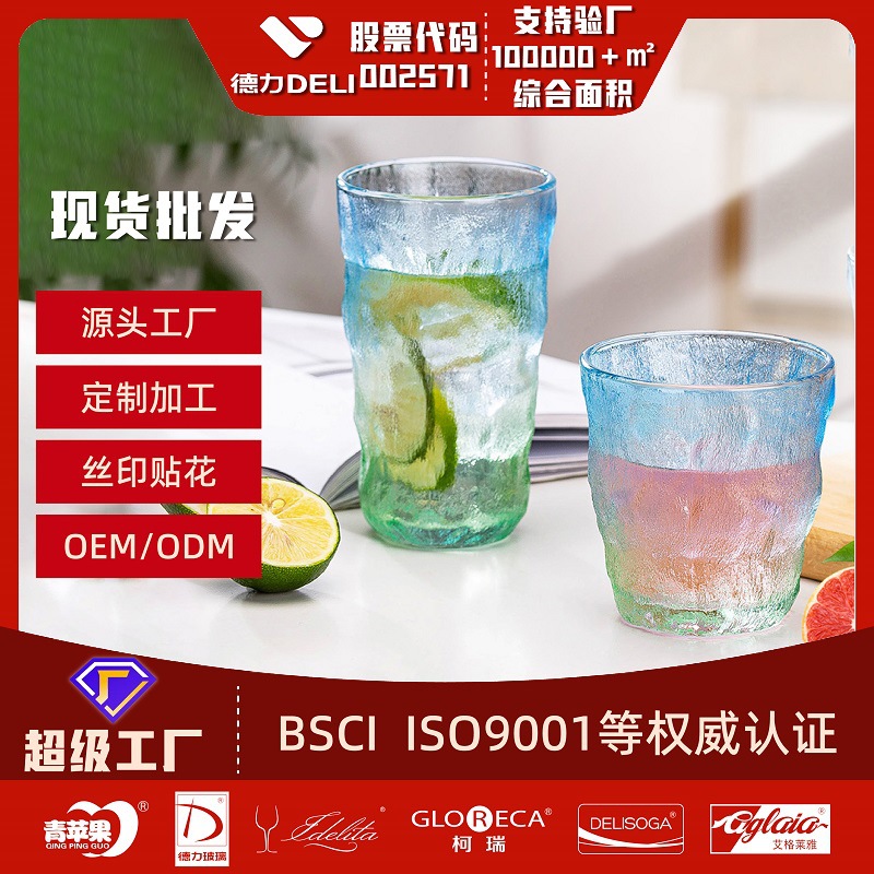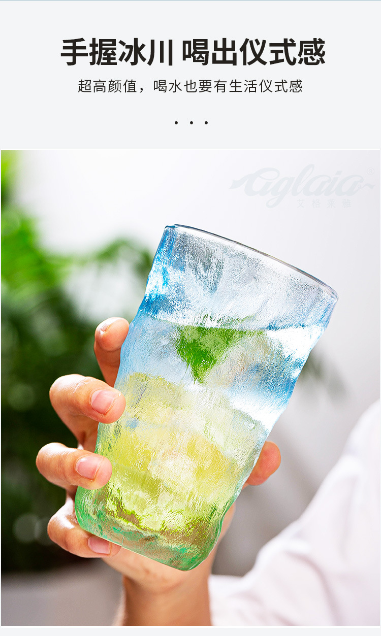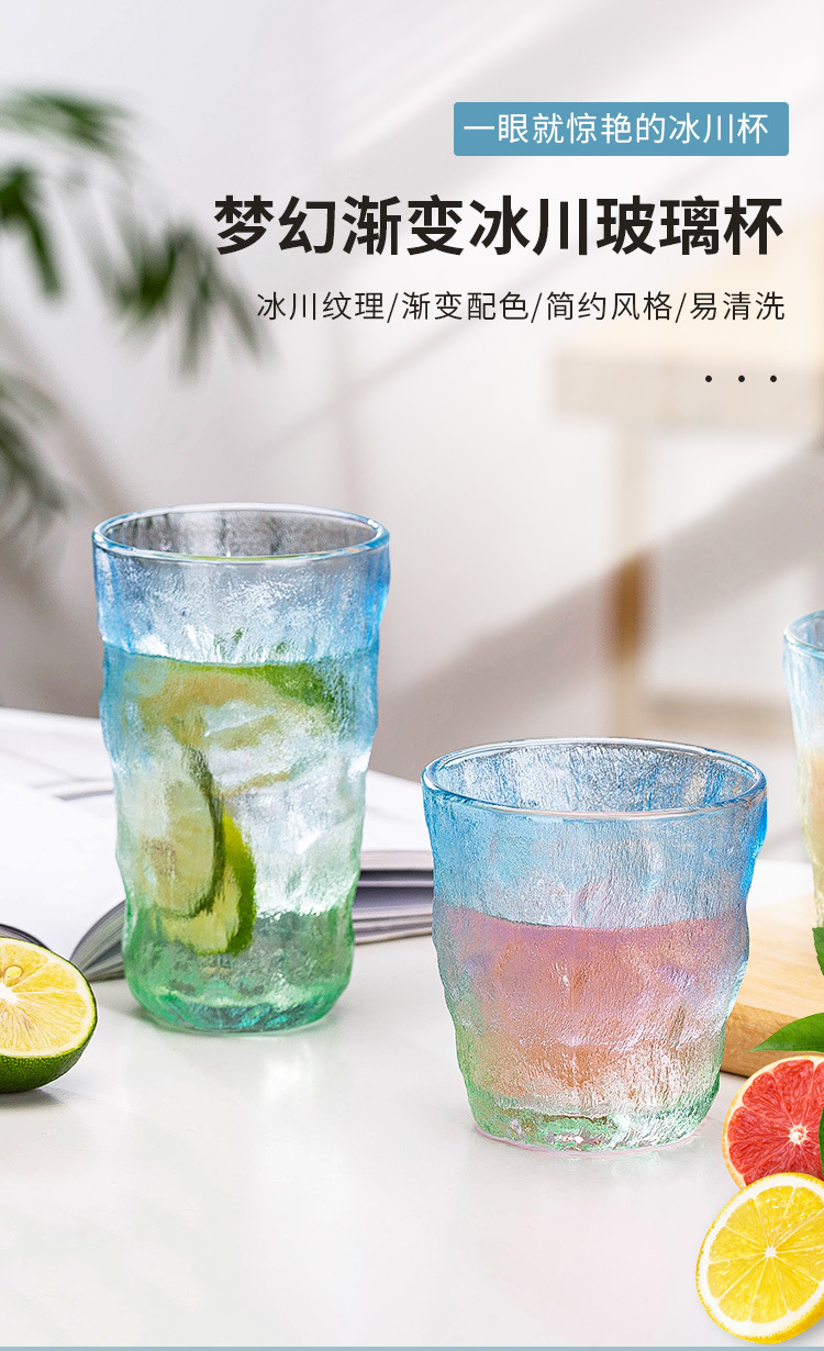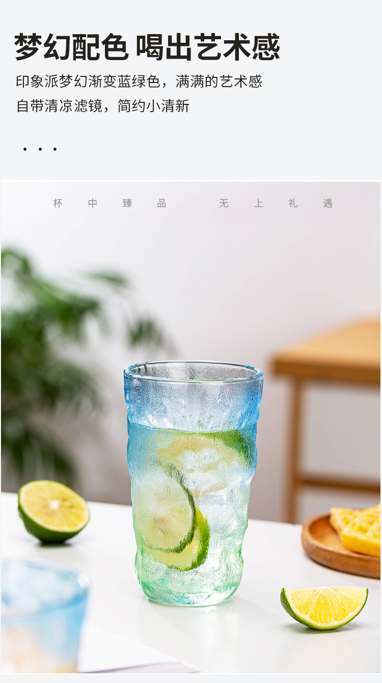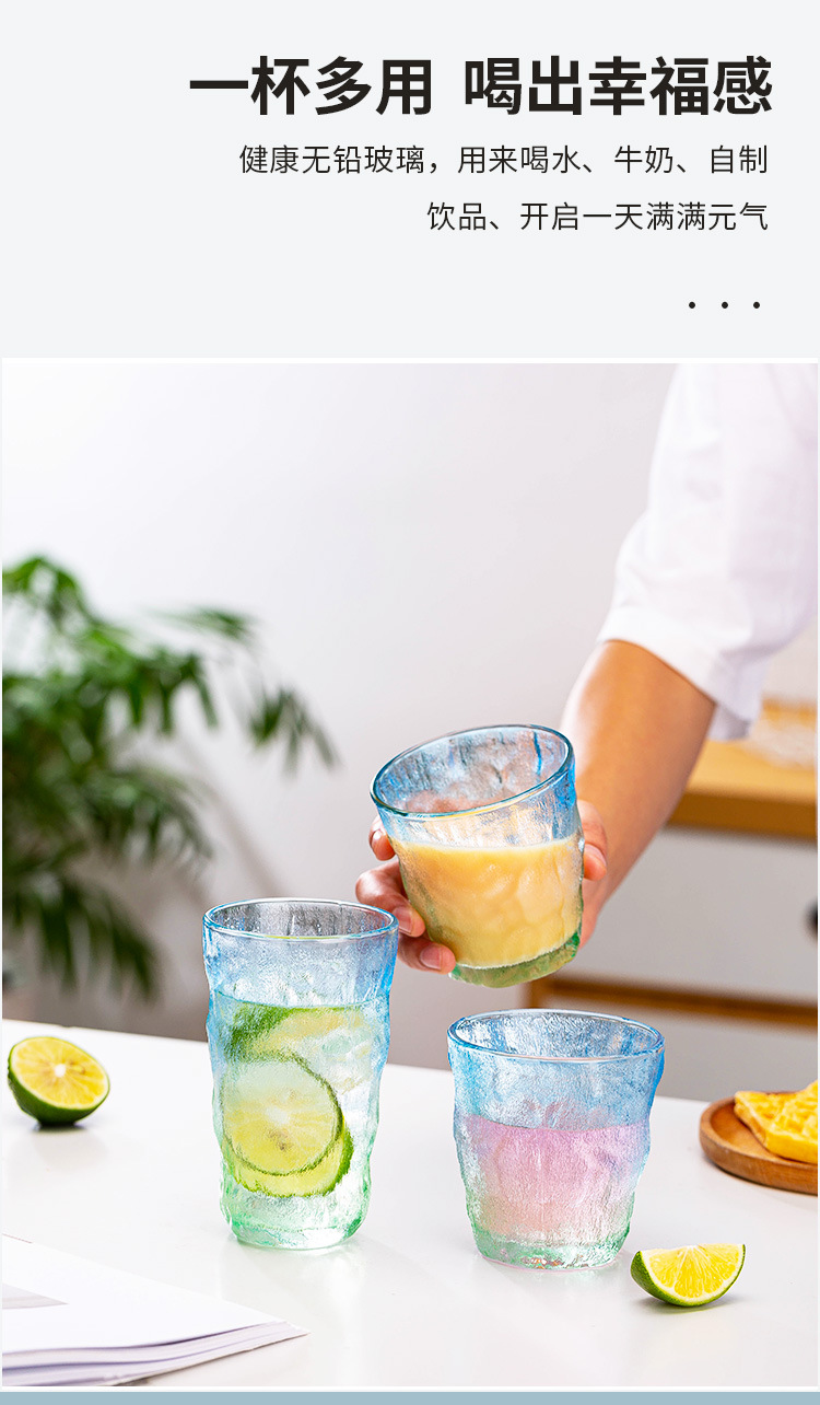 빙하 질감 유리 컵 스타일 새로운 간단한 아침 식사 컵 우유 컵 높은 모양의 물 컵 선물