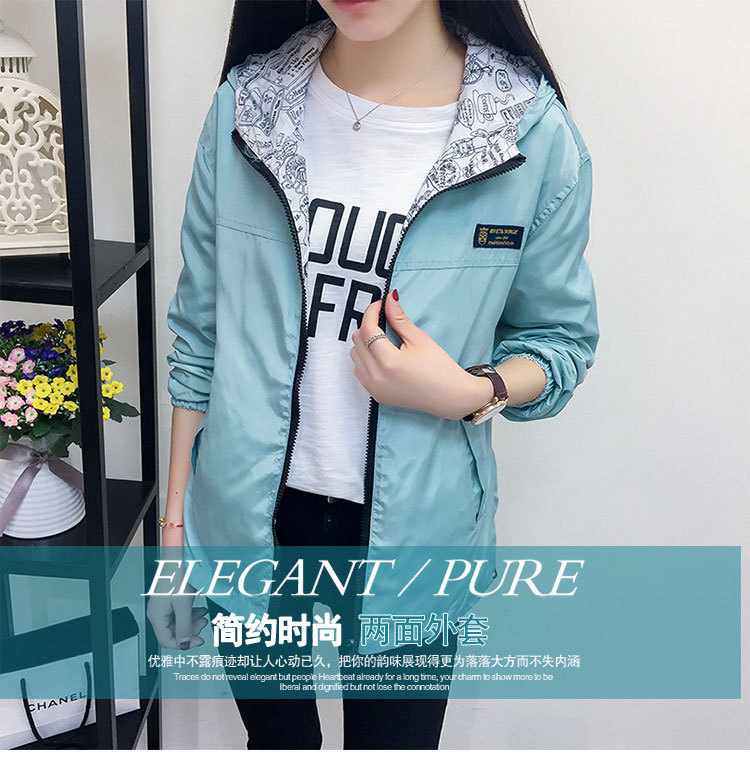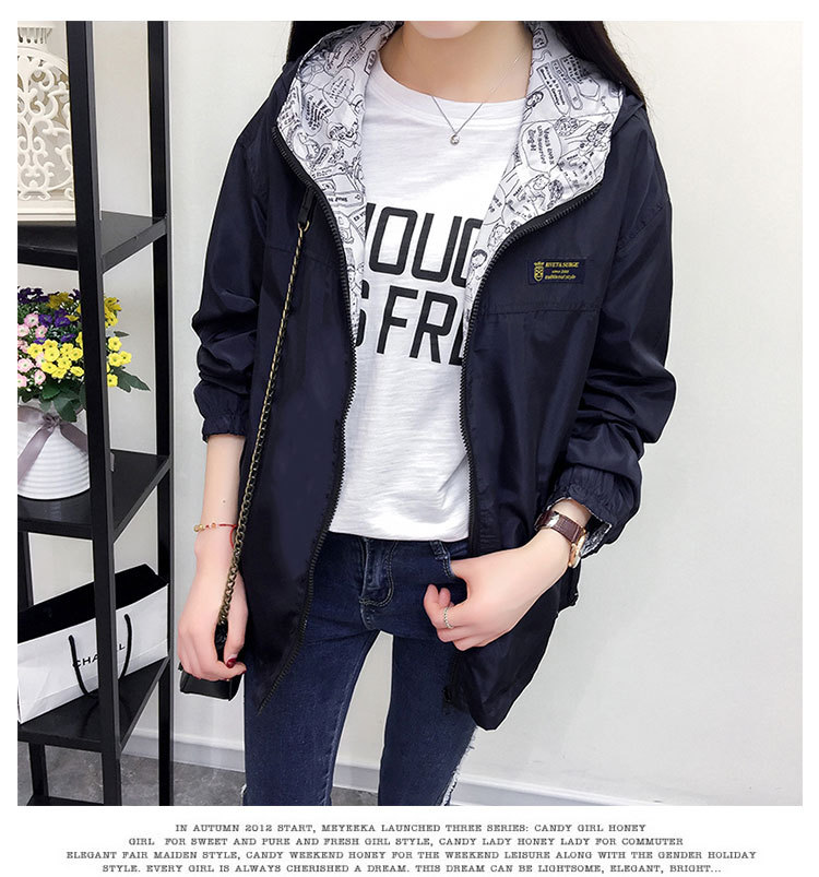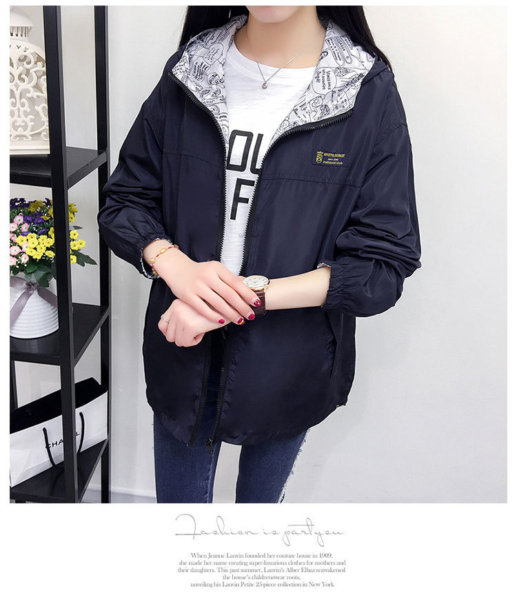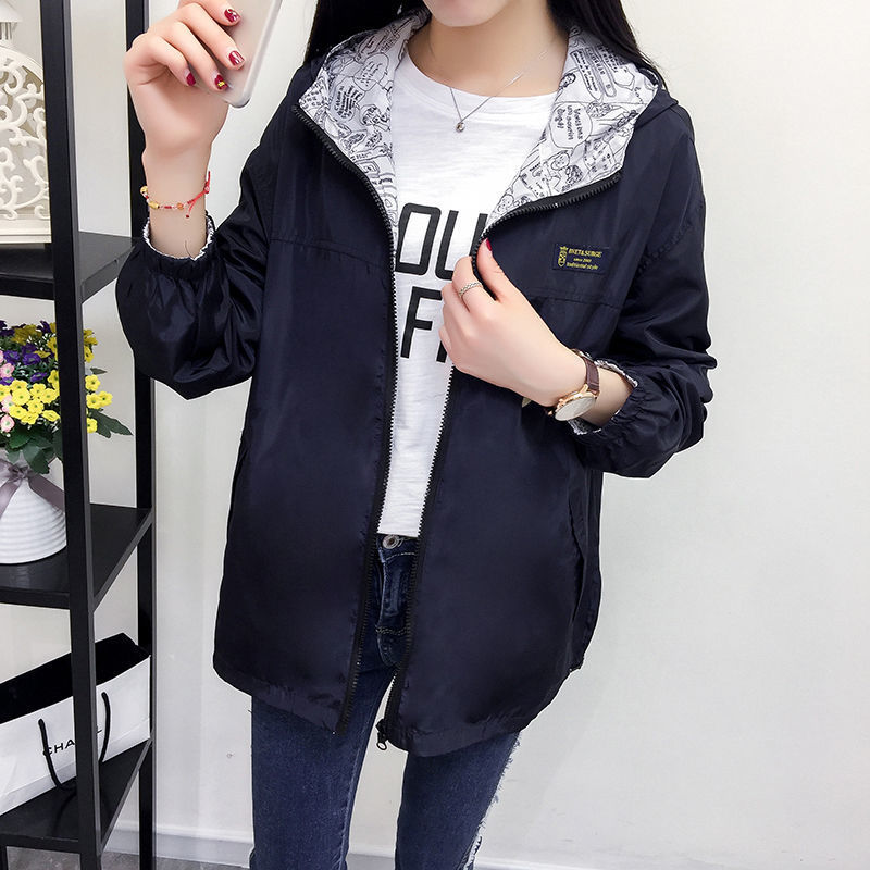 [양면 착용 가능] 여학생용 여성용 짧은 재킷, 봄, 가을 한국식 루즈한 대학 지퍼 셔츠 및 여성용 코트