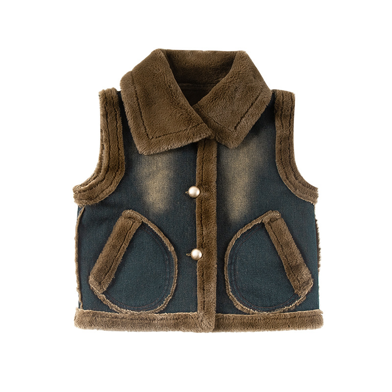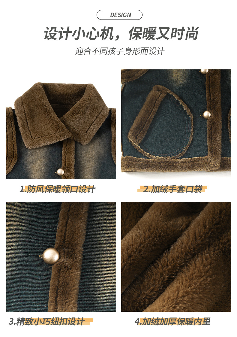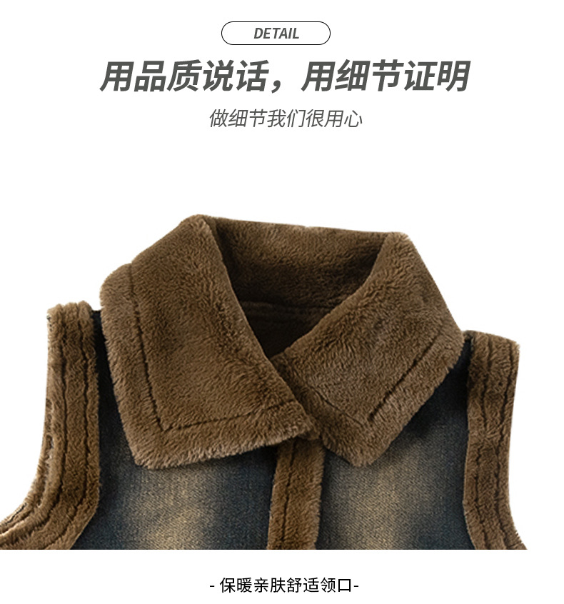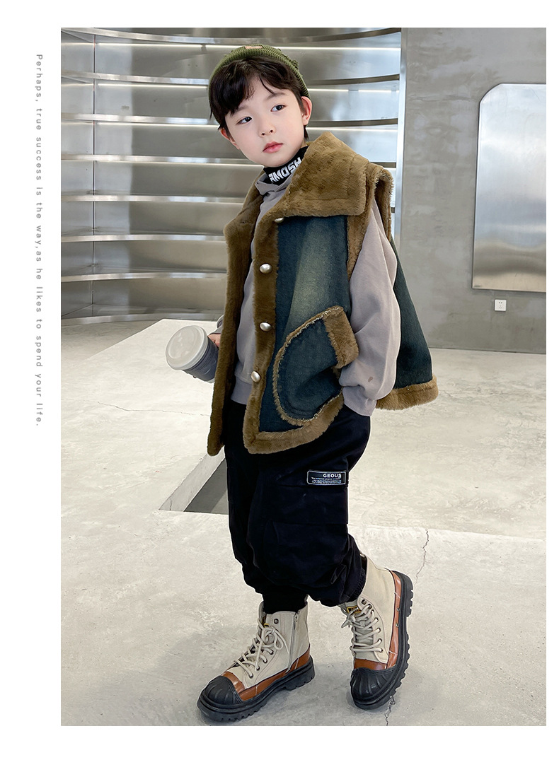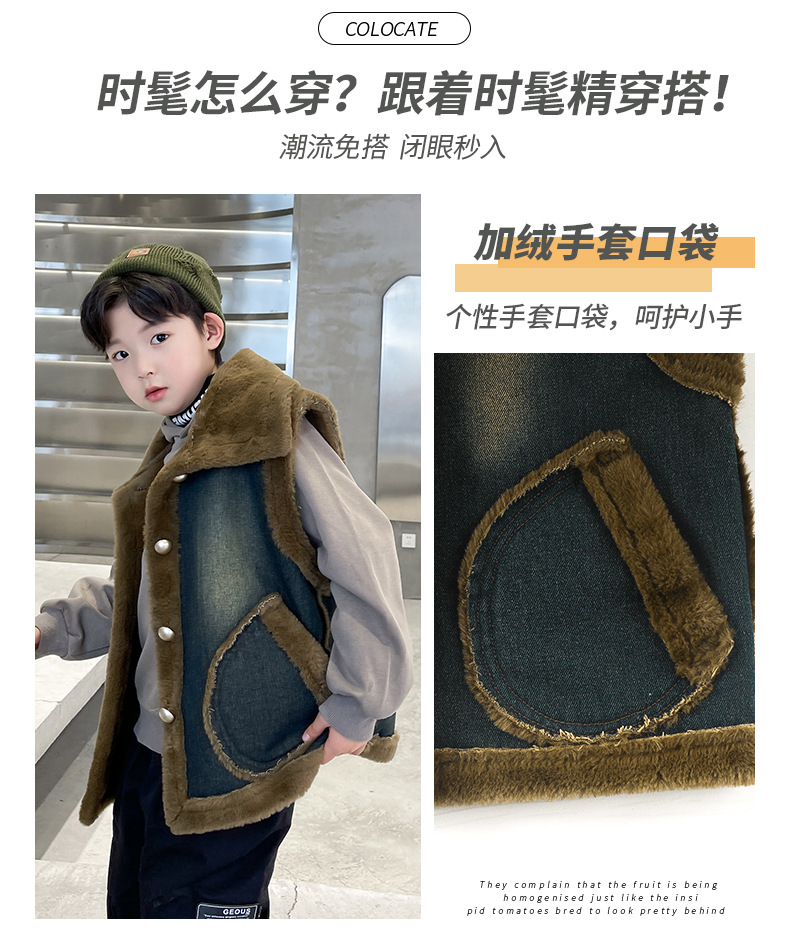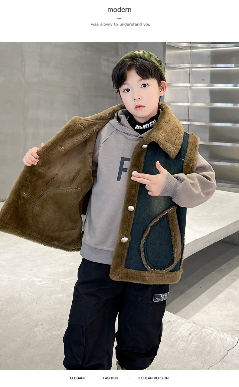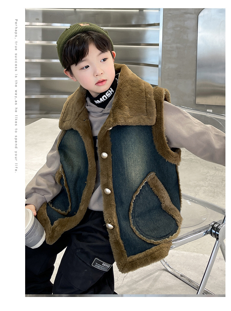 어린이 두꺼운 기모 데님 조끼 코트 겉옷 2023 겨울 소년의 새로운 미디어와 큰 아이들의 따뜻한 조끼 패션스토어 가기