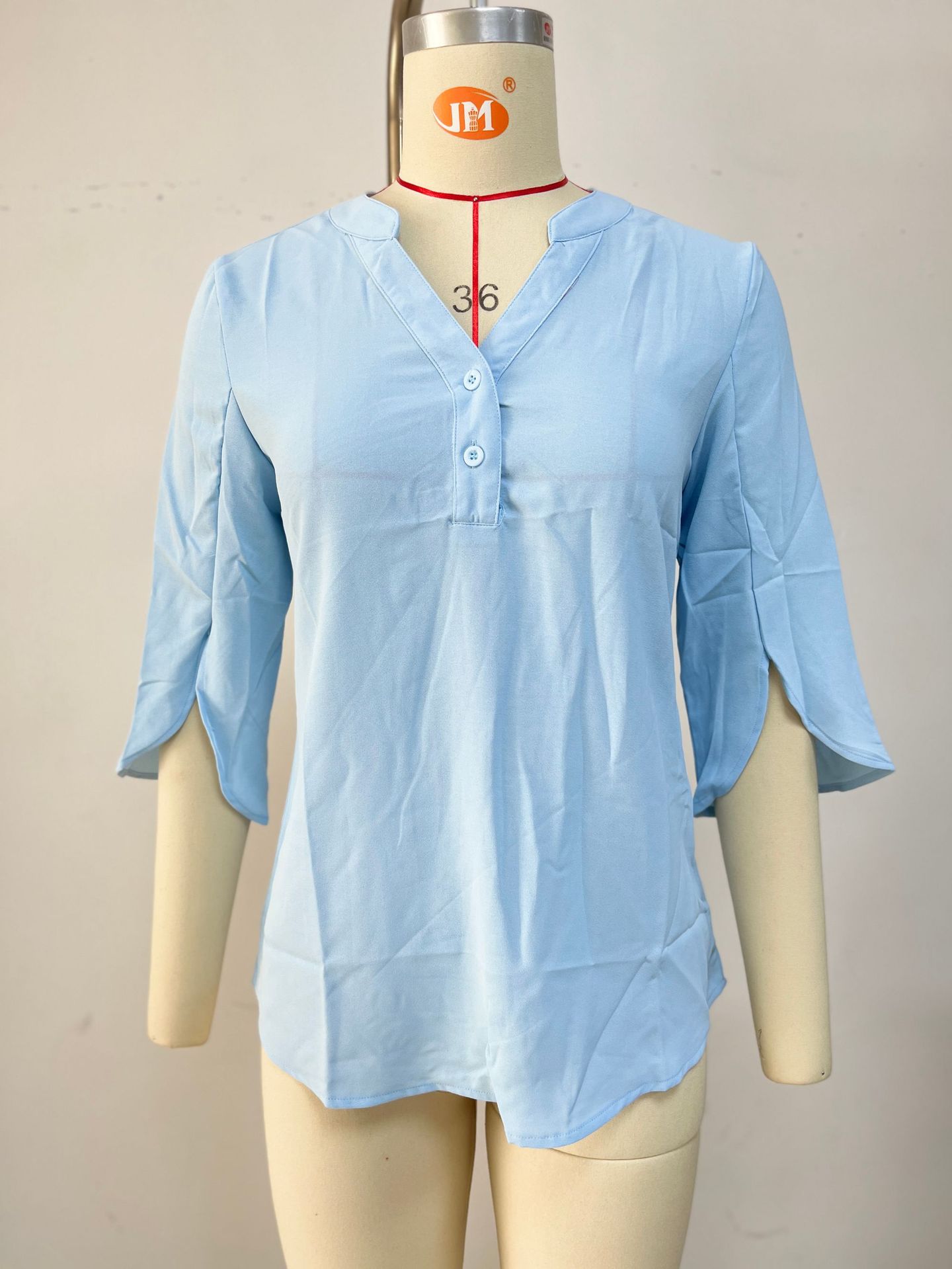 아마존 유럽과 미국의 국경 간 대외 무역 2024 여름 새로운 단색 V 넥 하프 소매 쉬폰 탑 여성용 쉬폰 셔츠스토어 가기