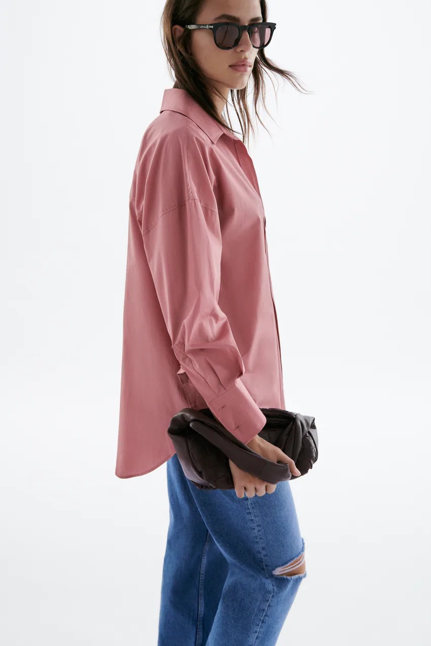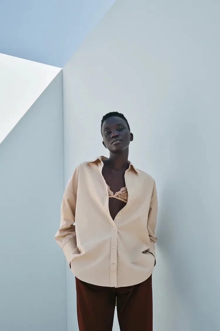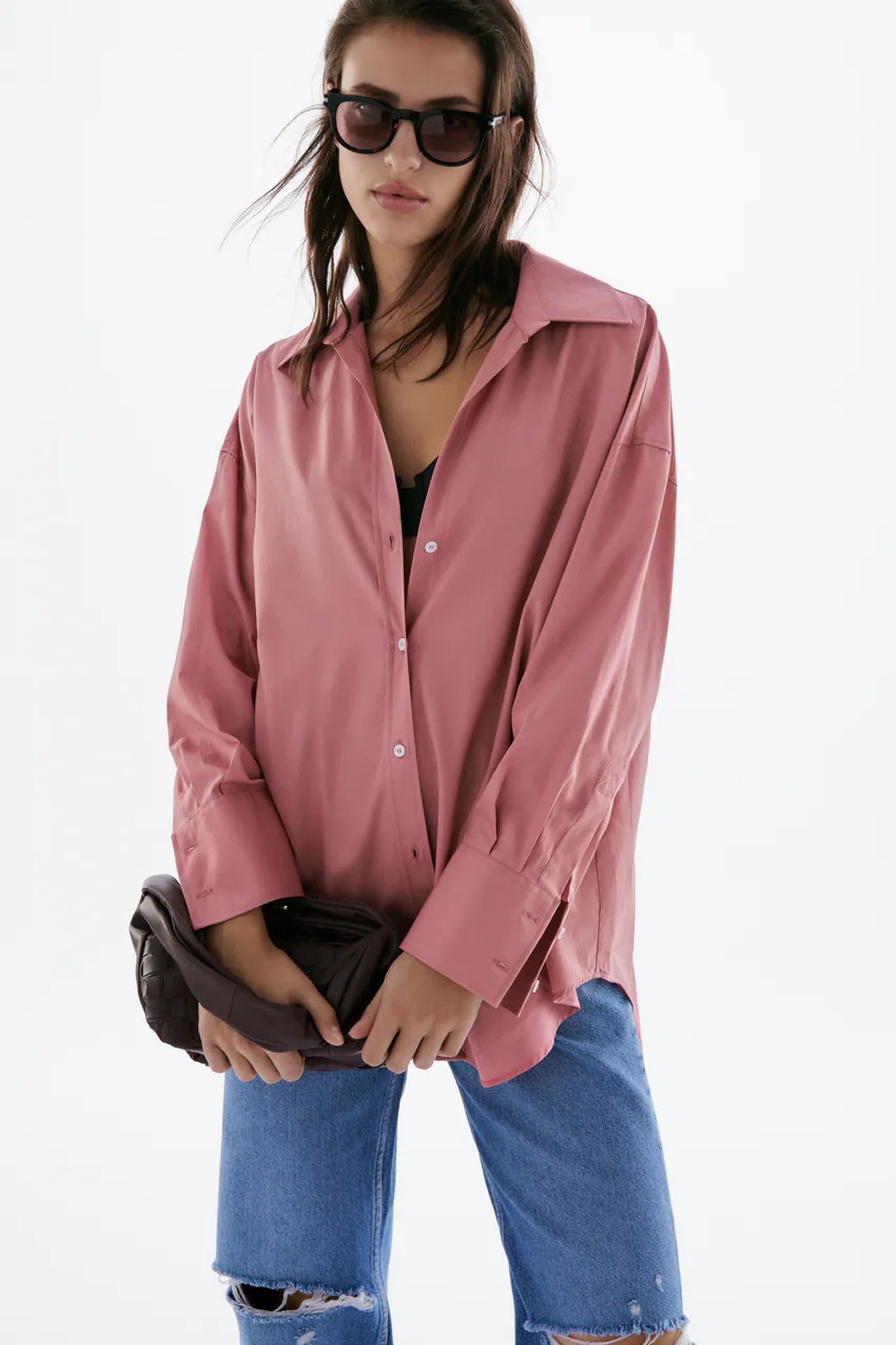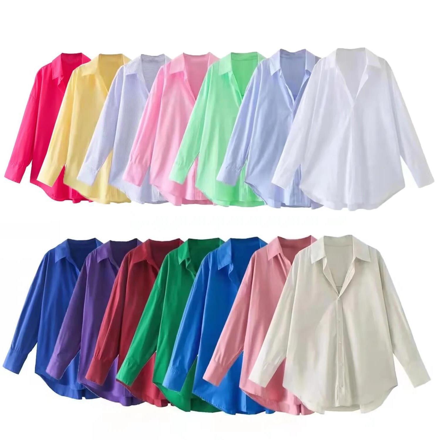 오리지널 PB & ZA2298058 멀티 컬러 베이스 탑 기본 셔츠 느슨한 긴 소매 포플린 셔츠 4387023스토어 가기