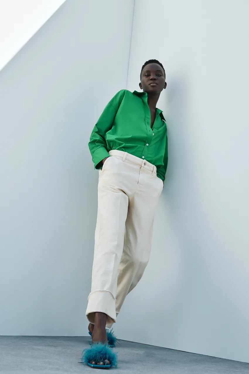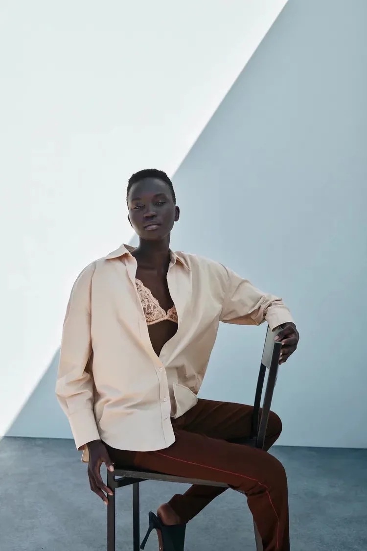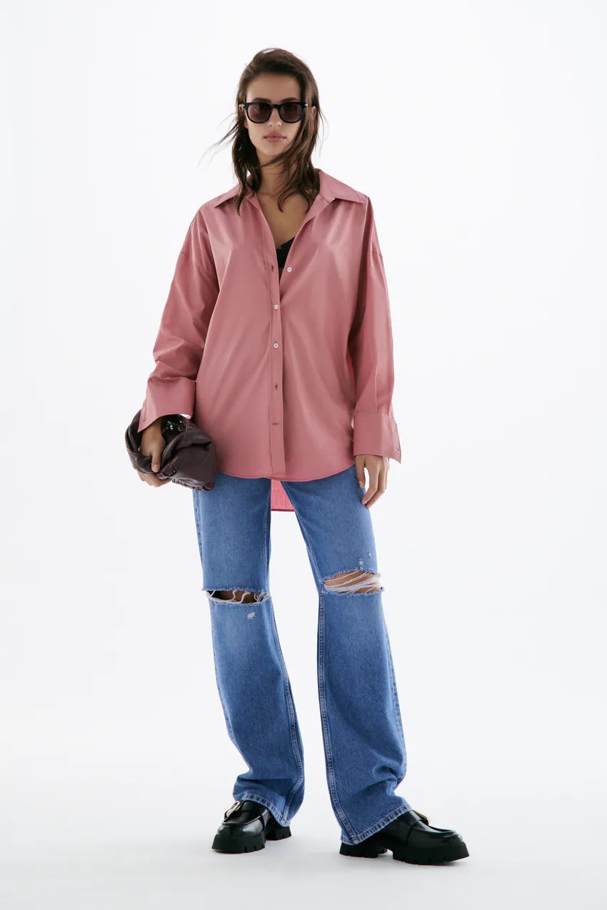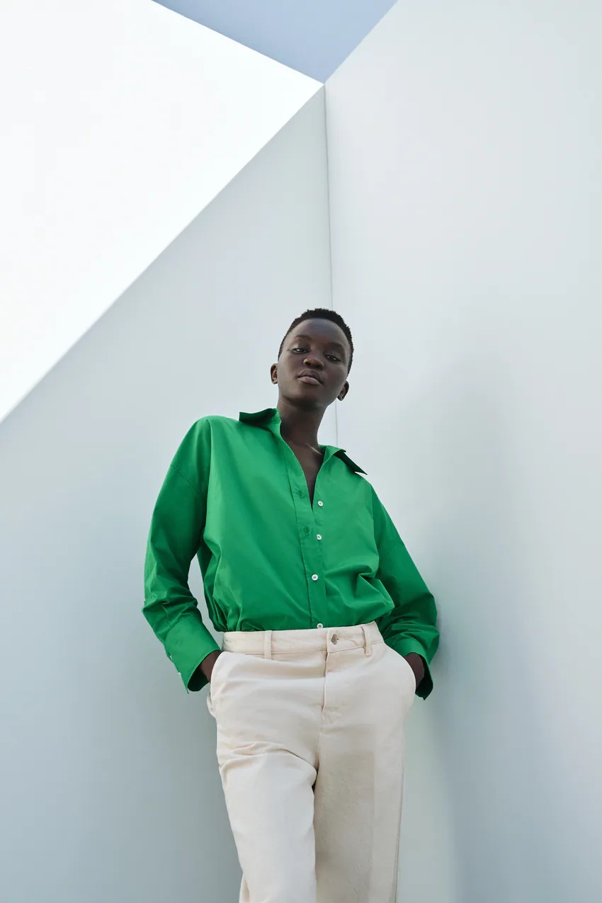 오리지널 PB & ZA2298058 멀티 컬러 베이스 탑 기본 셔츠 느슨한 긴 소매 포플린 셔츠 4387023스토어 가기