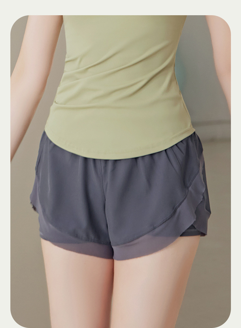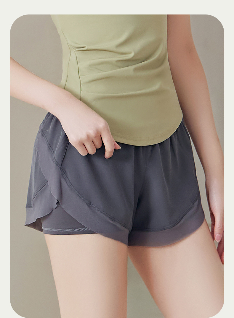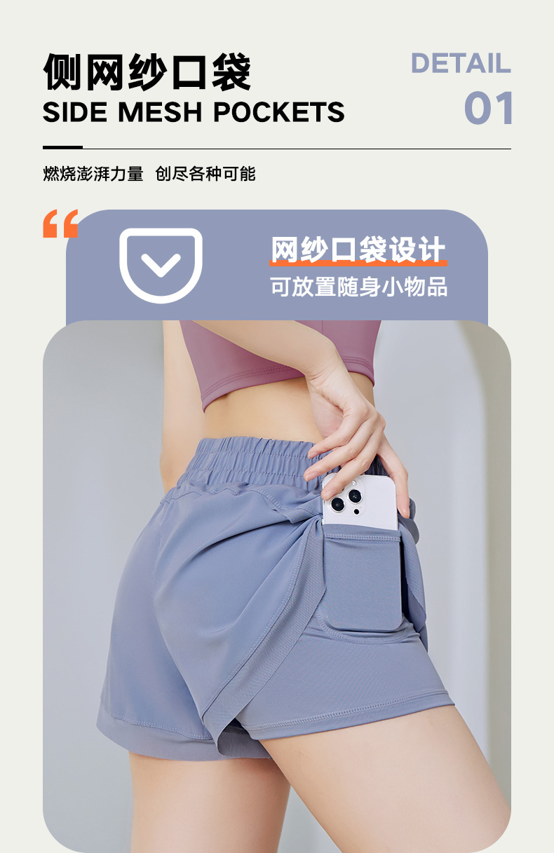 Ju Yi Tang 가공 맞춤형 메쉬 반바지 스포츠 피트니스 반바지 없음 마크 알몸 포켓 요가 반바지 여성스토어 가기