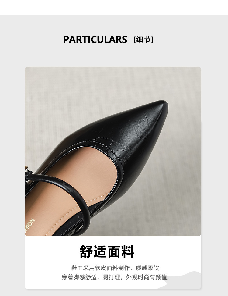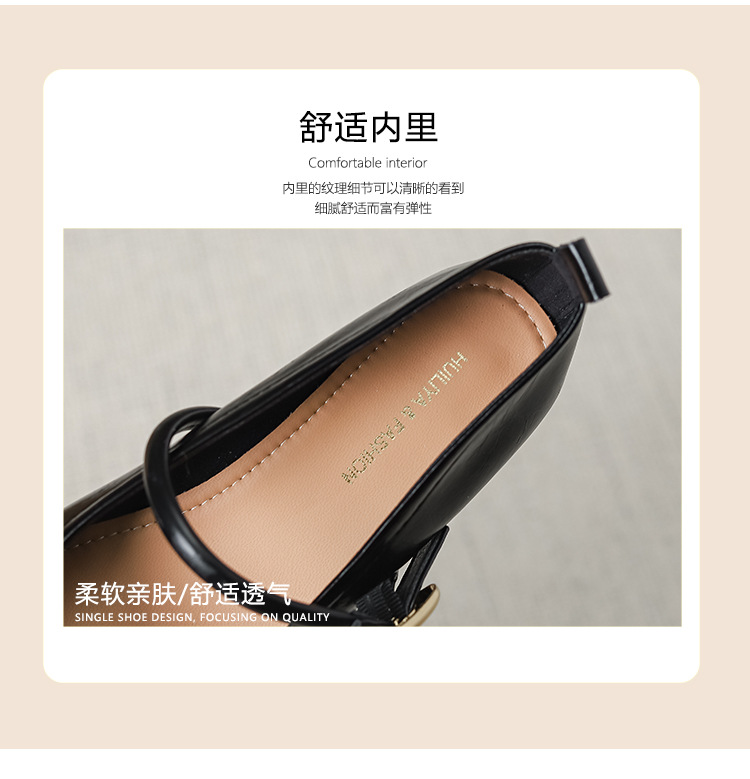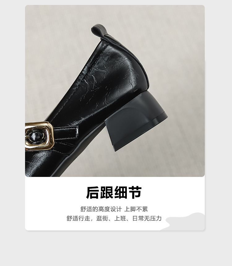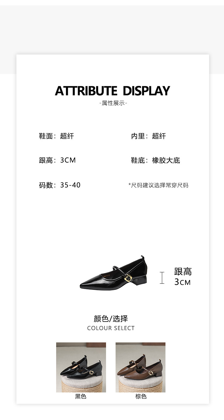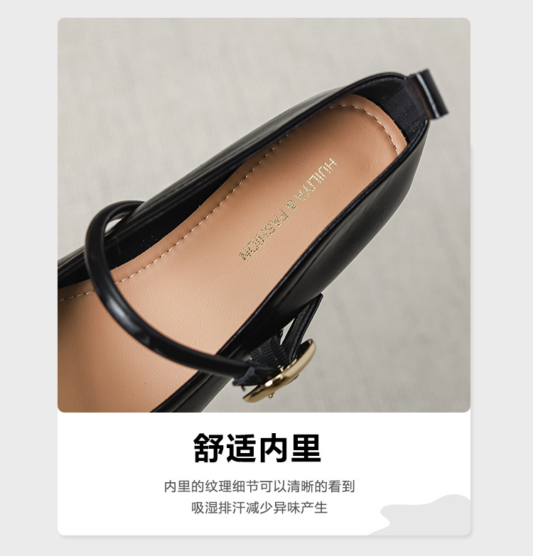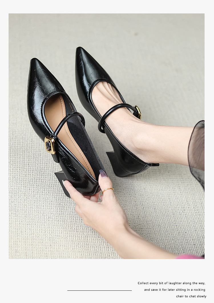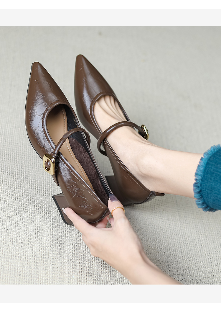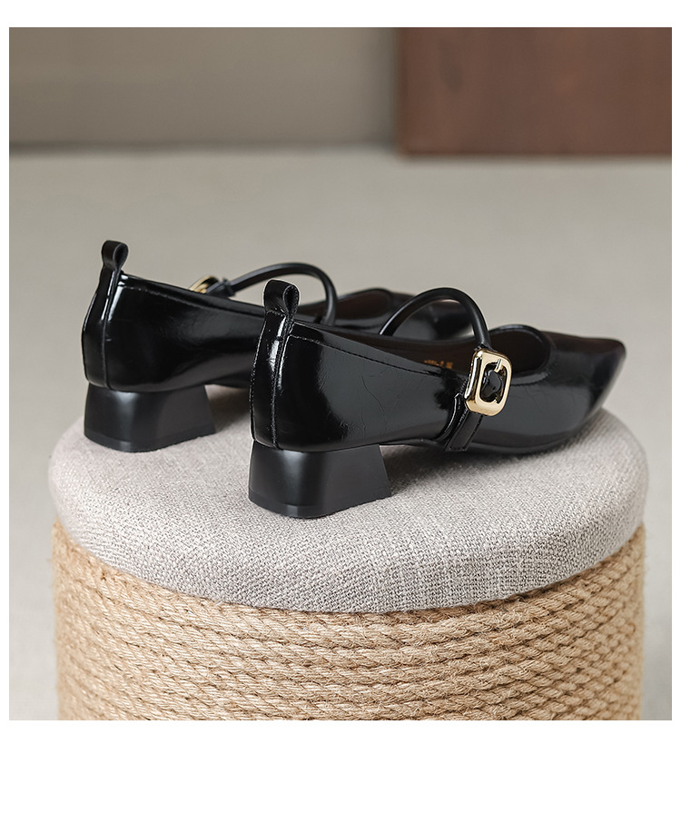 프랑스 뾰족한 발가락 신발 여성 2024 새로운 낮은 뒤꿈치 얕은 입 버클 청키 힐 메리 제인 작은 가죽 신발 Y303-2스토어 가기