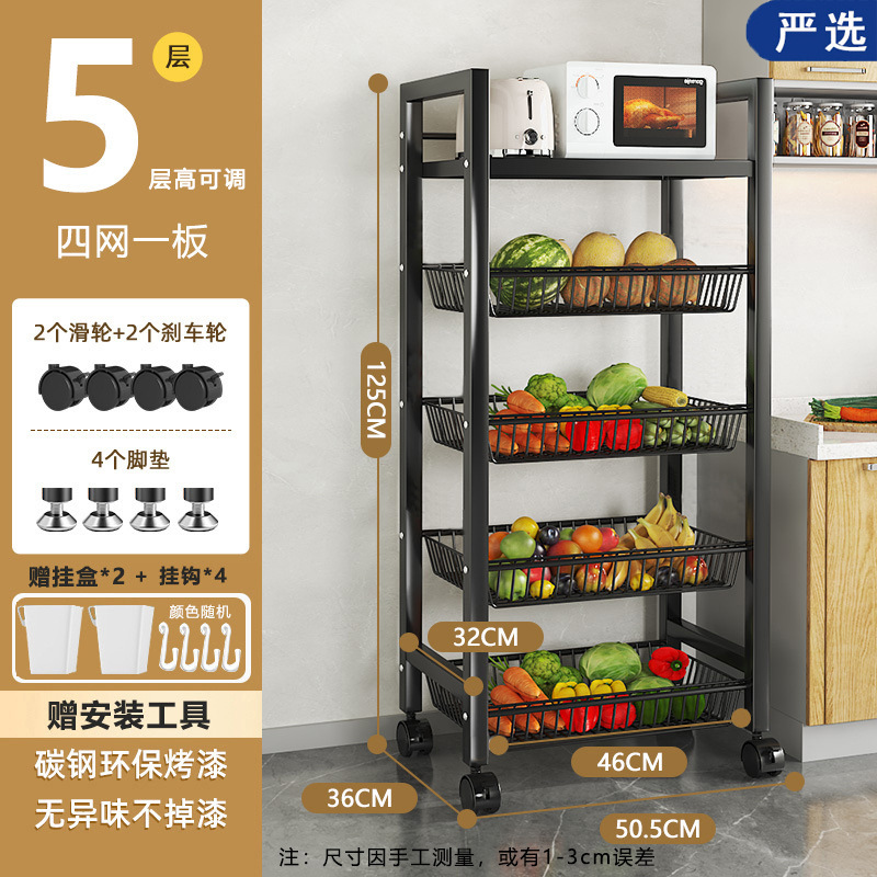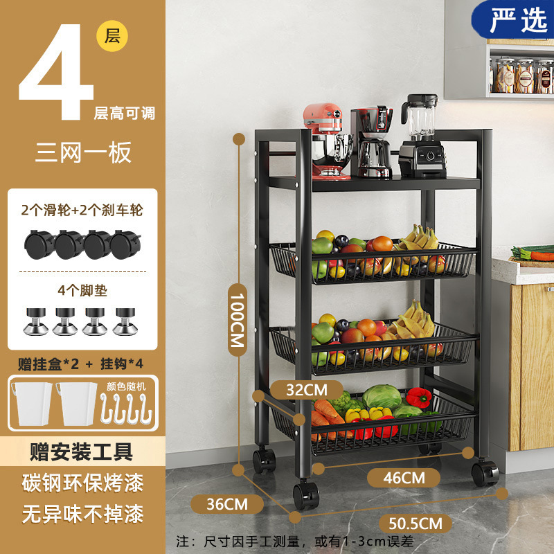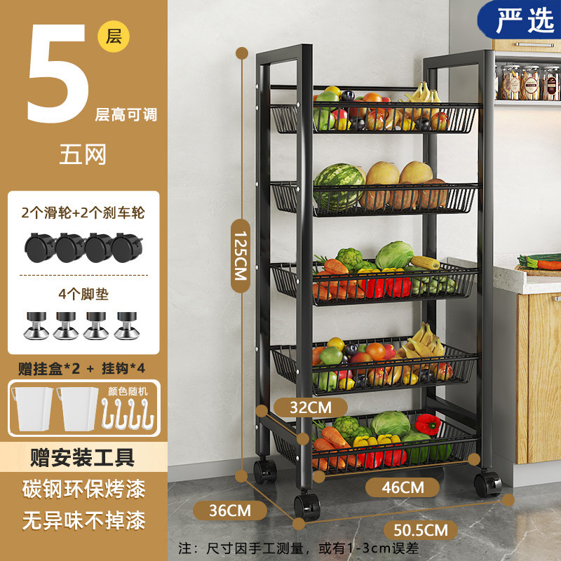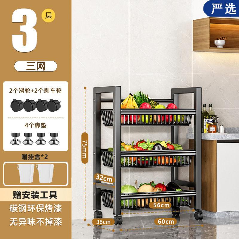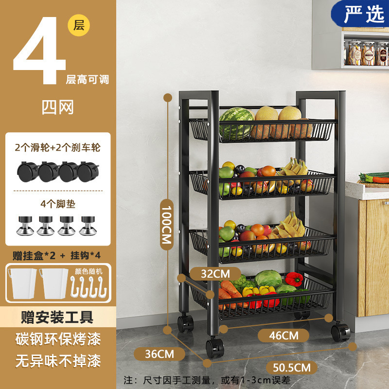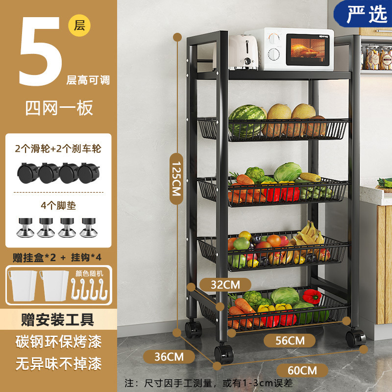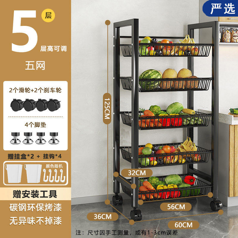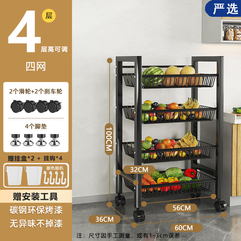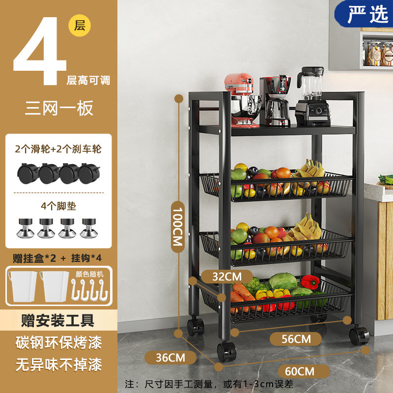 모바일 주방 야채 바구니 저장 선반 가정용 간단한 선반 바닥 형 다층 도매 저장 다기능 선반