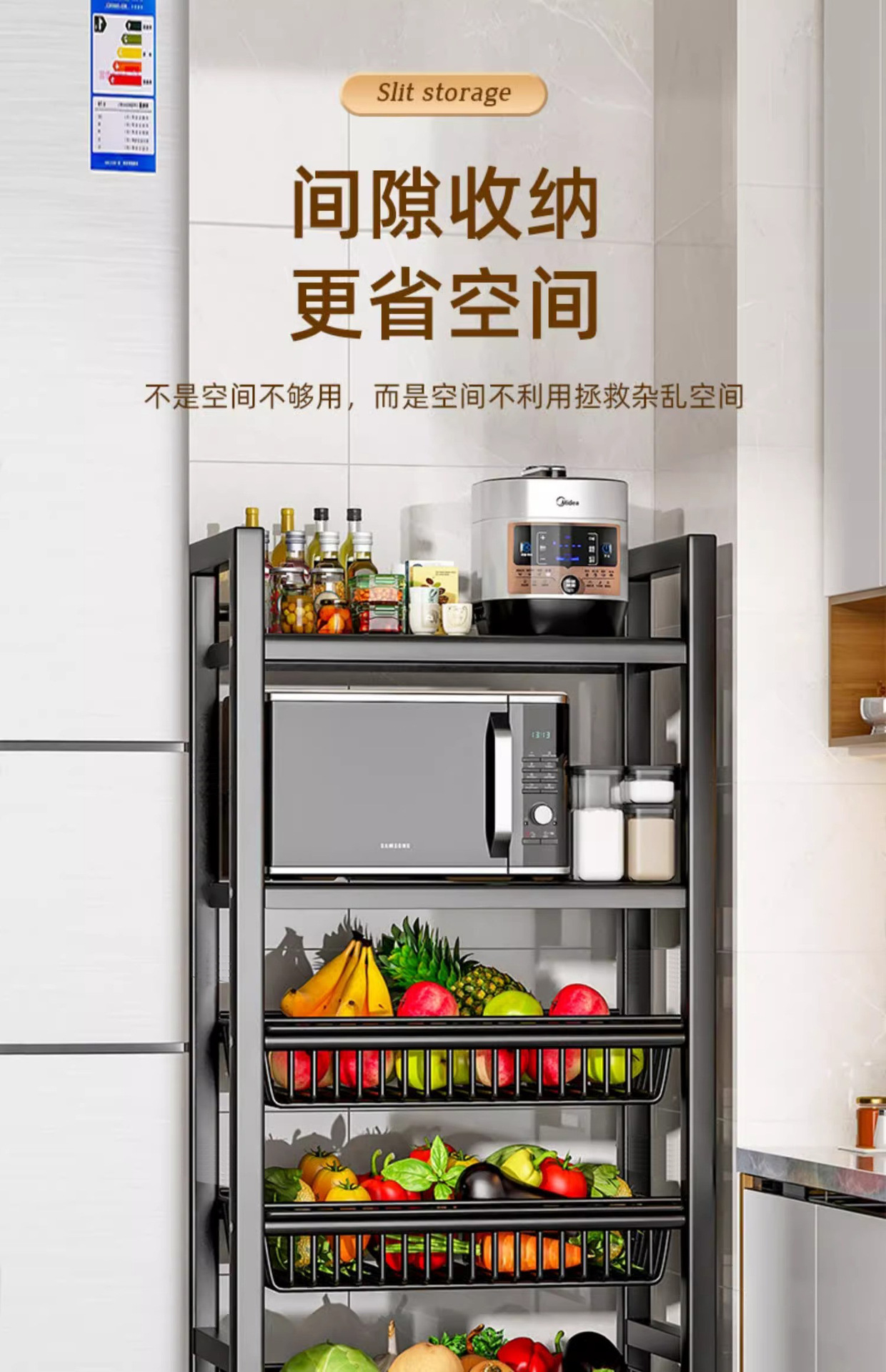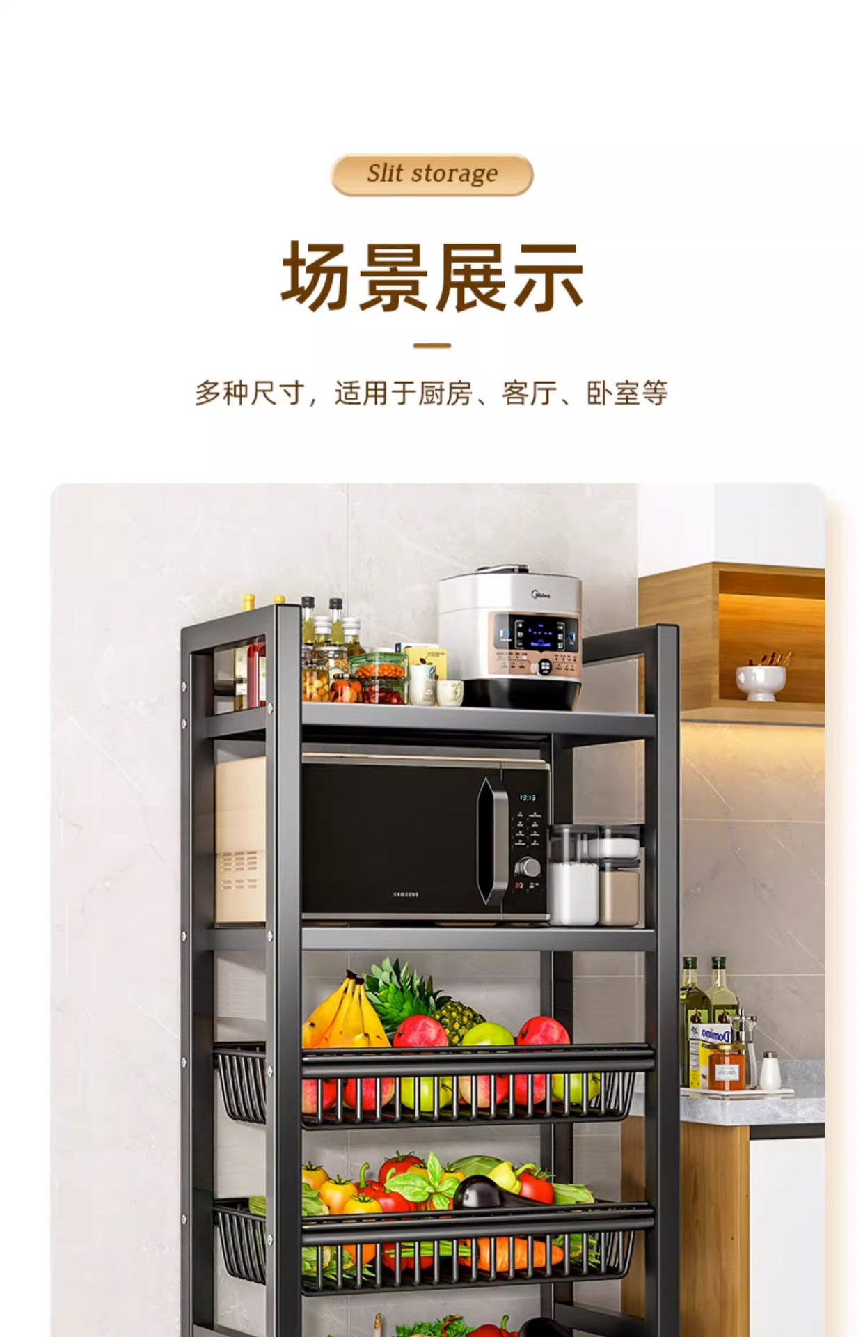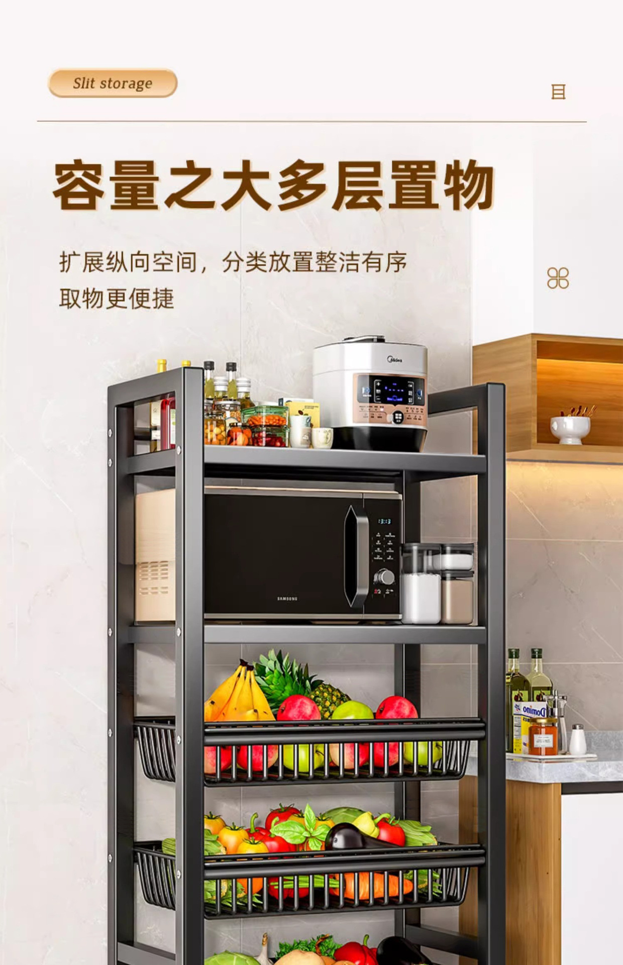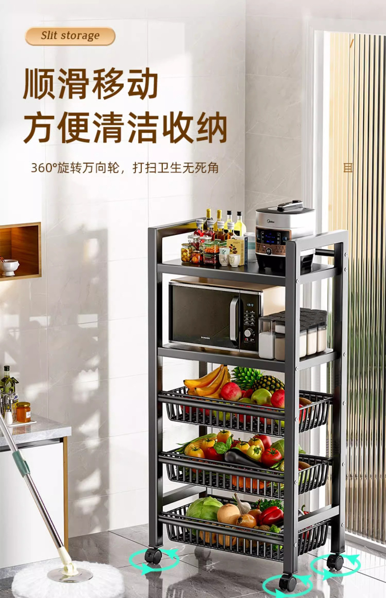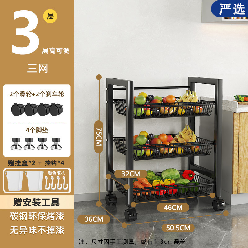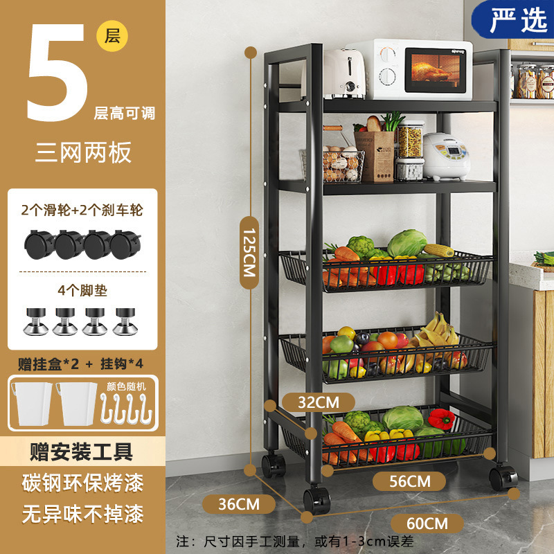모바일 주방 야채 바구니 저장 선반 가정용 간단한 선반 바닥 형 다층 도매 저장 다기능 선반