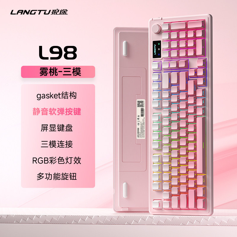狼途L98无线2.4g蓝牙三模键盘 女生高颜值机械手感拼色RGB背光键盘