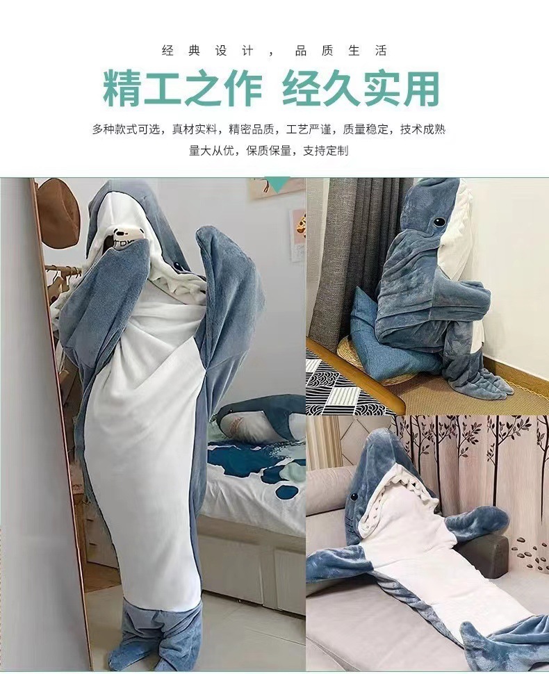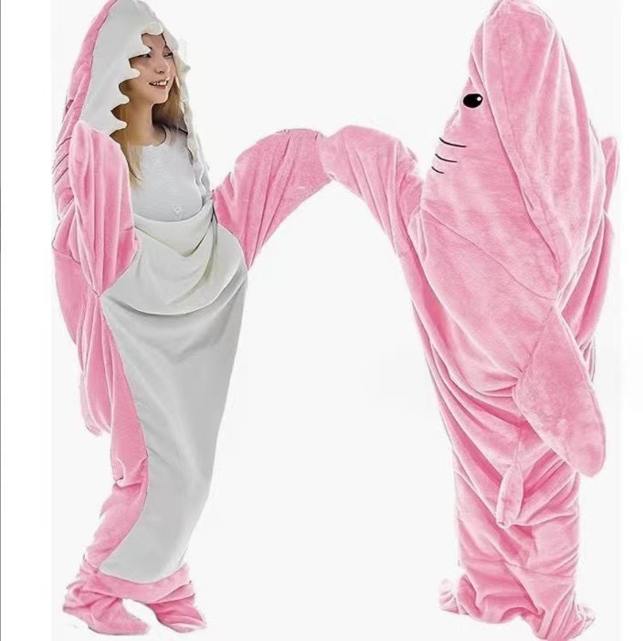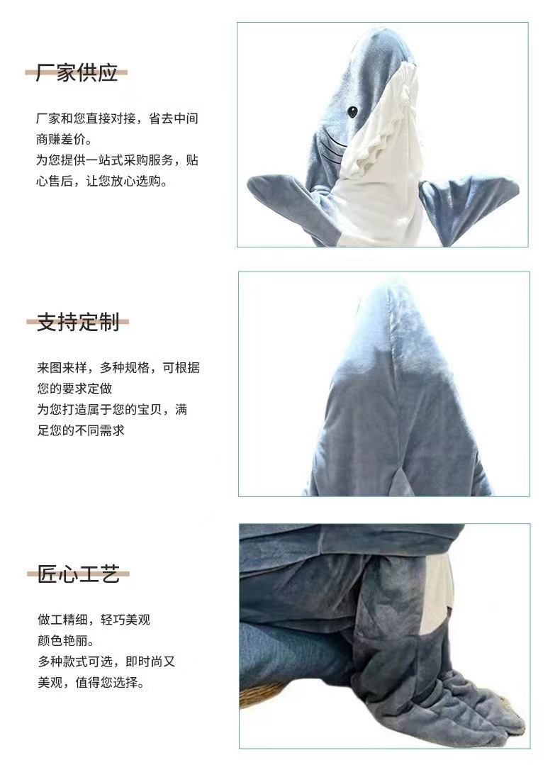 2023 겨울 성인 만화 원피스 상어 침낭 플란넬 담요 상어 커플 집 원피스 잠옷