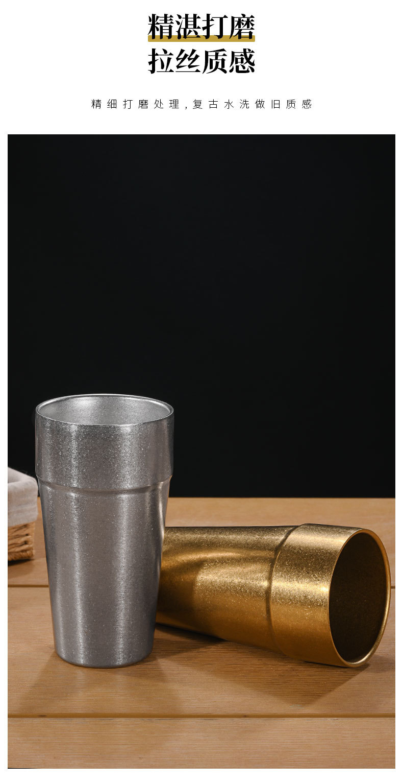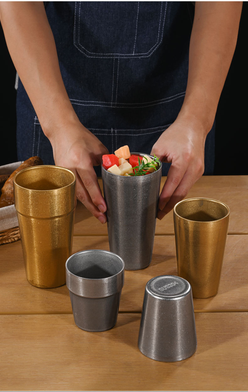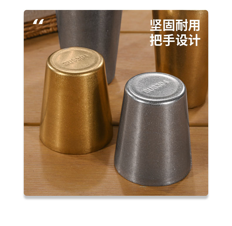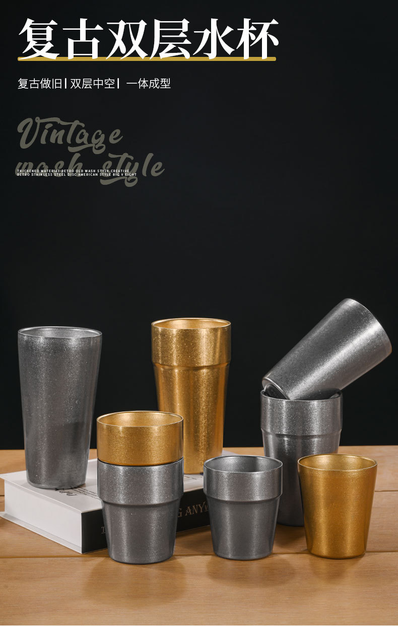 레트로 레트로 304 스테인레스 스틸 컵 더블 레이어 커피 컵 상업 안티-scald 티 컵 캠핑 피크닉 편리한 컵