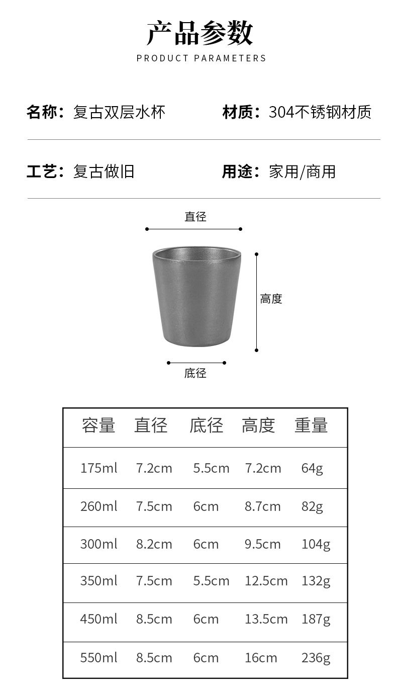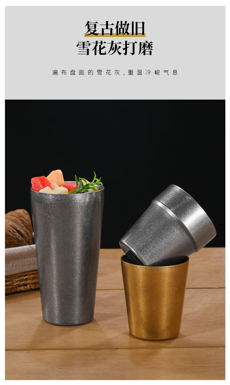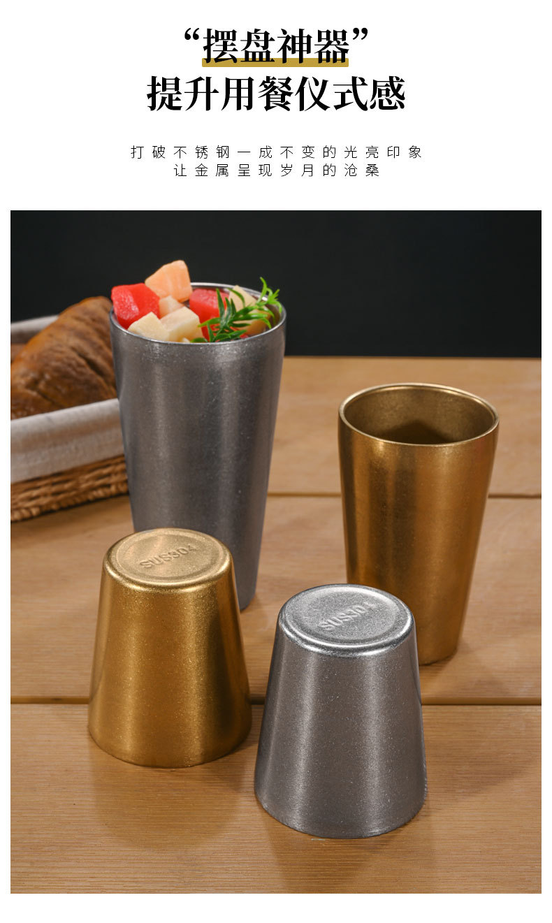 레트로 레트로 304 스테인레스 스틸 컵 더블 레이어 커피 컵 상업 안티-scald 티 컵 캠핑 피크닉 편리한 컵