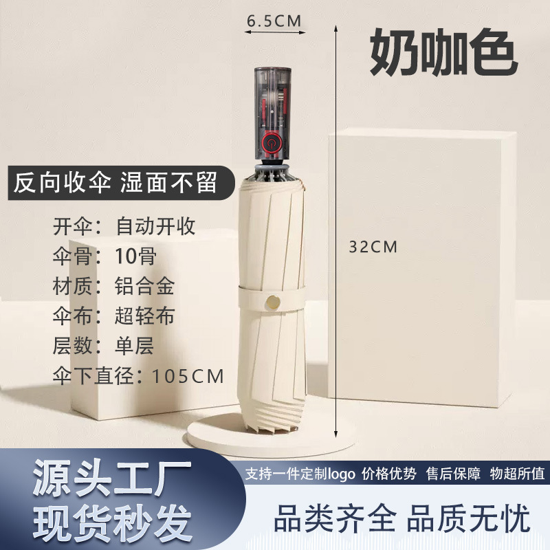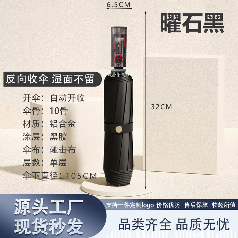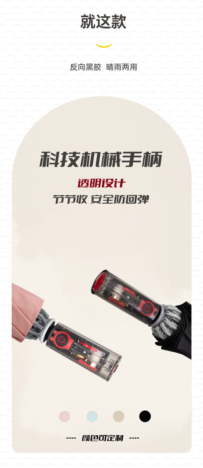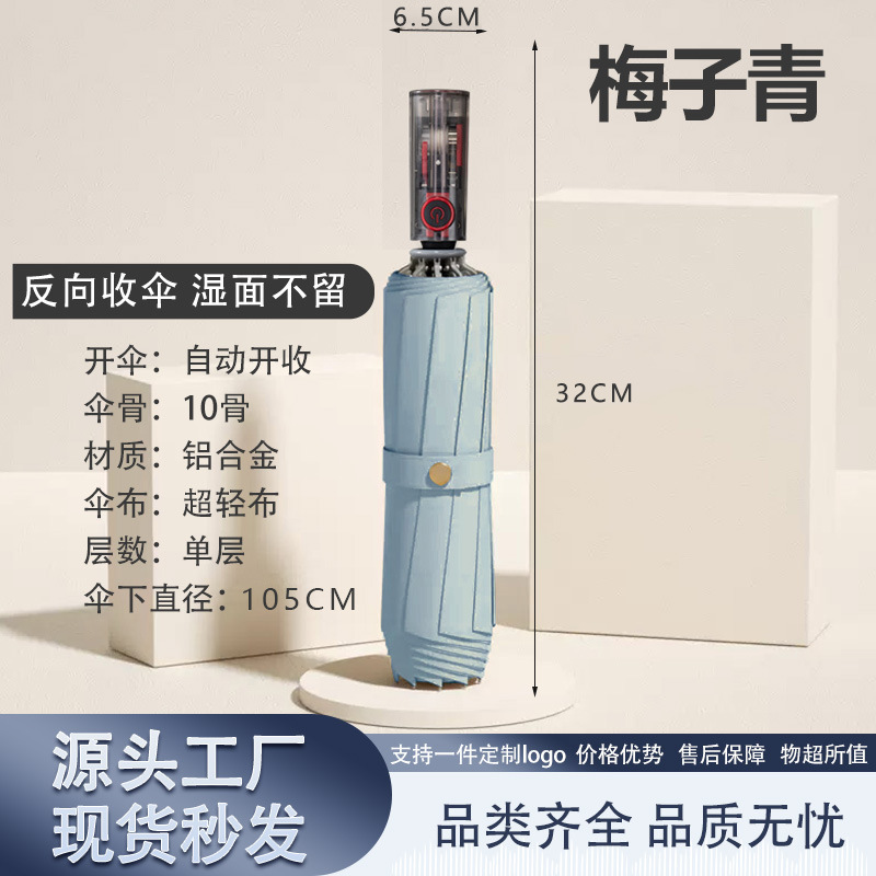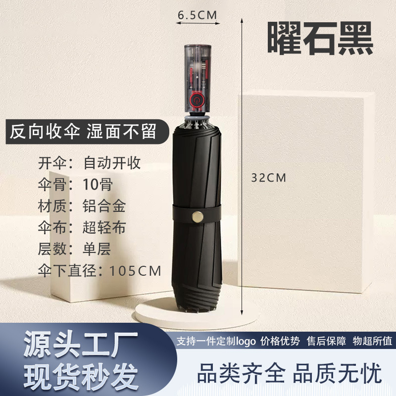 접이식 역방향 기계식 우산, 완전 자동 투명 손잡이, 남녀공용, 햇빛 차단 및 방수, 양용 광고 우산스토어 가기