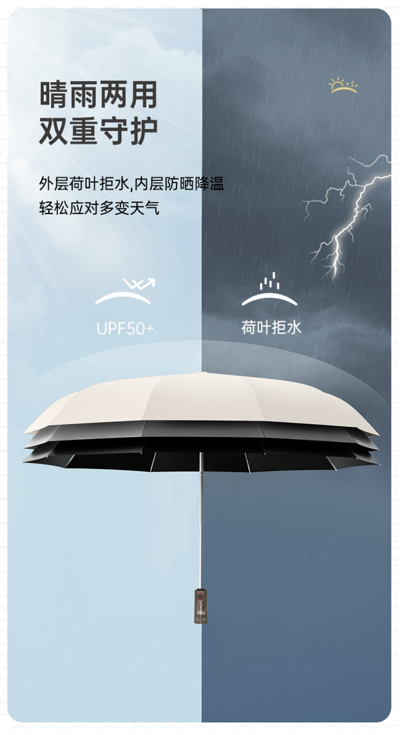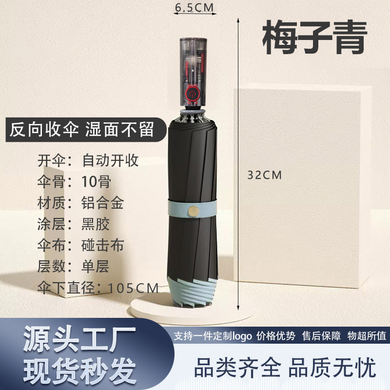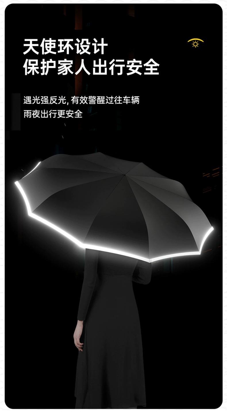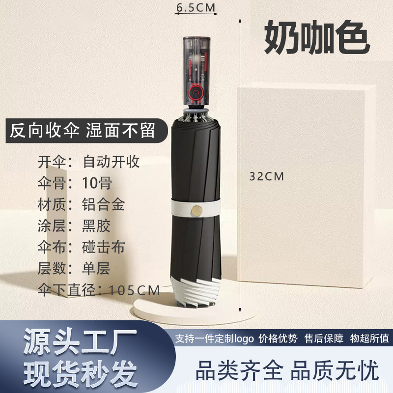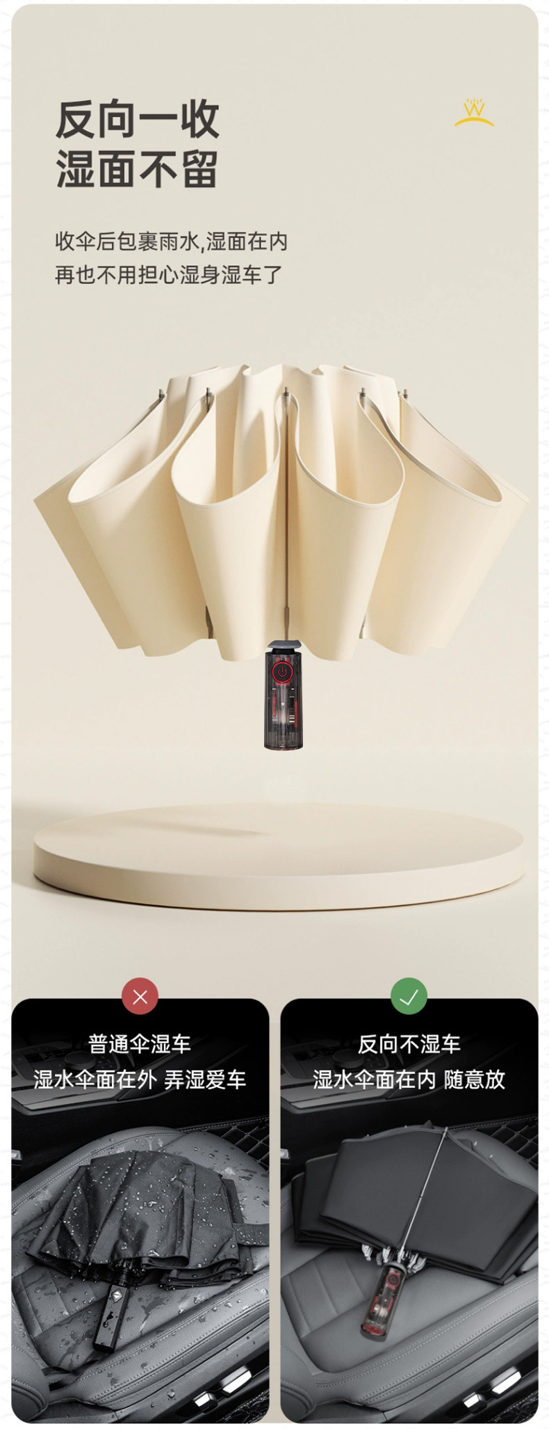 접이식 역방향 기계식 우산, 완전 자동 투명 손잡이, 남녀공용, 햇빛 차단 및 방수, 양용 광고 우산스토어 가기