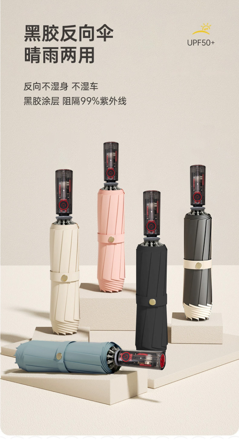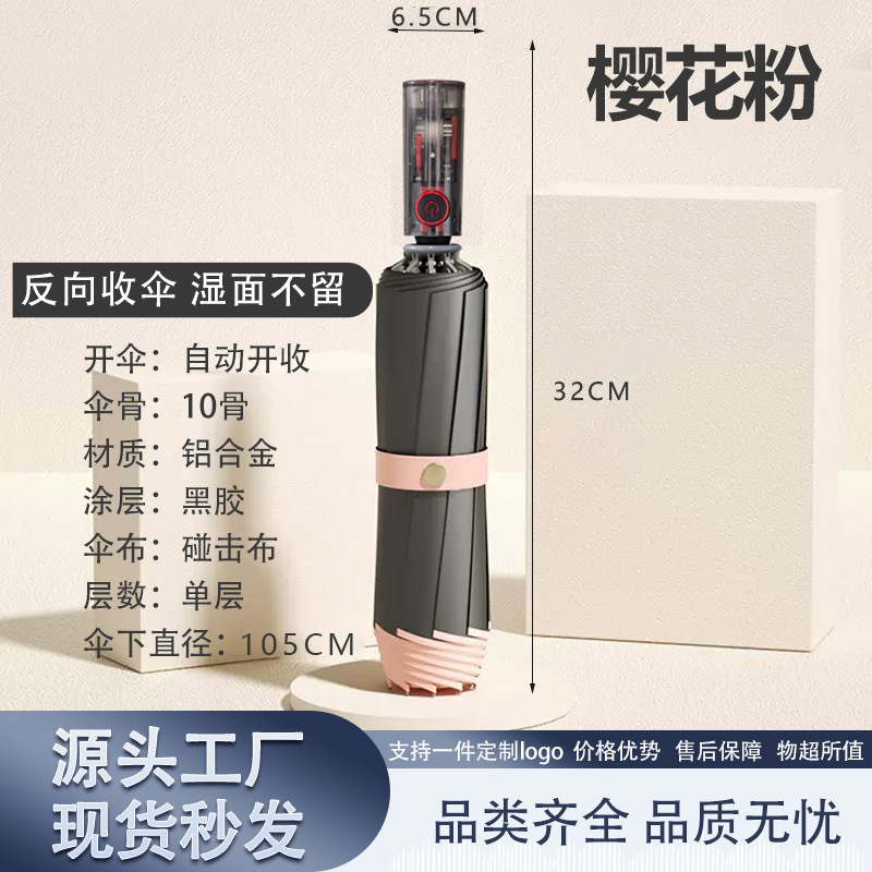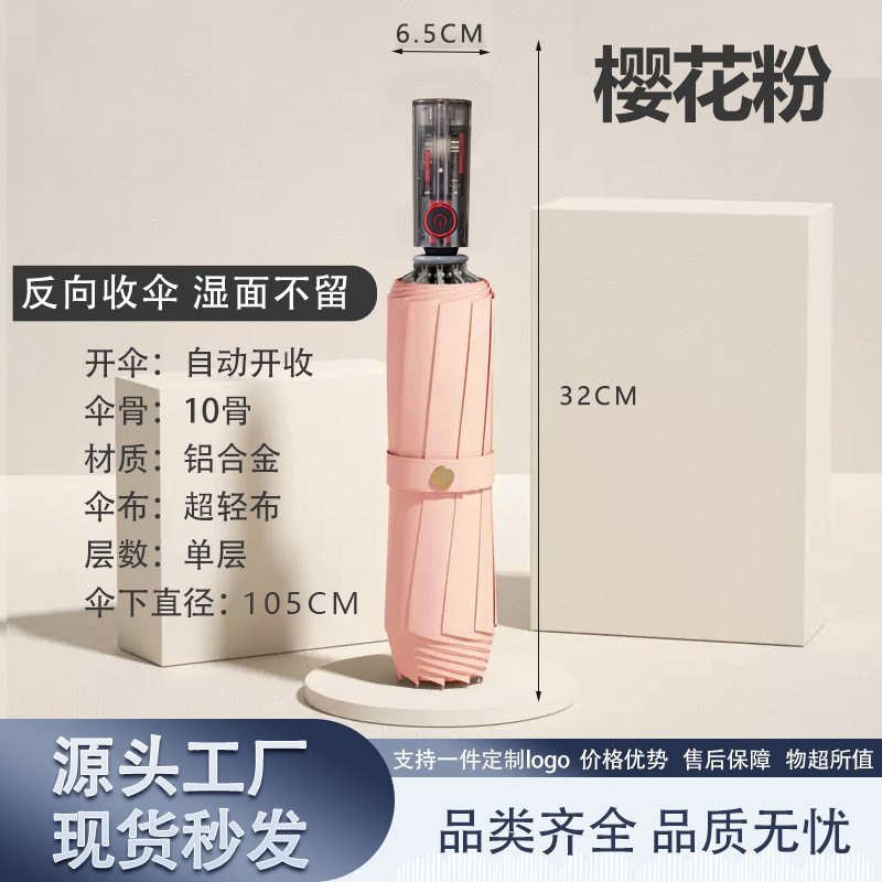 접이식 역방향 기계식 우산, 완전 자동 투명 손잡이, 남녀공용, 햇빛 차단 및 방수, 양용 광고 우산