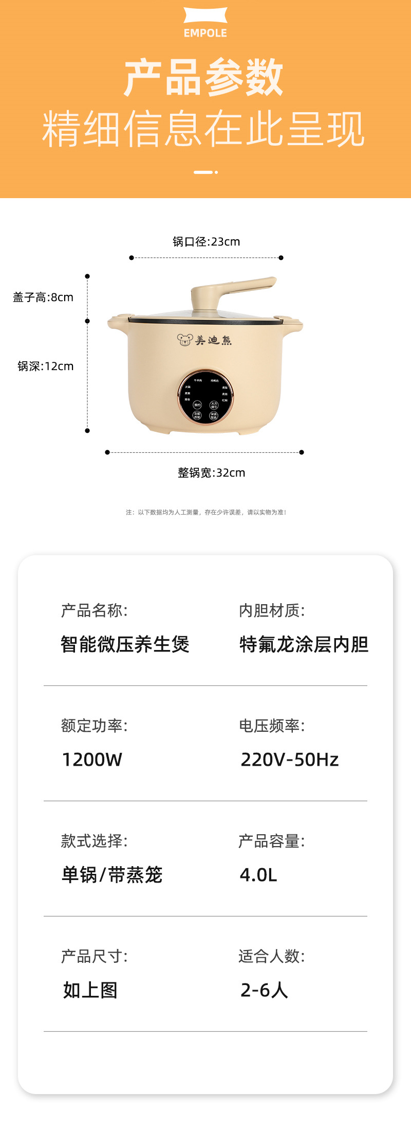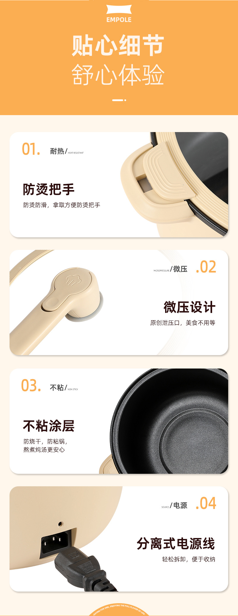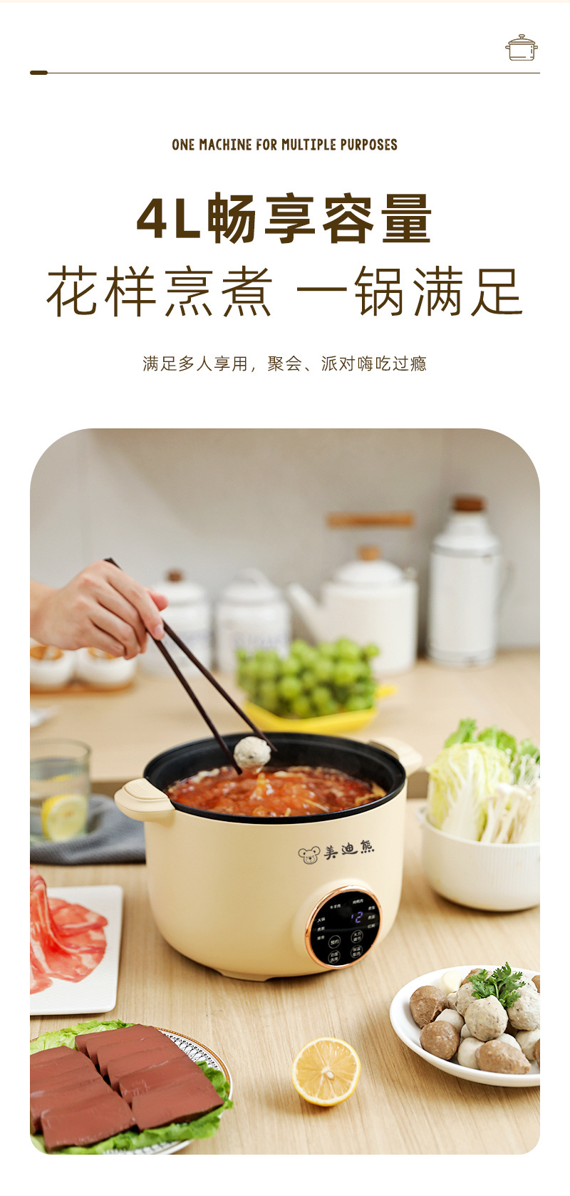 전기 냄비 가정용 전기 조리기 다기능 논스틱 전기 냄비 4리터 미국 표준 110V 해외 인기 상품