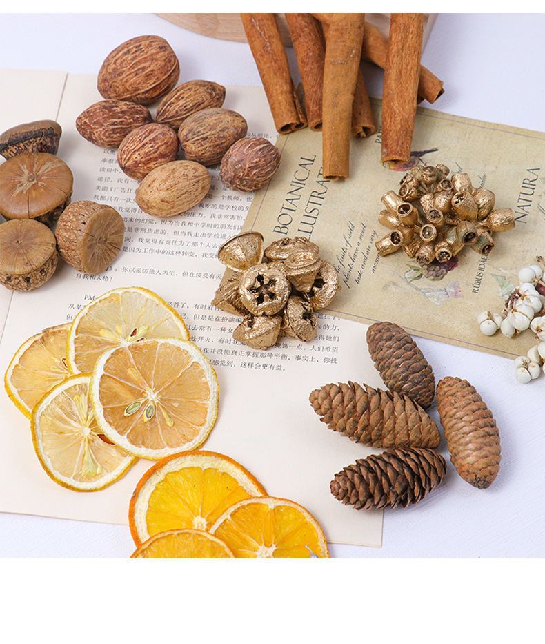 천연 과일 도토리 계피 수제 장식 장식 DIY 말린 꽃 말린 과일 빈티지 사진 소품