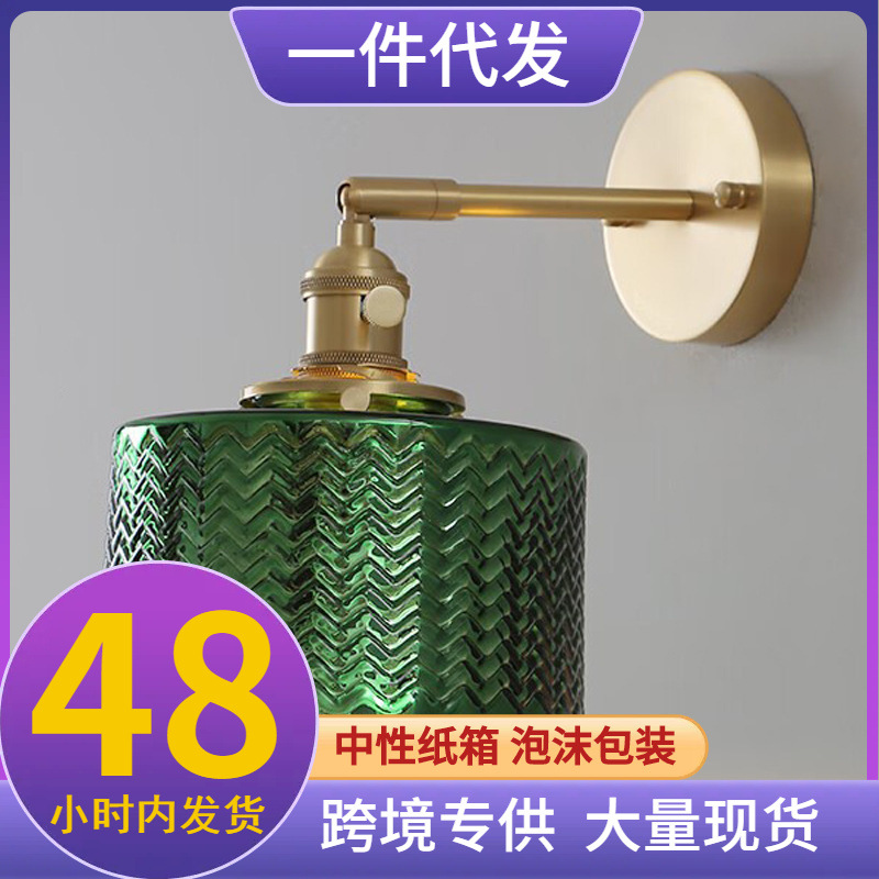 복도 라이트 레트로 오래 된 상하이 침실 침실 라이트 간단한 복도 거실 배경 벽 황동 유리 벽 램프