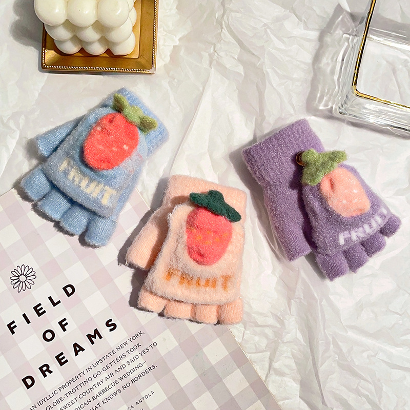 공장 통관 겨울 소년 소녀 플립 3-8 세 반 손가락 장갑 귀여운 학생 쓰기 따뜻한 장갑 도매스토어 가기