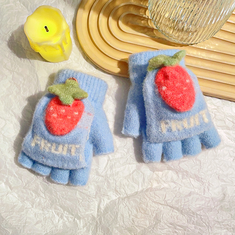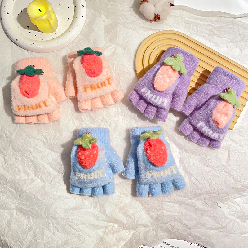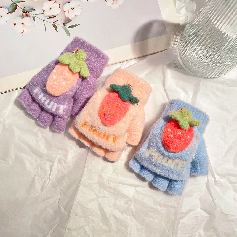 공장 통관 겨울 소년 소녀 플립 3-8 세 반 손가락 장갑 귀여운 학생 쓰기 따뜻한 장갑 도매