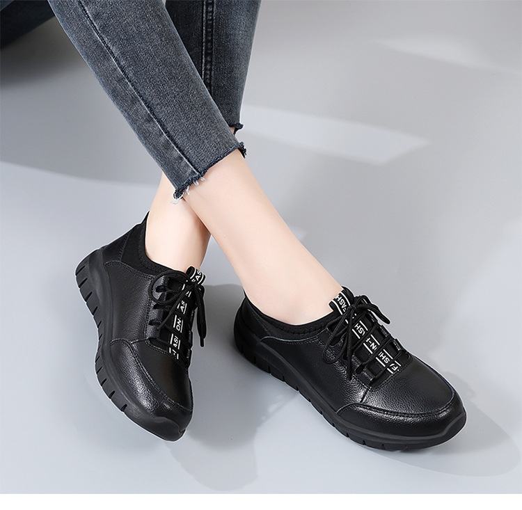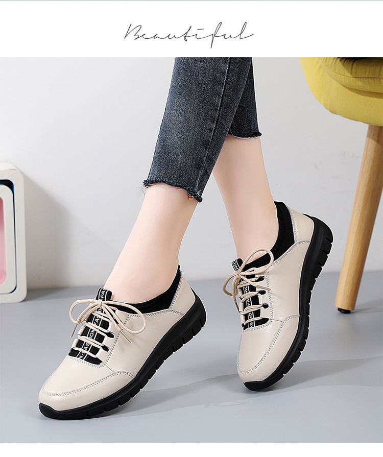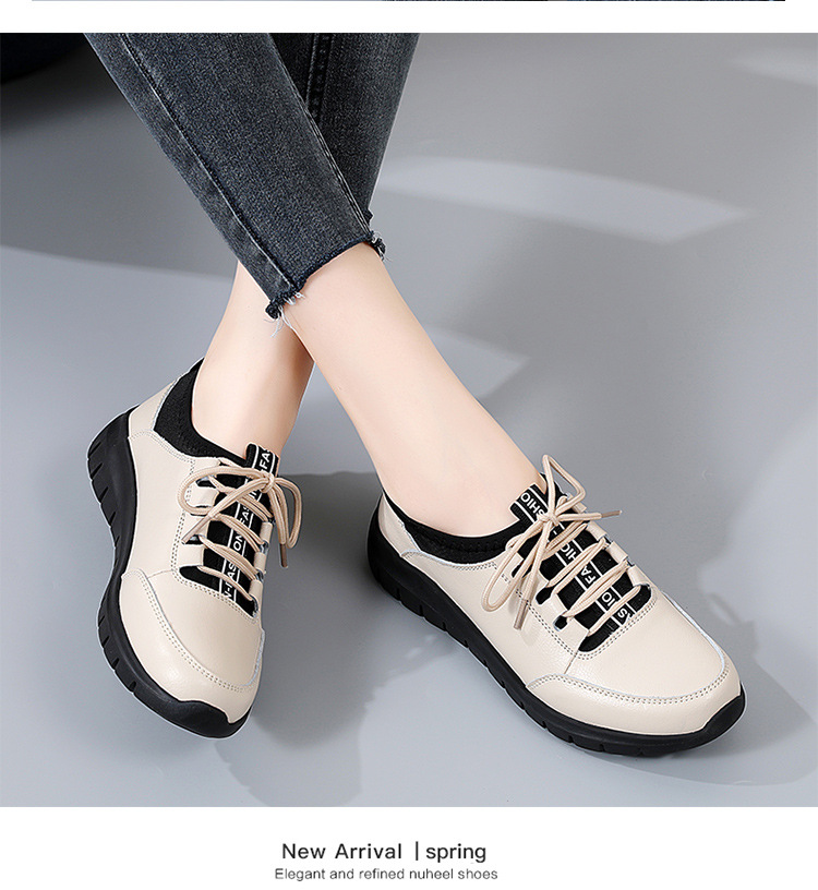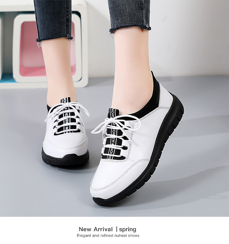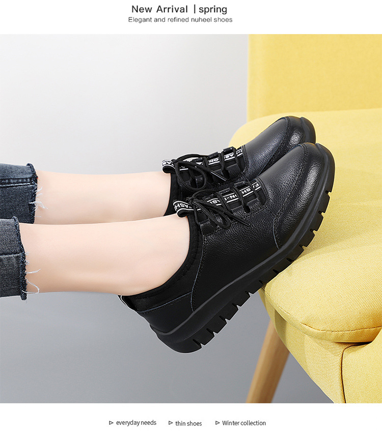 정품 가죽 여성 신발 2024 봄 새로운 작은 가죽 신발 한국 부드러운 바닥 올 매치 캐주얼 토드 신발 힘줄 바닥 엄마 신발스토어 가기