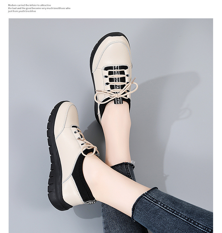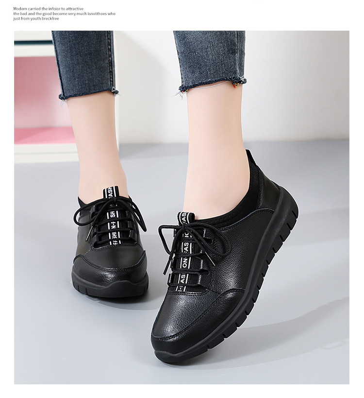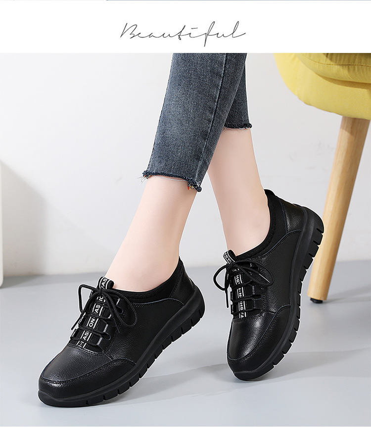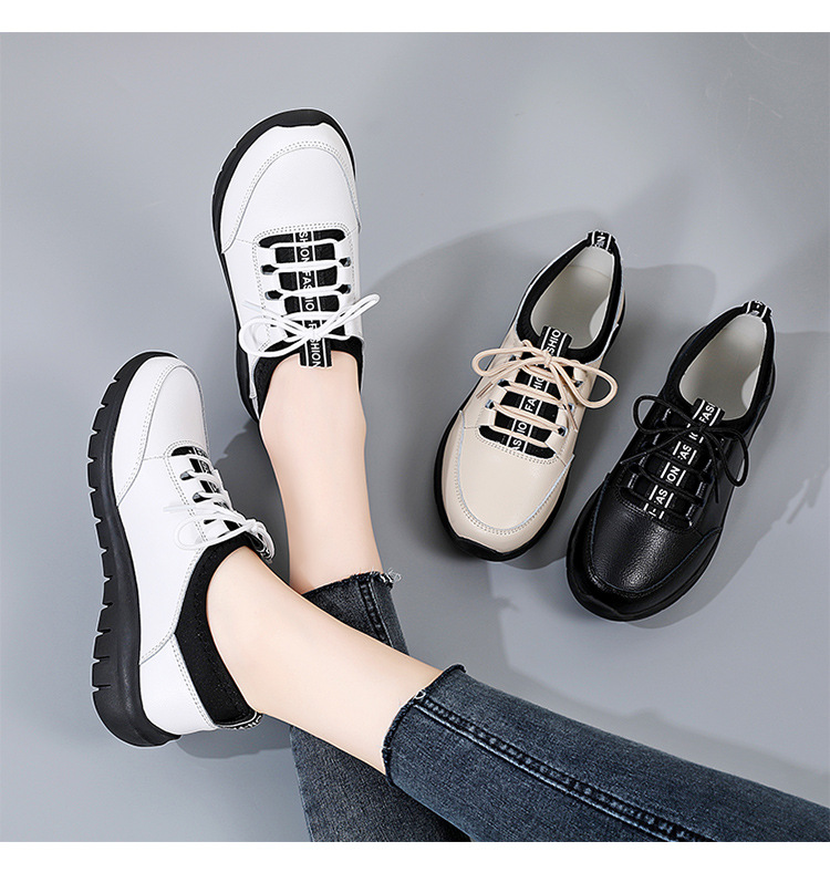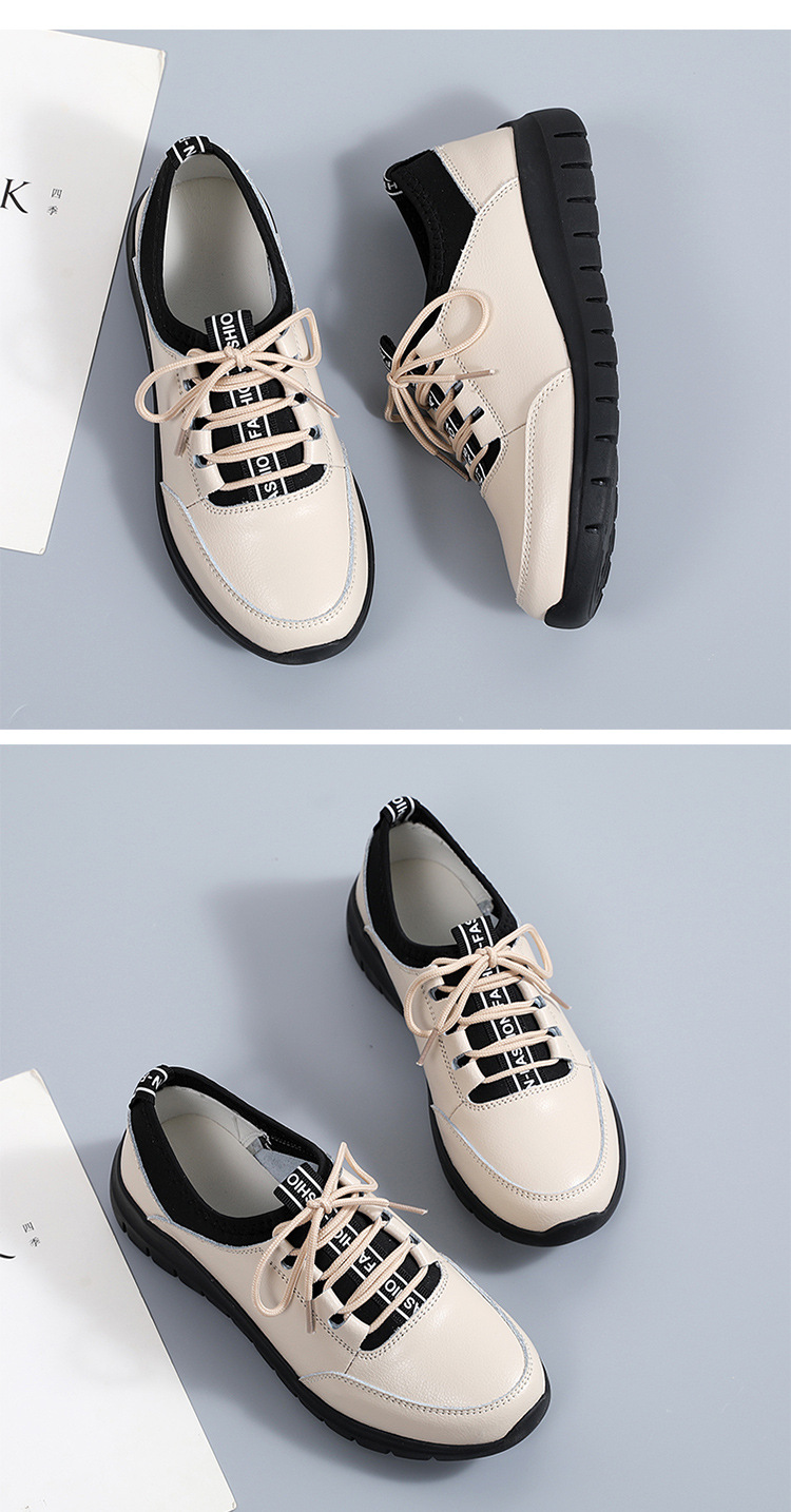 정품 가죽 여성 신발 2024 봄 새로운 작은 가죽 신발 한국 부드러운 바닥 올 매치 캐주얼 토드 신발 힘줄 바닥 엄마 신발스토어 가기